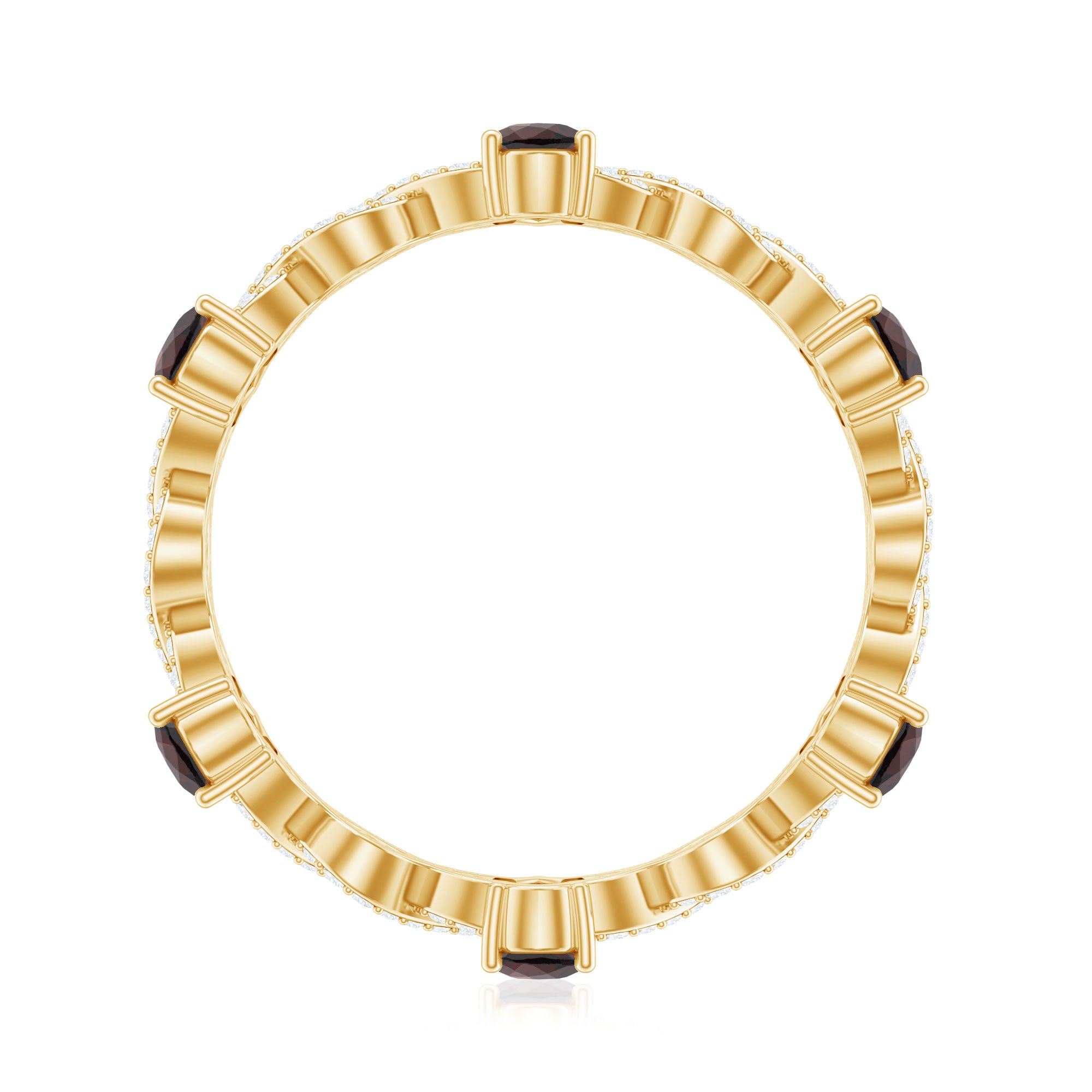 Intertwined with passion and elegance, this Garnet Eternity Ring brings your love story to life with every shimmering detail. This Full Eternity Ring features 3X5 mm Pear Shape Garnet gemstones set in Prong Setting glows with a rich red hue, creating a graceful flow of color that feels both romantic and timeless. Complementing their warm brilliance is the beautifully designed Crossover Shank, delicately studded with sparkling Diamond stones. The crossed bands symbolize two hearts meeting, merging and choosing to walk through life together, making this Garnet Diamond Ring especially meaningful for anniversaries or moments you want to treasure forever. Whether worn daily or saved for cherished occasions, this Pear Shaped Garnet Ring adds a captivating touch to every gesture. Presented in a signature jewelry box and offered in various ring sizes, this Red Garnet Ring arrives ready to gift and ready to become a keepsake of deep affection.
