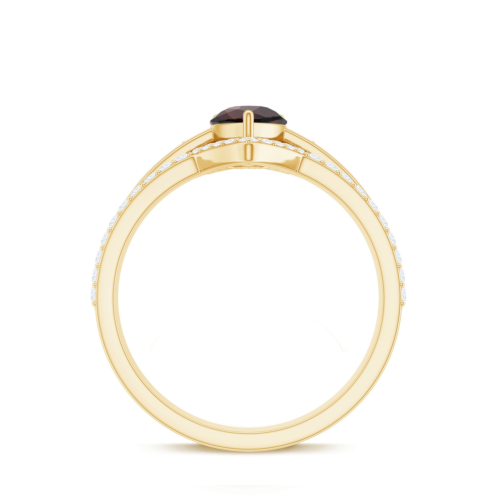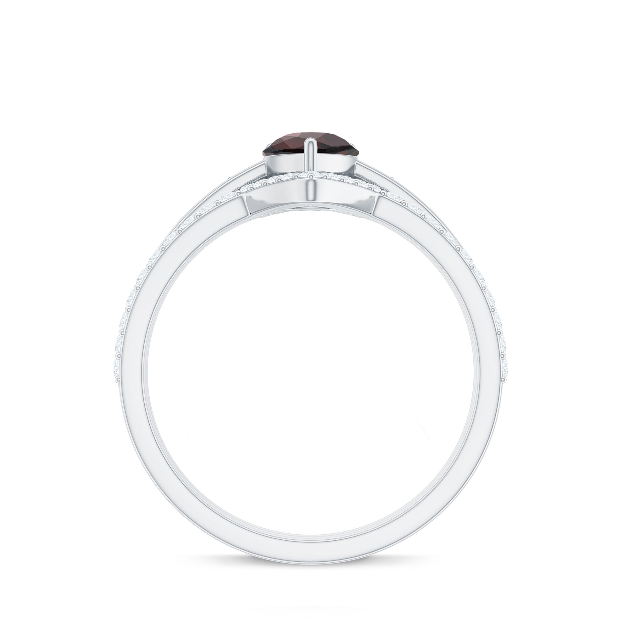 Mesmerize her with a bridal set that captures the beauty of your love from every angle. This 3 Piece Wedding Ring Set is designed to celebrate commitment in the most enchanting way. At the center is a 5X7 mm Pear Shape Garnet set in Prong Setting, symbolizing passion, loyalty and a bond that only grows stronger. The Pear Shaped Engagement Ring stands elegantly on its own, but becomes even more breathtaking when paired with its two perfectly crafted curved enhancer bands. One band sparkles with Round Diamond stones, adding a graceful brilliance, while the other features a stunning mix of Pear and Round Shape Diamond stones, creating a layered look full of charm. Worn together, this Garnet Wedding Ring Set forms a halo of love, balanced and utterly captivating. Presented in a signature jewelry box, this Wedding Bridal Ring Set arrives ready to make any moment unforgettable. Beautifully detailed, this Pear Shaped Engagement Ring Set is a promise wrapped in sparkle and forever.
