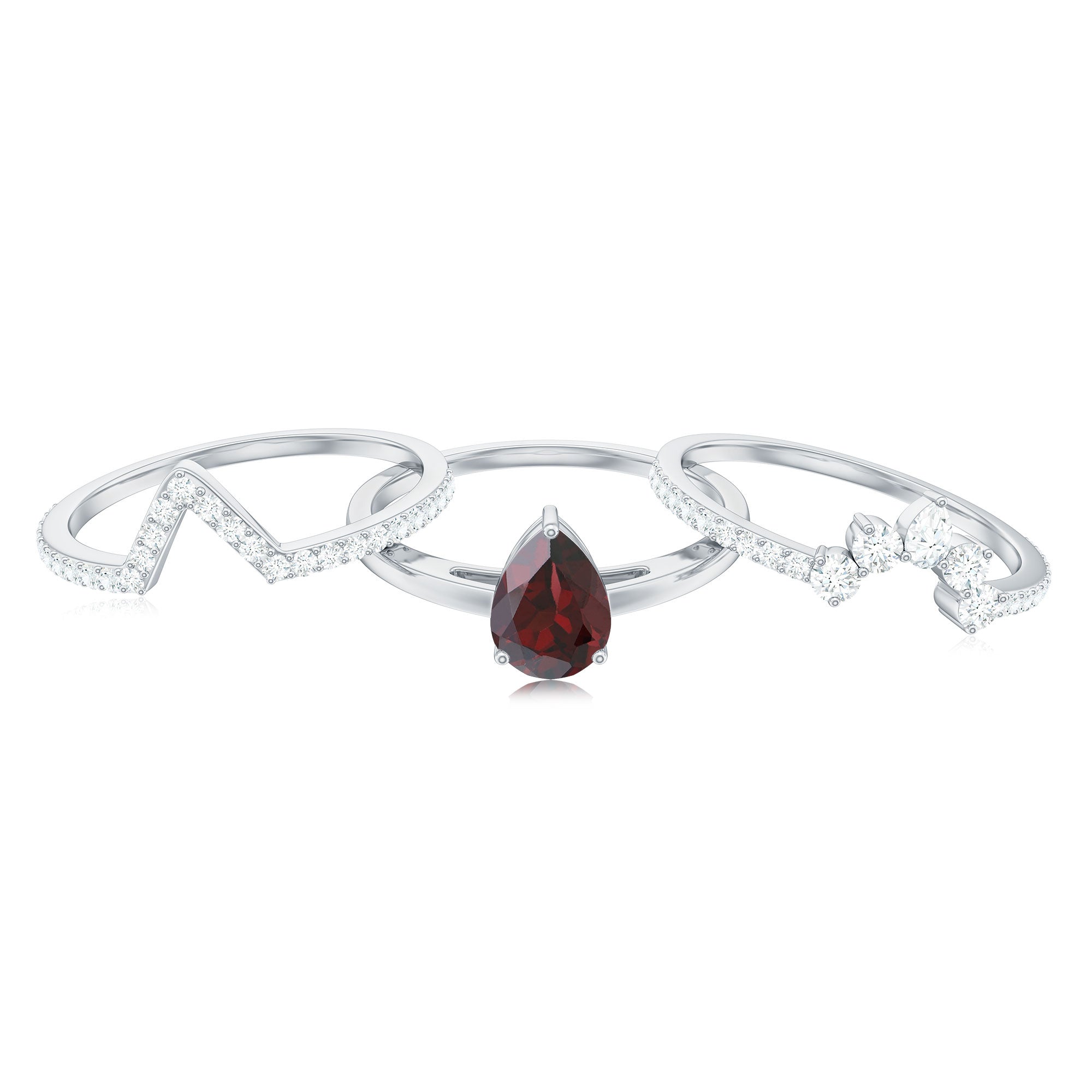 Natural Pear Shaped Garnet Diamond 3 Piece Bridal Ring Set