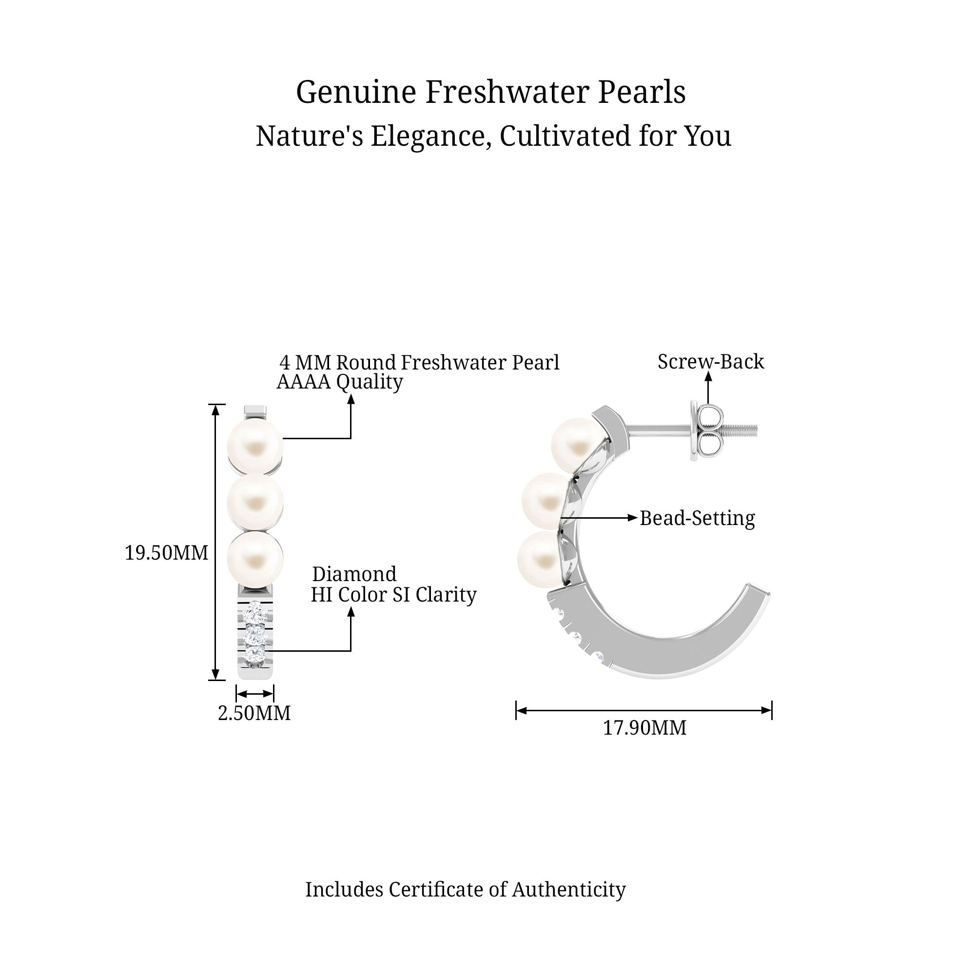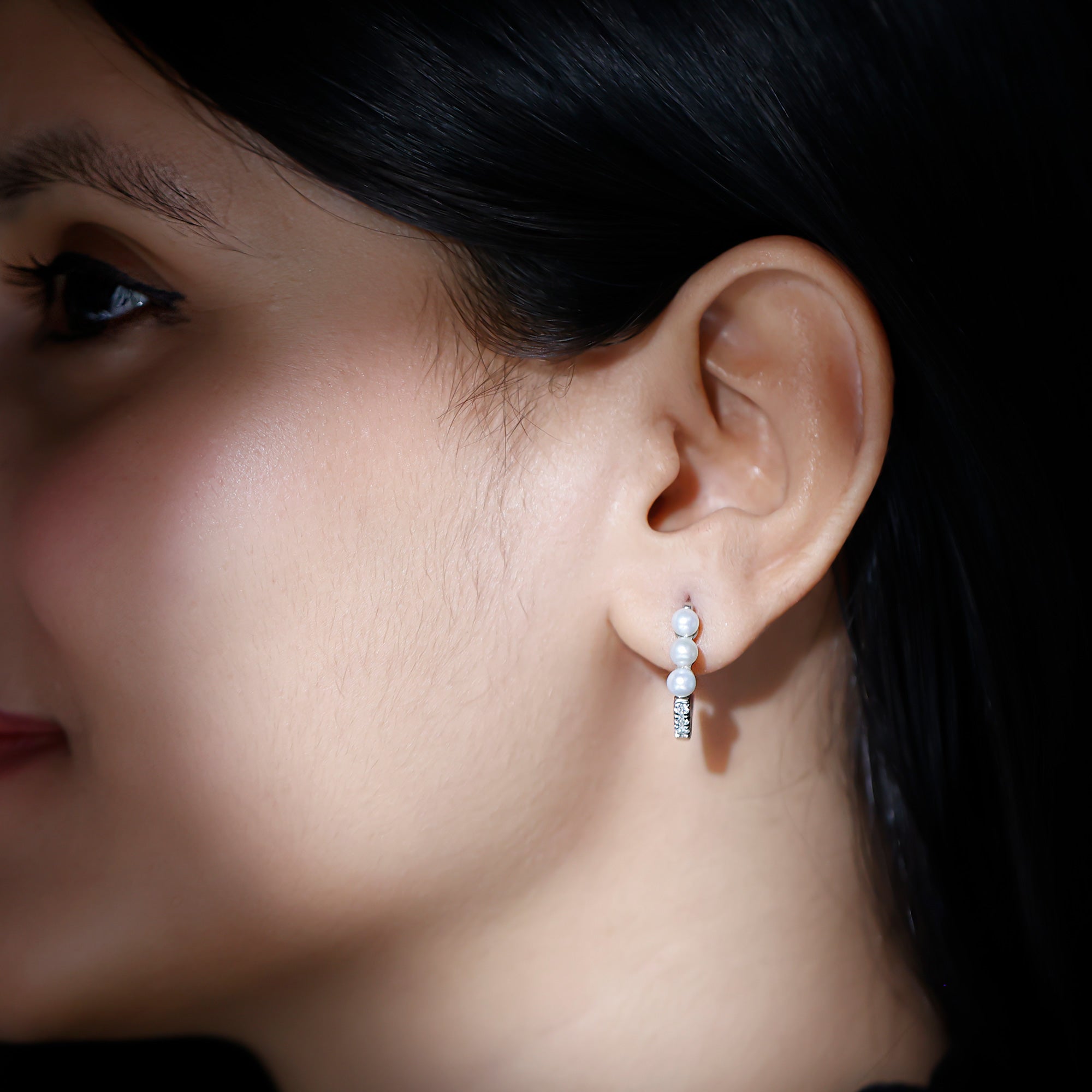 Natural Pearl Designer Hoop Earrings with Moissanite