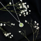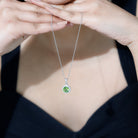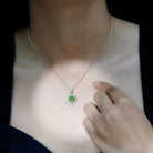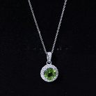 Natural Peridot and Moissanite Halo Necklace with Silver Chain