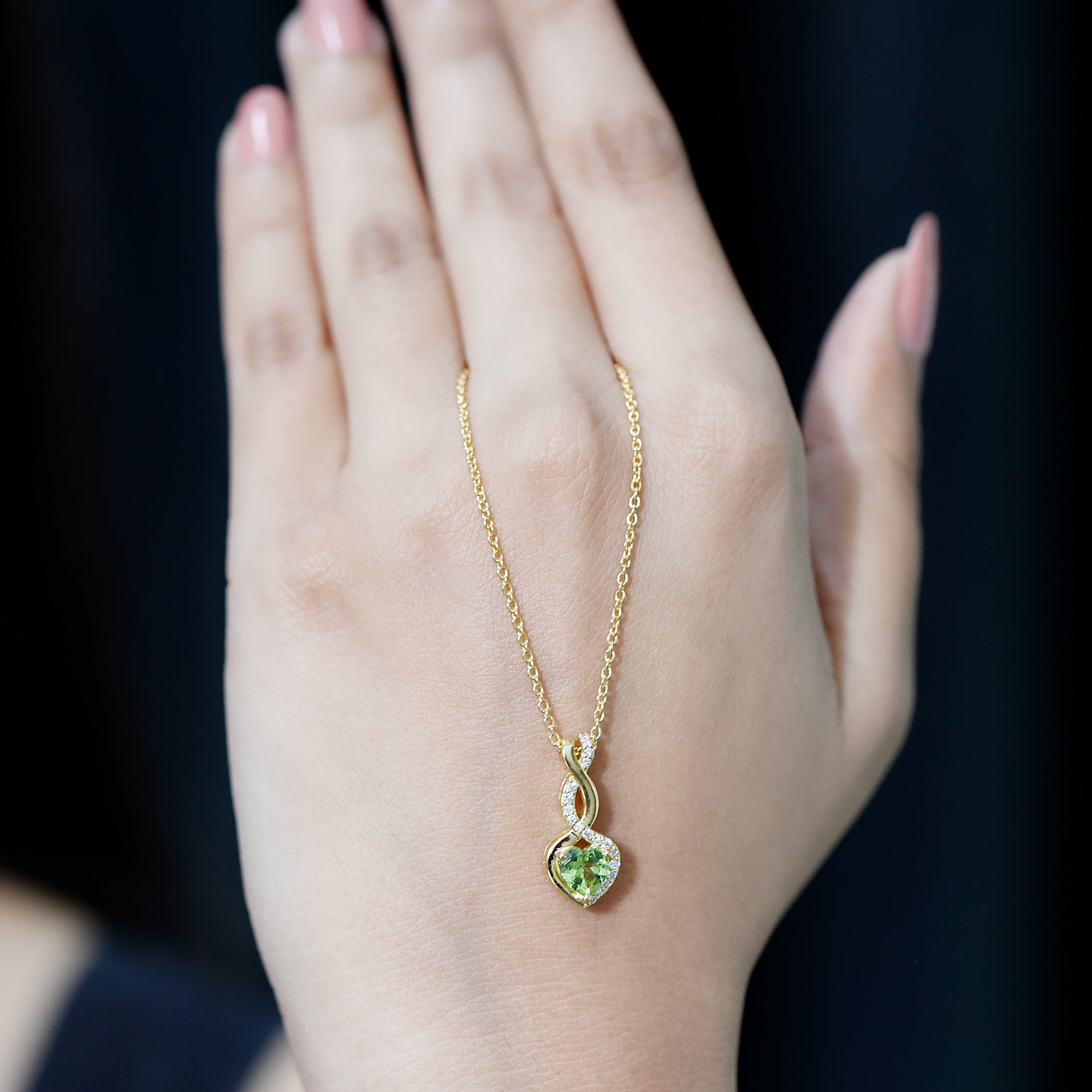 Natural Peridot Heart and Infinity Necklace With Diamond