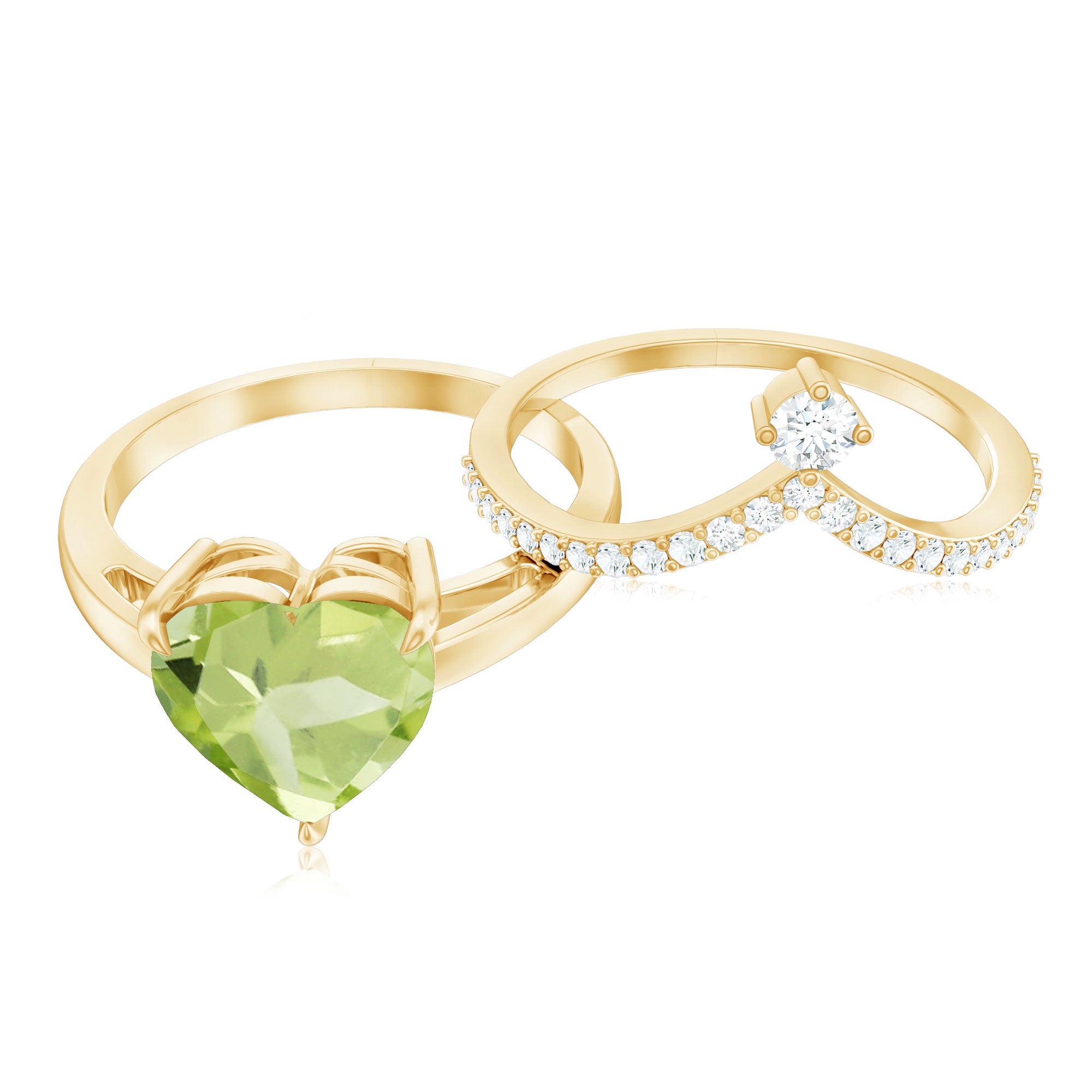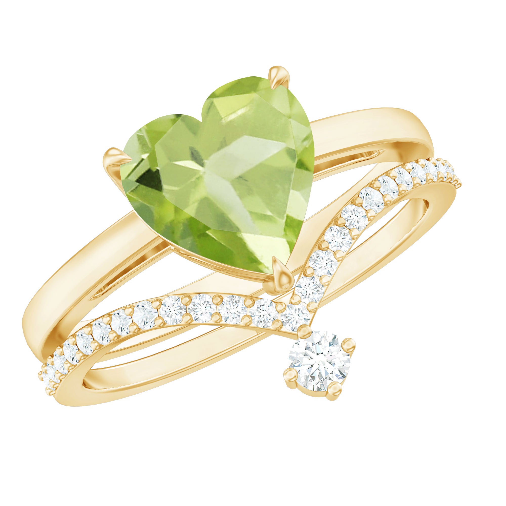 Embrace the natural beauty of love with this exquisite Heart Shape Peridot Ring Set, adorned with dazzling Diamond, a symbol of commitment.