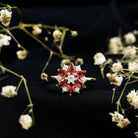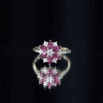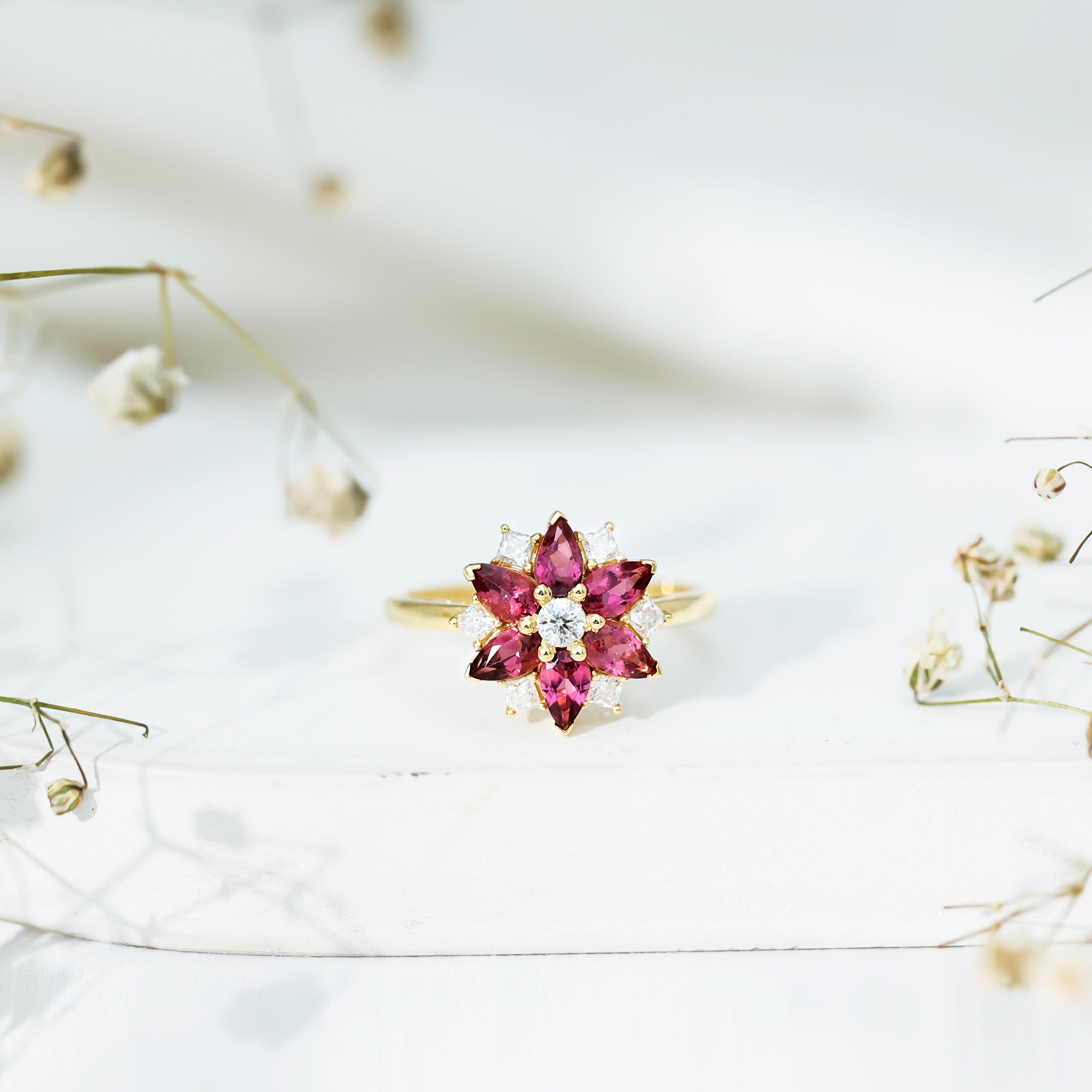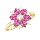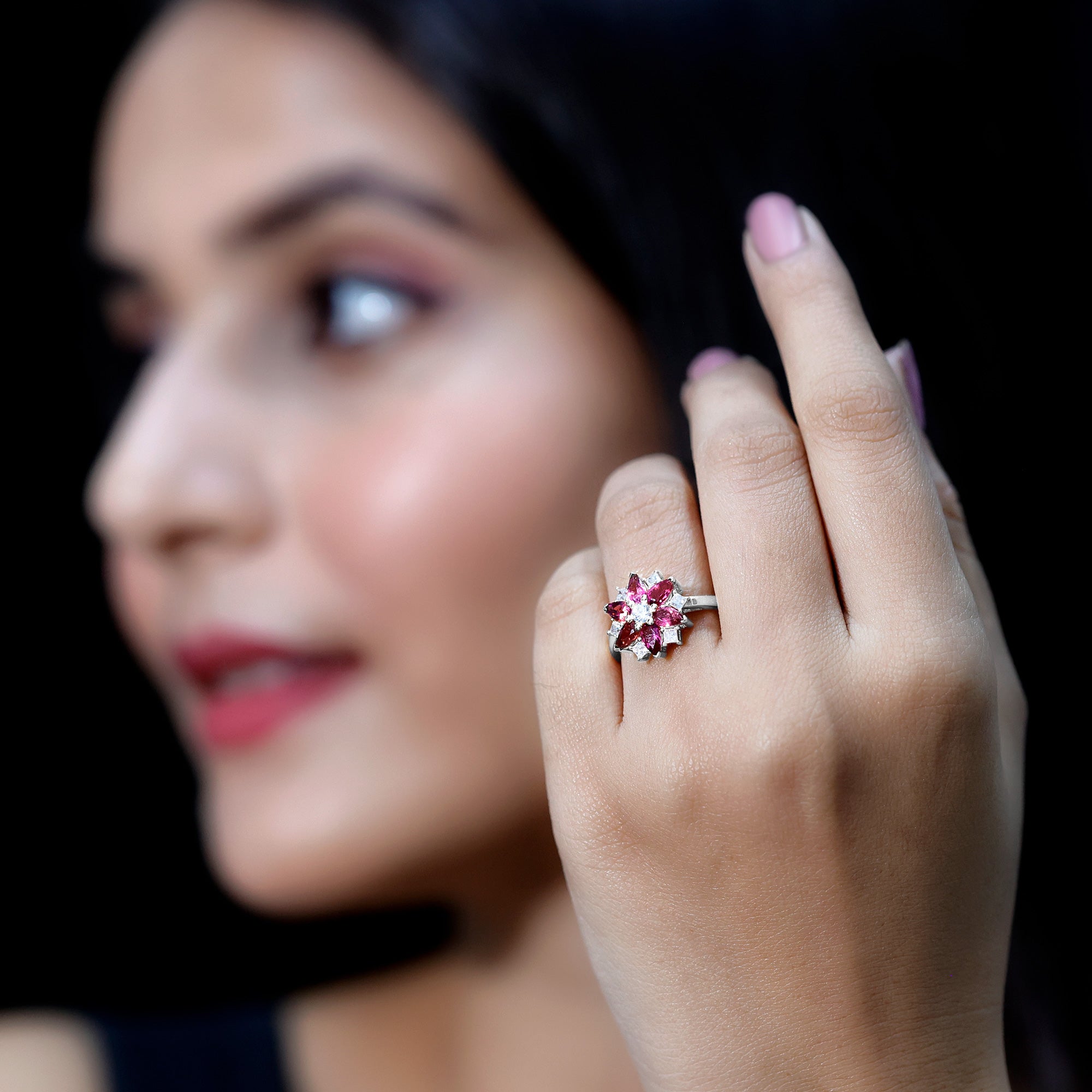 Natural Pink Tourmaline Flower Ring with Moissanite