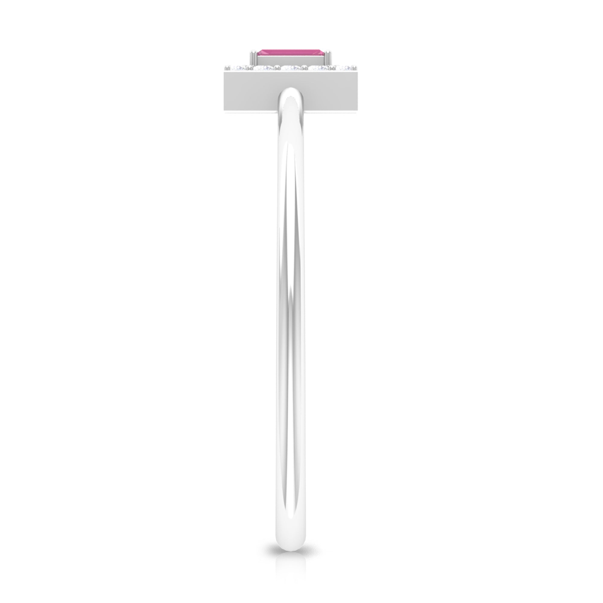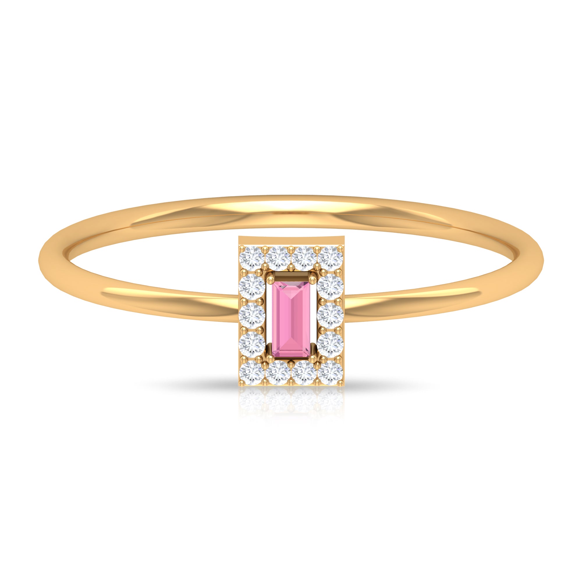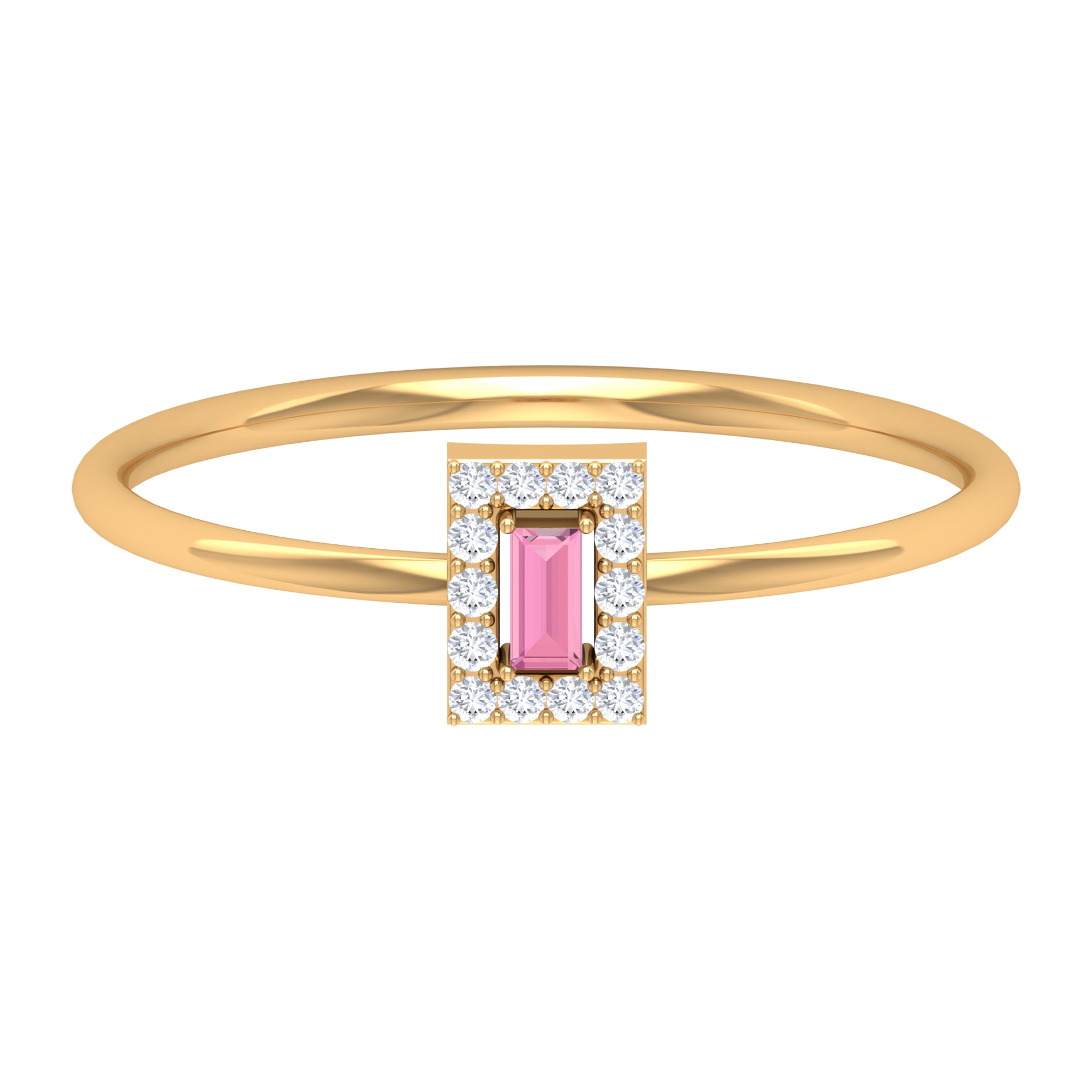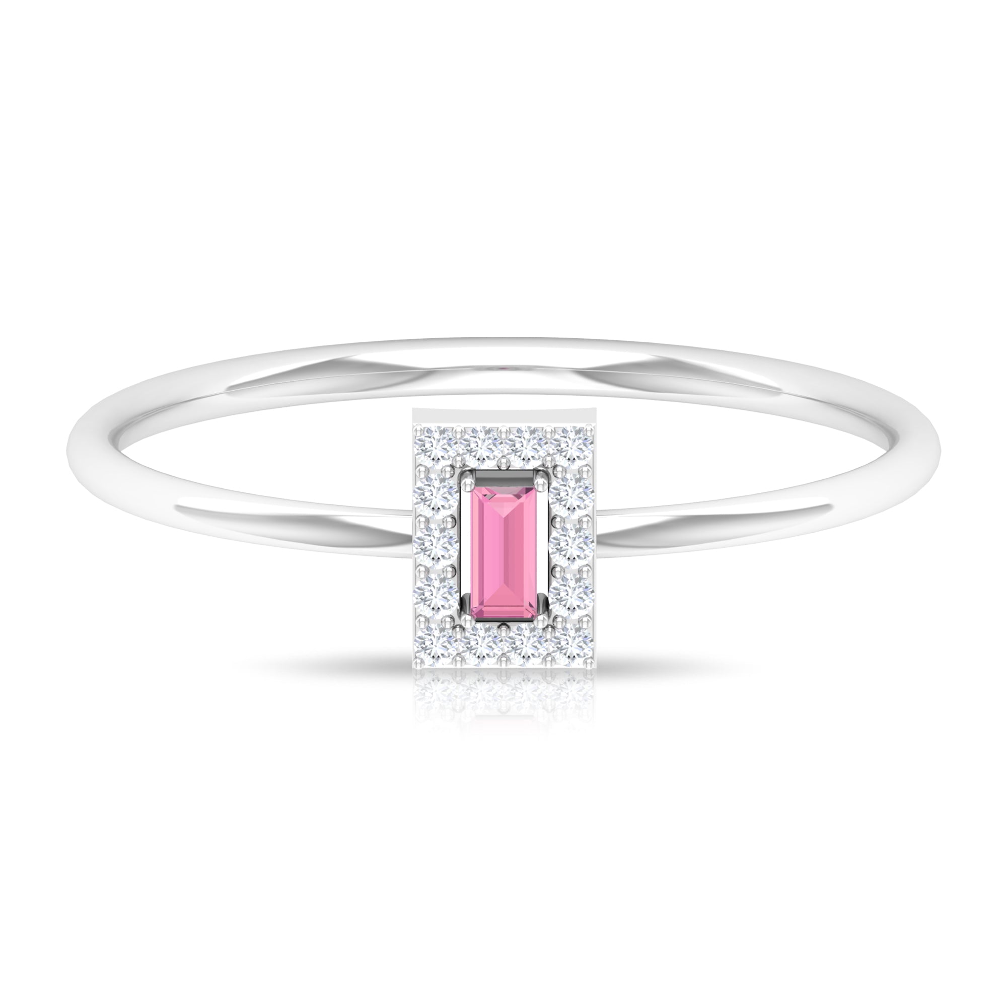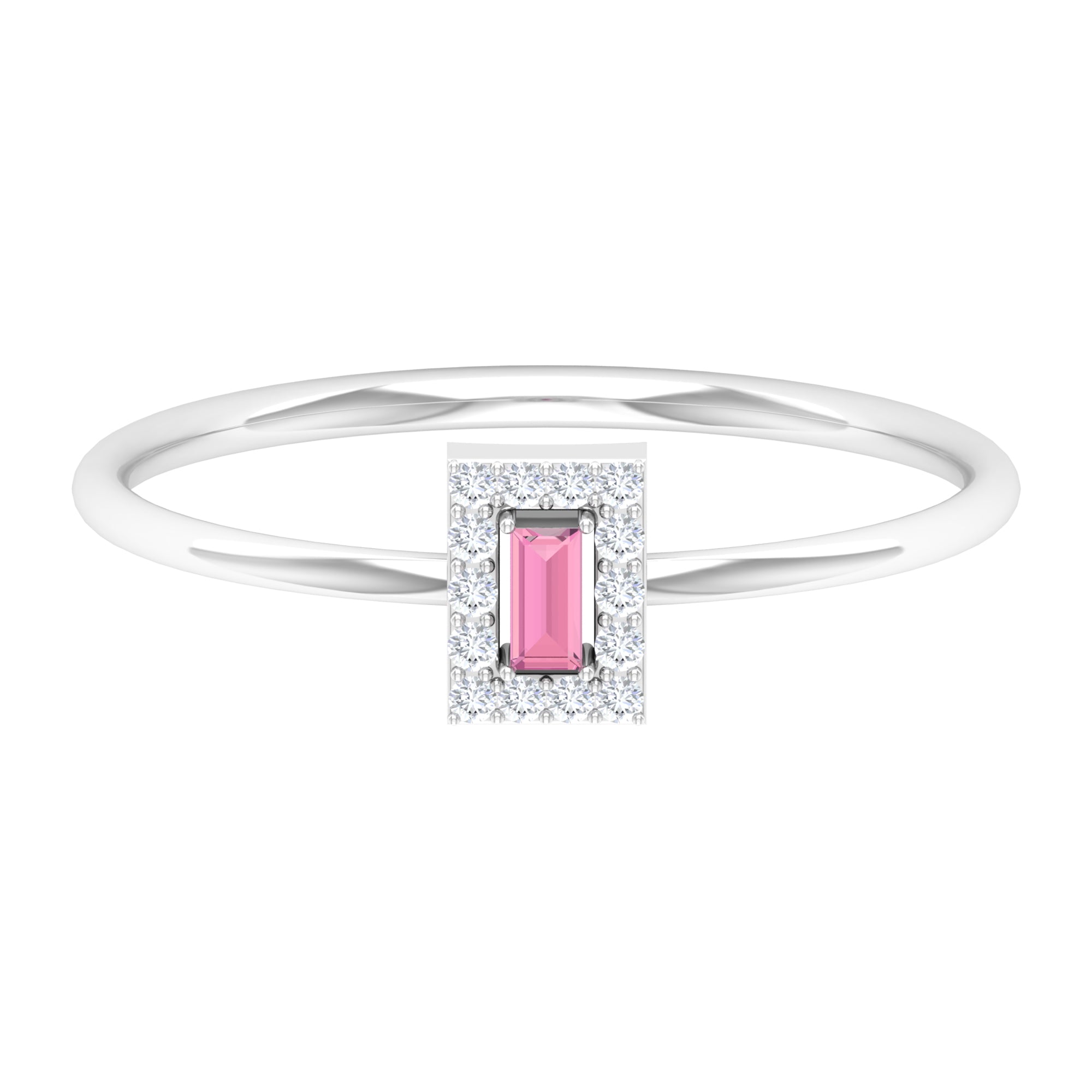 An Amazing and Dainty Promise Ring is embellished with Baguette Pink Tourmaline and Diamond Accent.