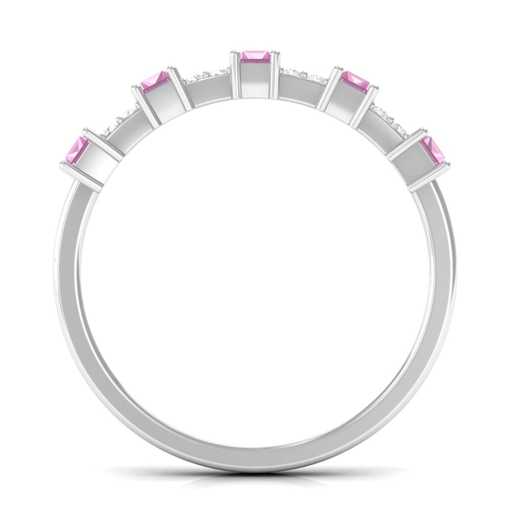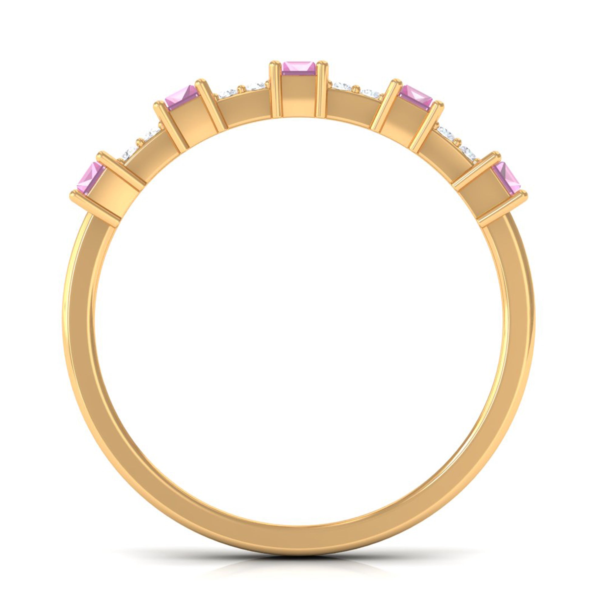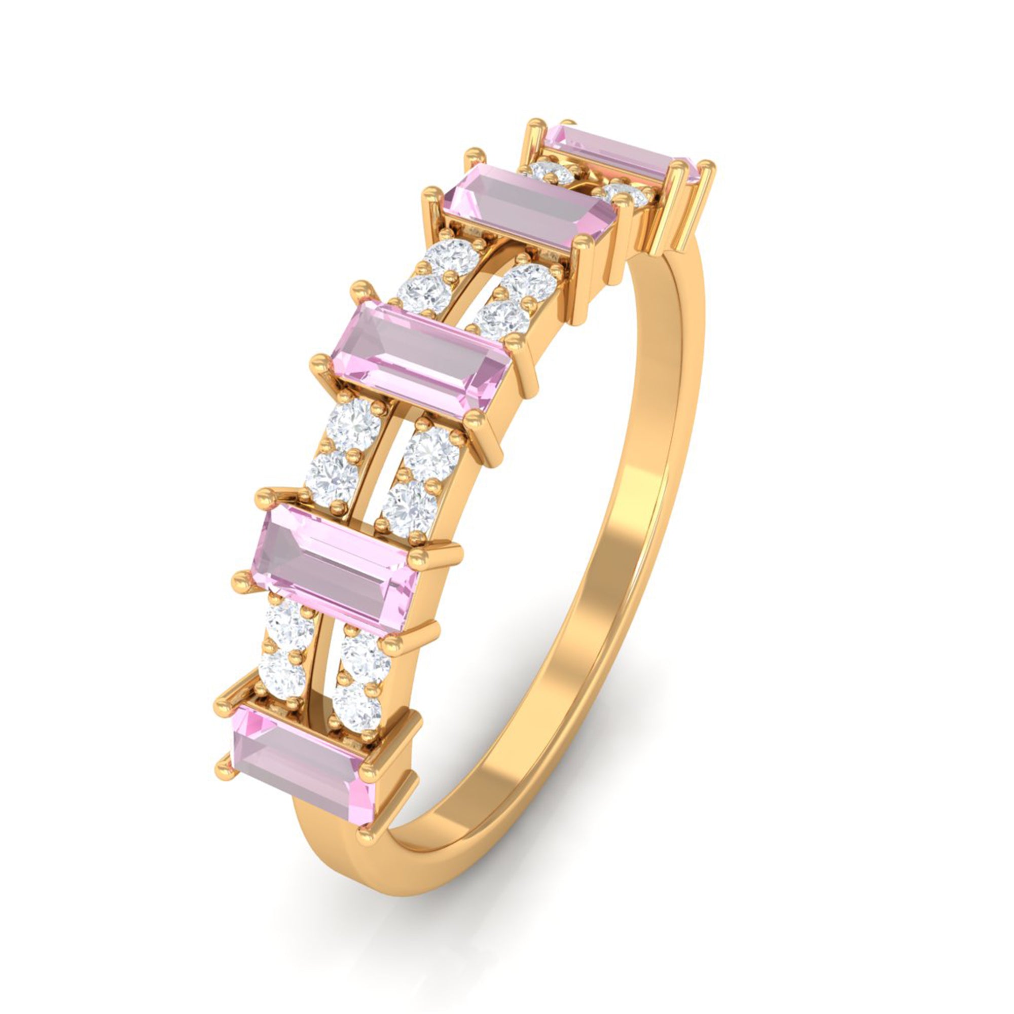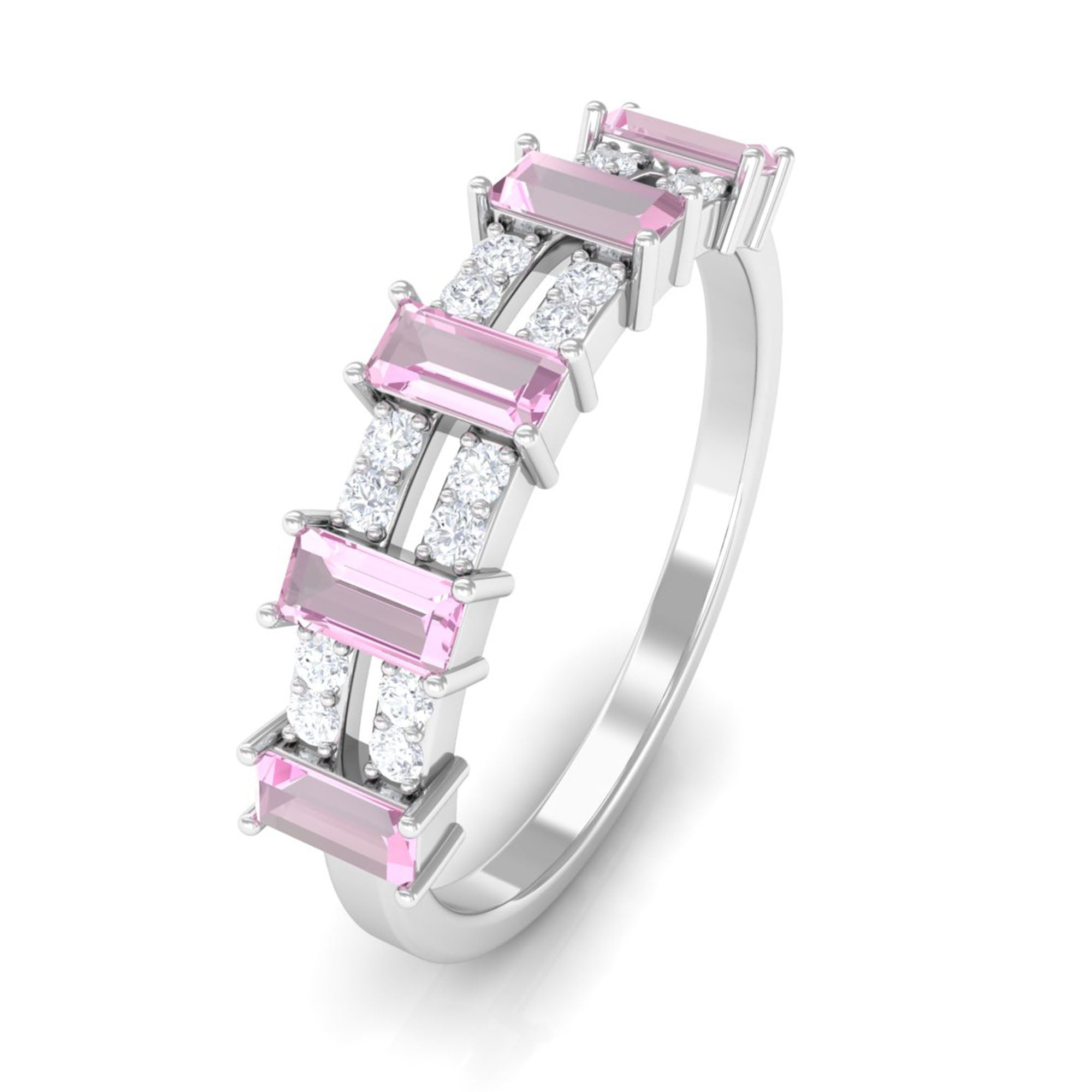 Natural Pink Tourmaline Wide Half Eternity Ring with Diamond