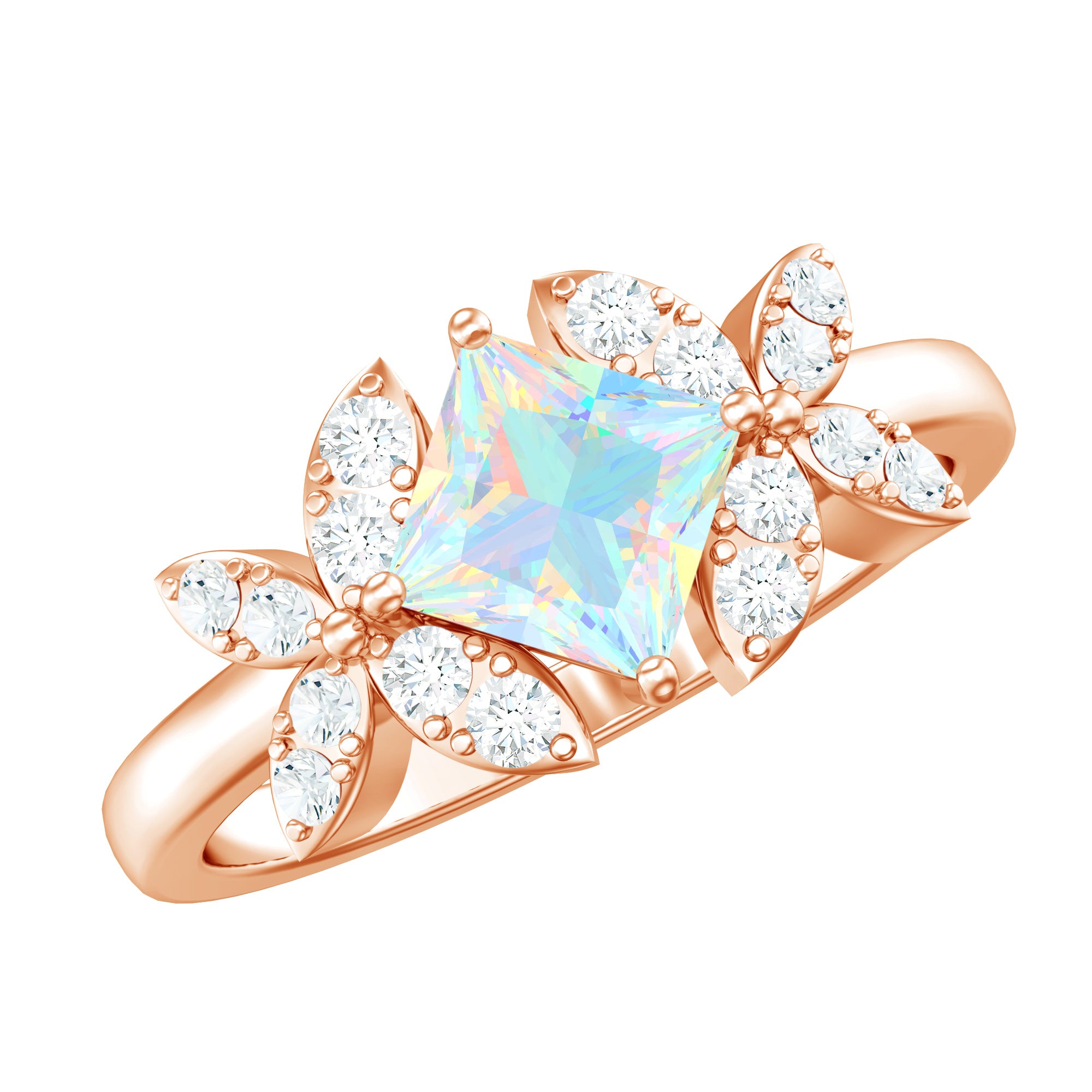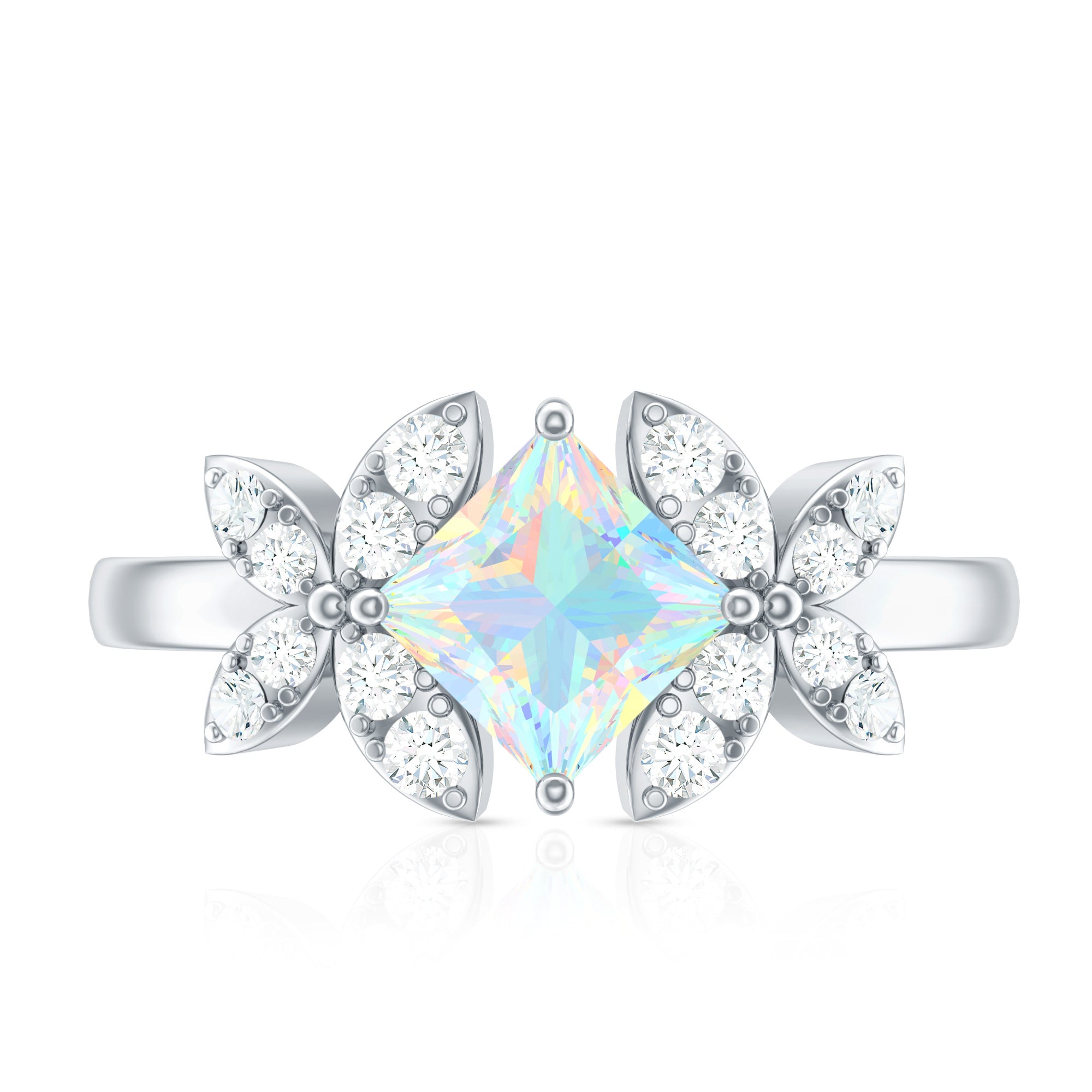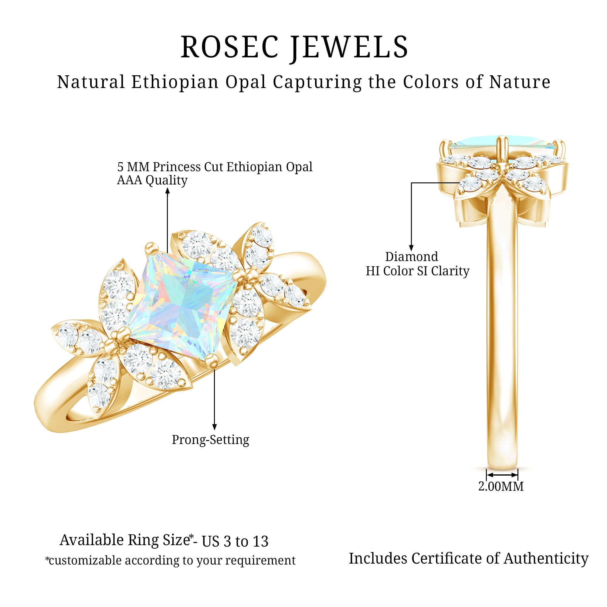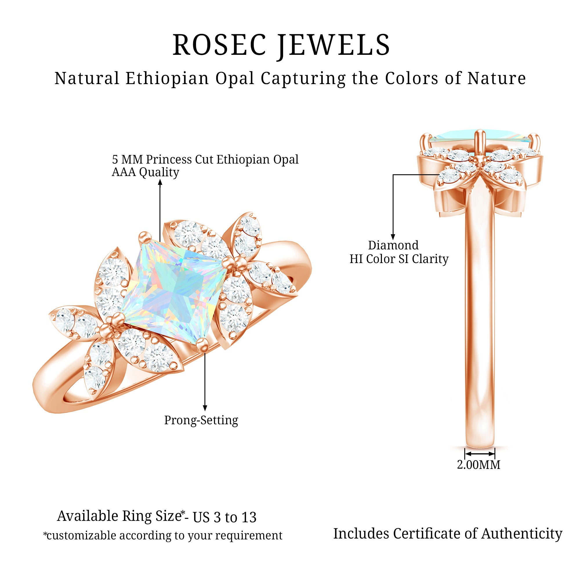 Natural Princess Cut Ethiopian Opal Flower Engagement Ring with Diamond