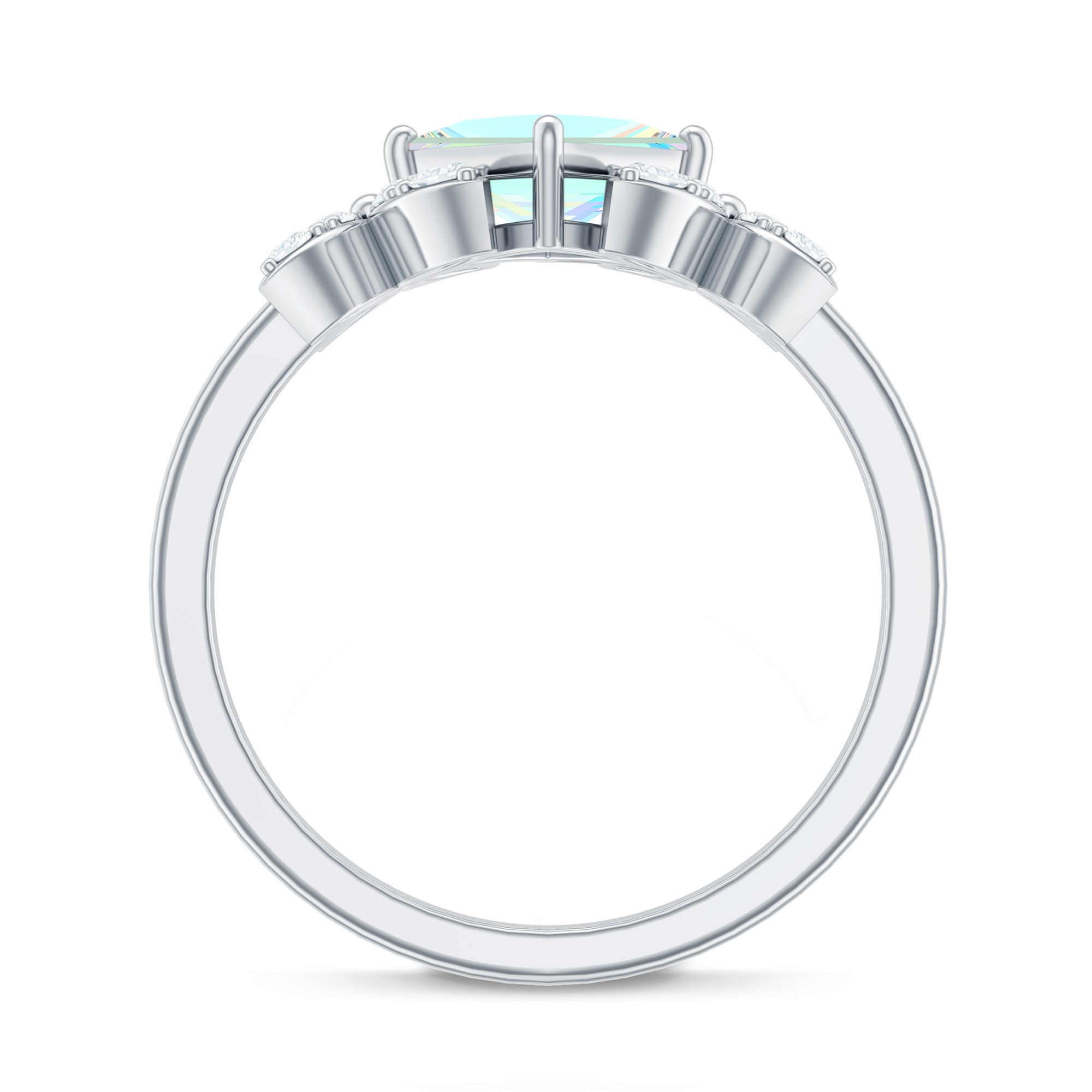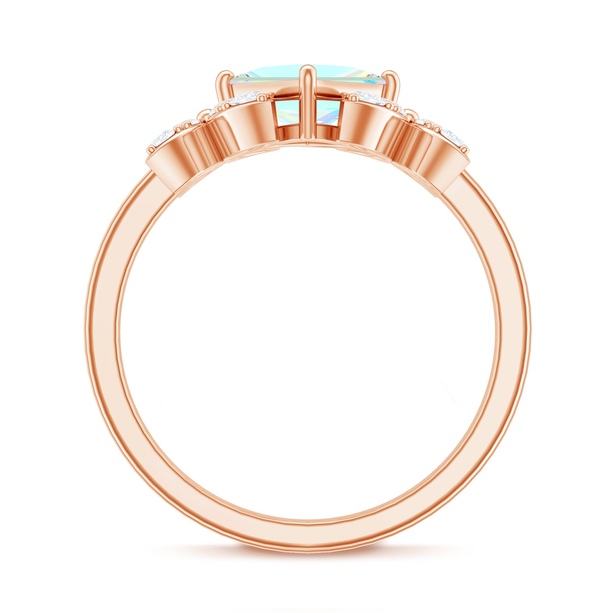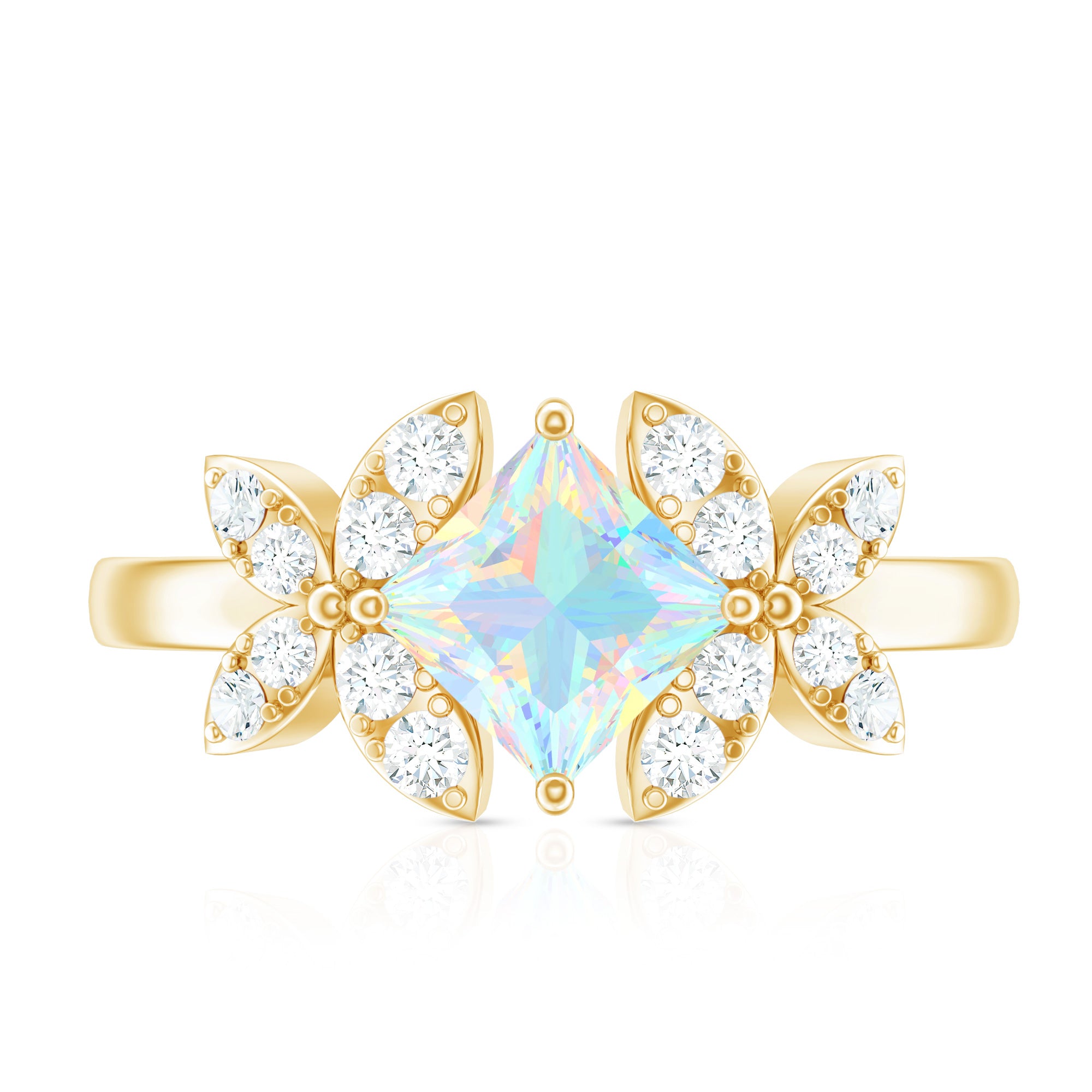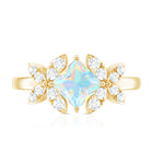 Natural Princess Cut Ethiopian Opal Flower Engagement Ring with Diamond