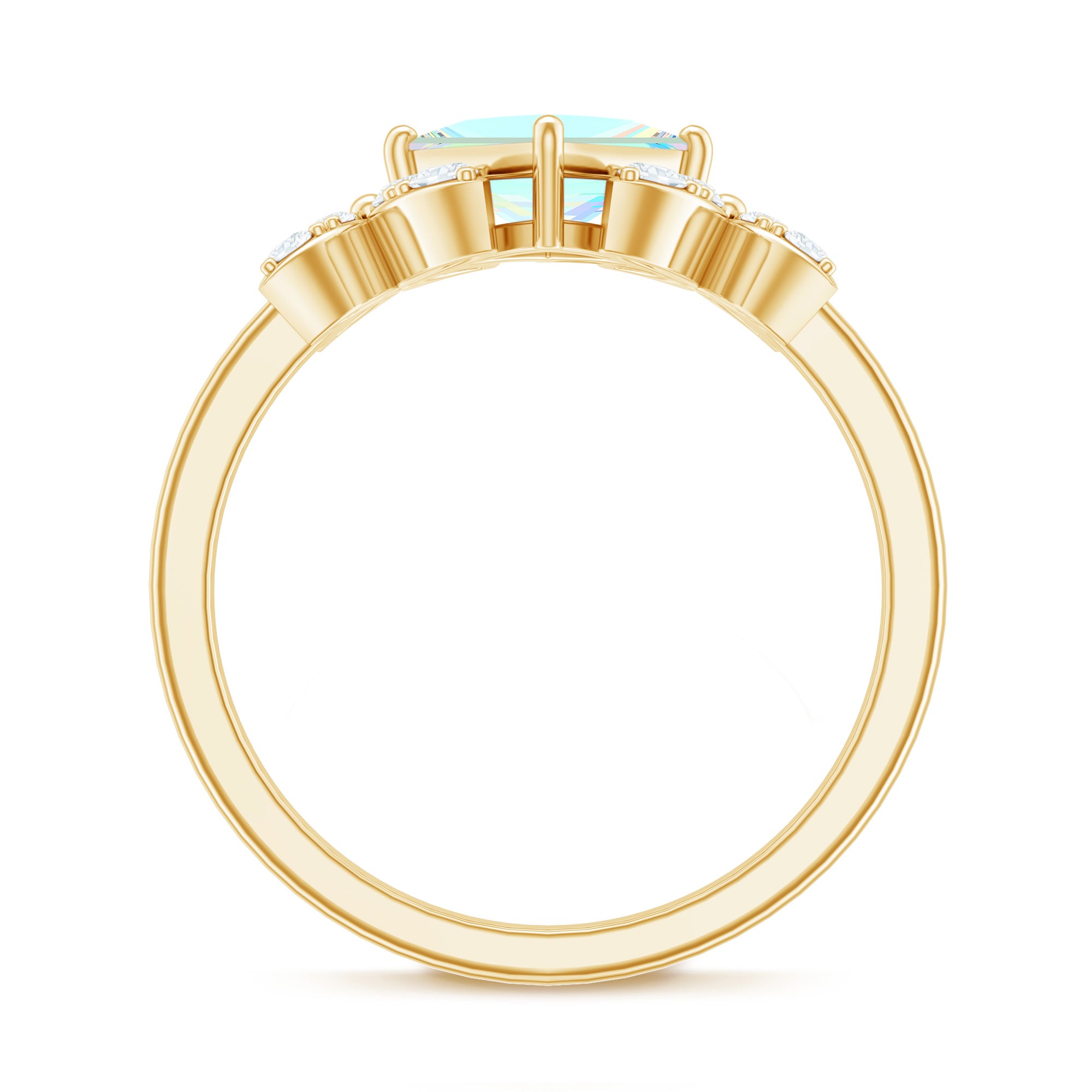 Step into a world of whimsical romance with this Flower Engagement Ring, a design that blooms with beauty and meaning. At the center of this enchanting Nature Inspired Engagement Ring is a 5 mm Princess Cut Ethiopian Opal, set diagonally in Prong Setting. Its rainbow hues shift with every glance, reflecting the ever-changing magic of love. Framing the Opal are delicate Flower motifs on each side, each petal accented with shimmering Diamond stones that add a soft sparkle. This nature inspired design is perfect for the bride who is a free spirit and a timeless romantic. The floral design brings a touch of fairytale charm, while the ethereal glow of opal makes every moment feel magical. Whether you are planning a heartfelt proposal or gifting a promise that lasts forever, this Opal Diamond Engagement Ring is a one-of-a-kind tribute to your love story. Available in a variety of ring sizes and nestled in a beautifully crafted jewelry box, this Princess Cut Engagement Ring is ready to create an unforgettable moment.