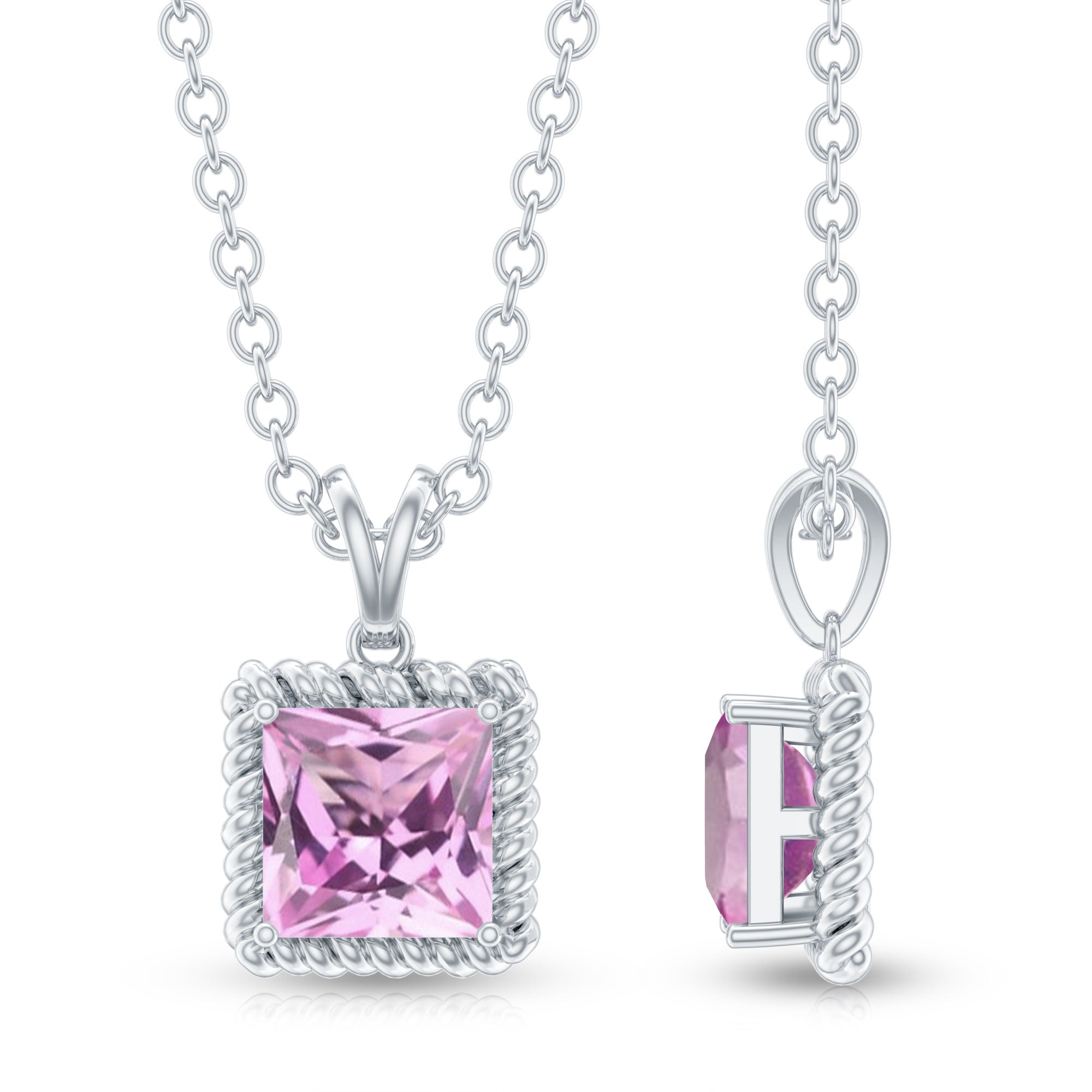 Natural Princess Cut Pink Sapphire Solitaire Pendant with Chain