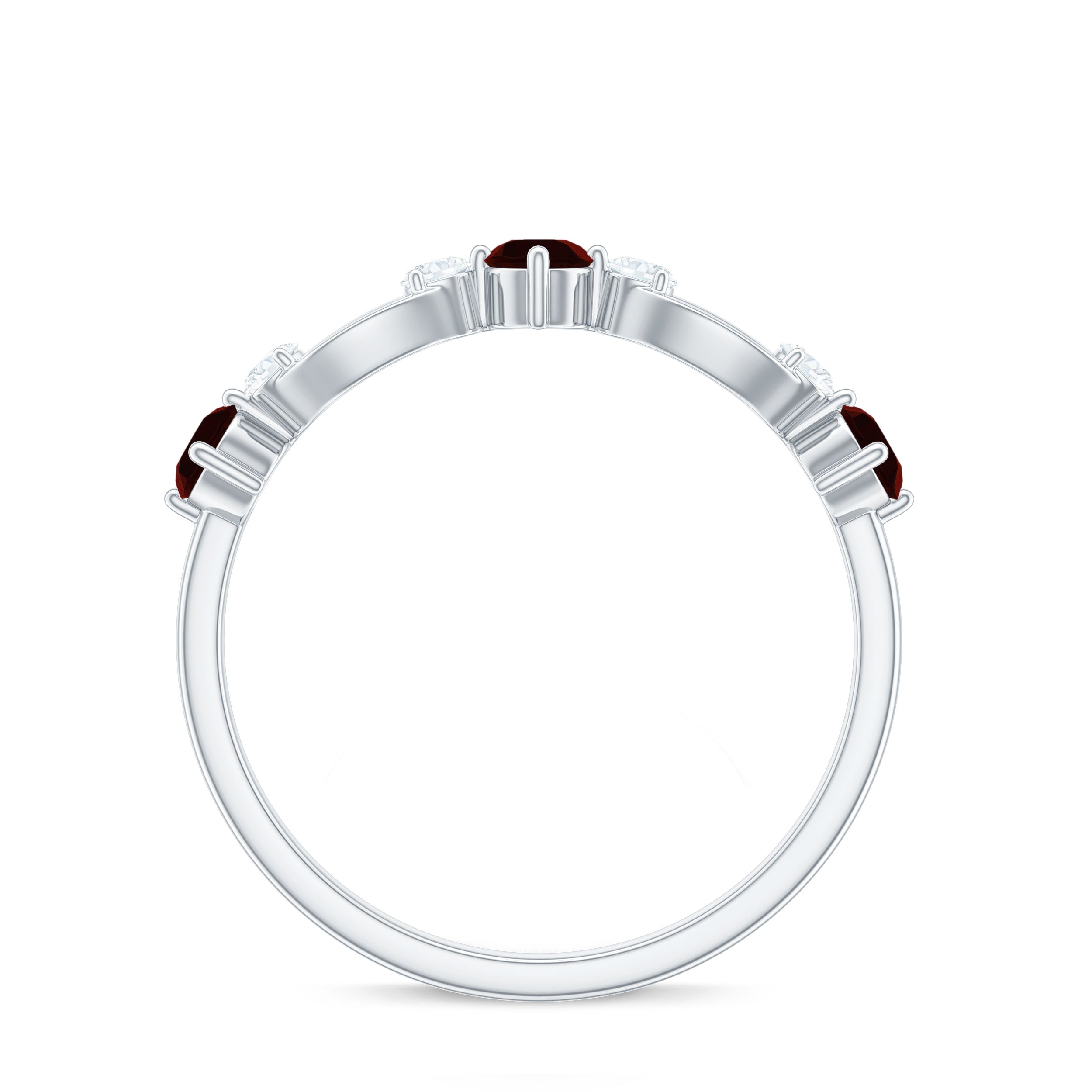 Natural Red Garnet Diamond Half Eternity Ring for Anniversary