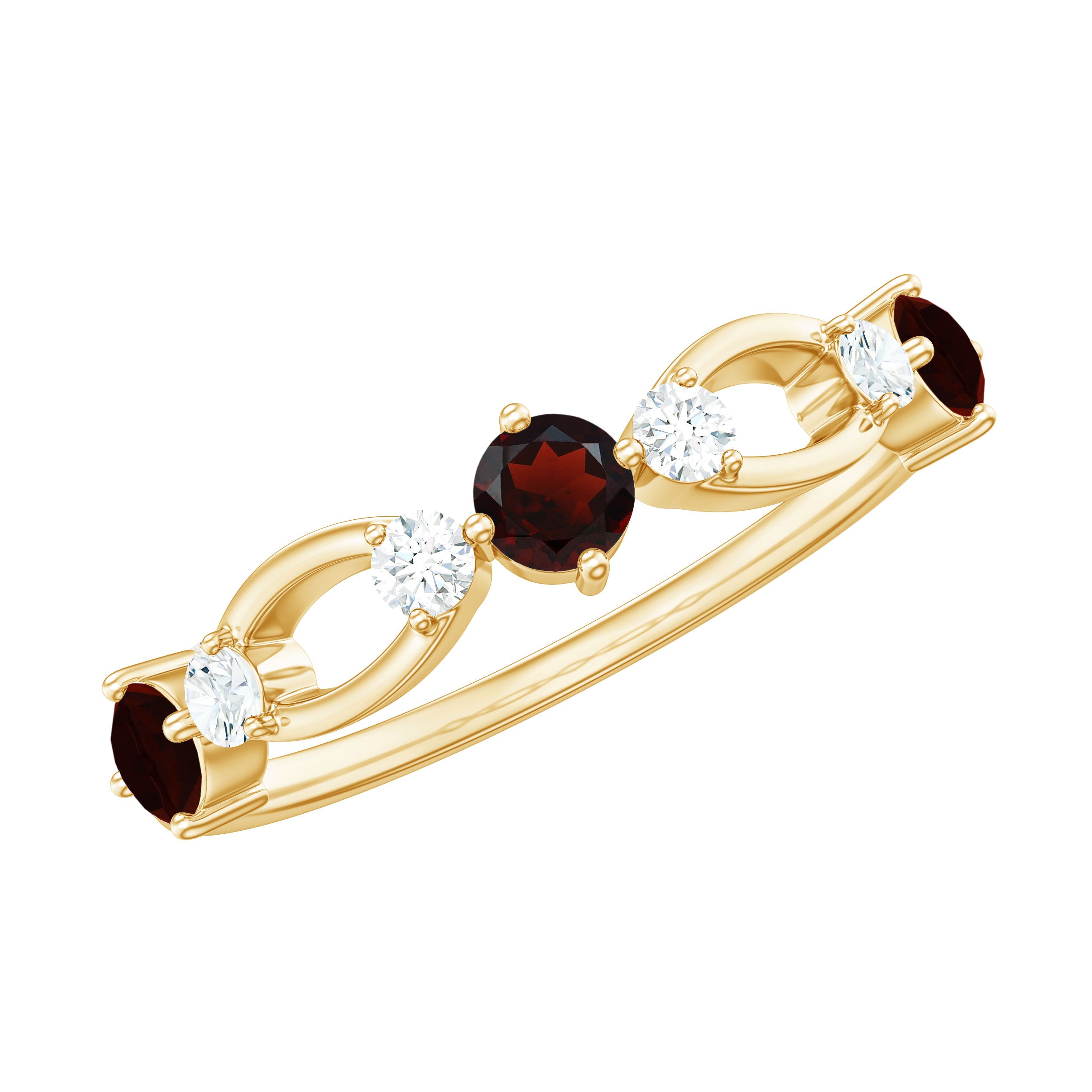 Capturing the warmth of everlasting love, this Half Eternity Ring is a heartfelt way to celebrate an anniversary or any moment that deserves something truly meaningful. The deep red 3 mm Round Shape Garnet stones set in Prong Setting, long cherished as symbols of passion, devotion and lasting affection, are paired beautifully with sparkling Diamond stones that add a soft, elegant glow to the band. Together, they create a look that feels luxurious yet effortlessly romantic. Each stone is set with care, forming a graceful half-eternity design that offers both comfort and timeless beauty. The rich AAA Quality Garnet tones stand out just enough to make the Wedding Anniversary Ring unique, while the HI-SI Quality Diamond stones bring a classic shimmer that never goes out of style. Whether worn alone or stacked with other pieces, this Garnet Diamond Ring adds a touch of warmth and meaning to every gesture. Presented in a signature jewelry box and available in various sizes, this Red Garnet Ring arrives ready to become part of a moment you will cherish forever. Thoughtful, elegant and filled with emotion, this Garnet Ring for Women is a reminder of every memory shared and every beautiful chapter still to come.
