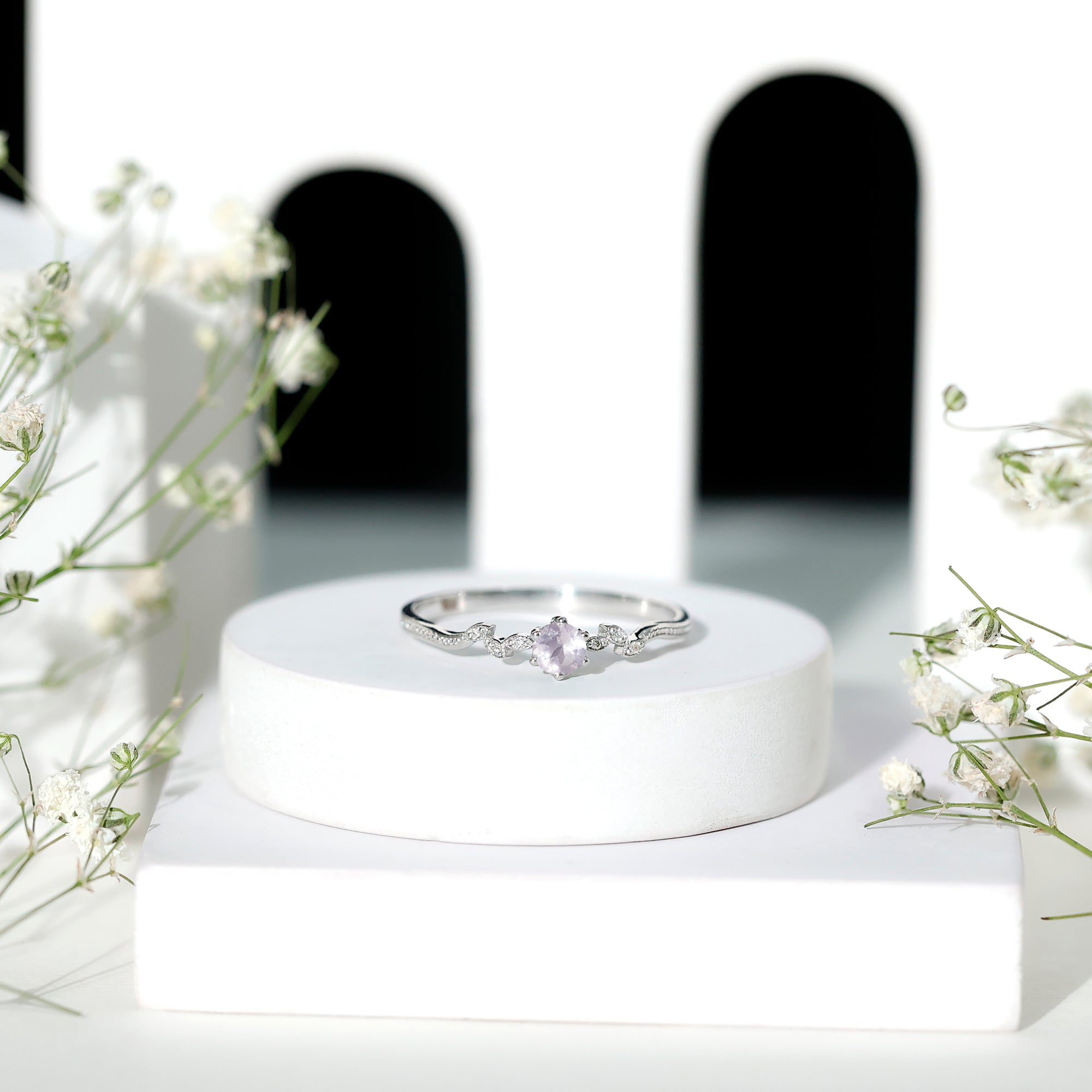 Natural Rose Quartz and Diamond Promise Ring with Certificate