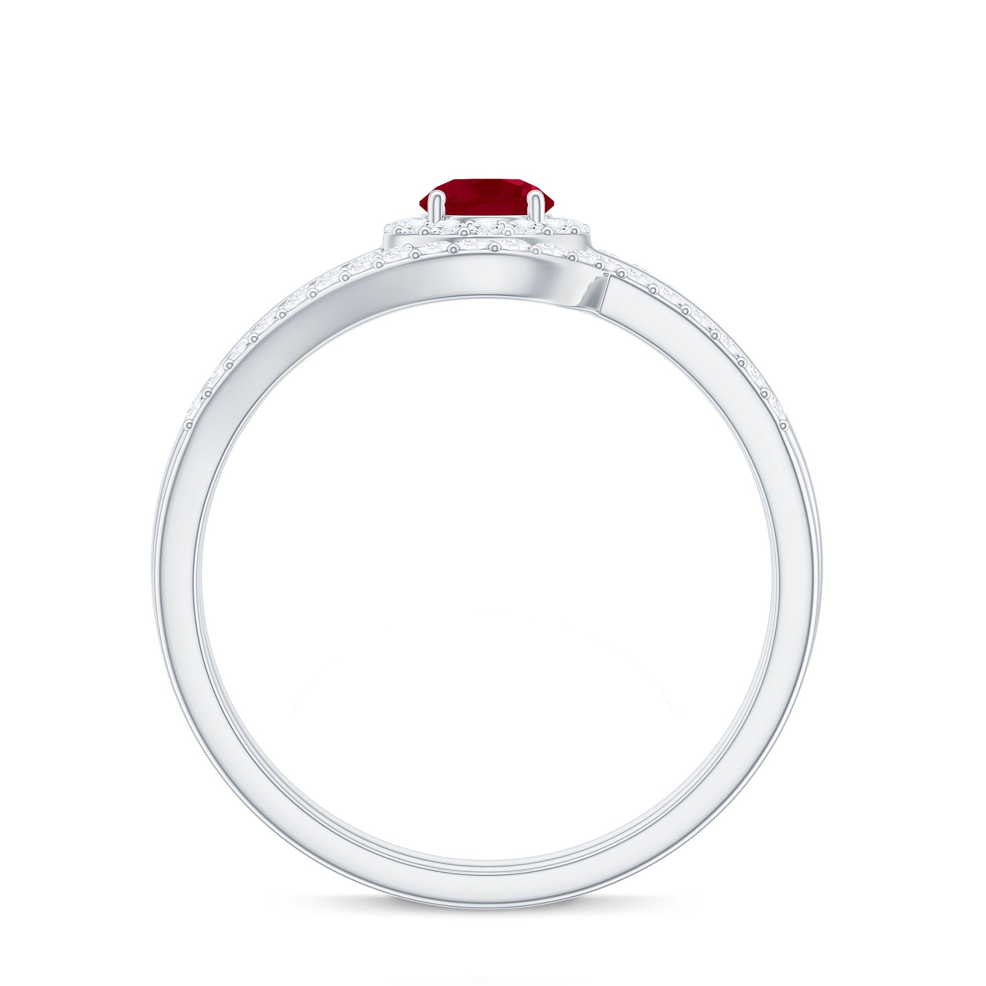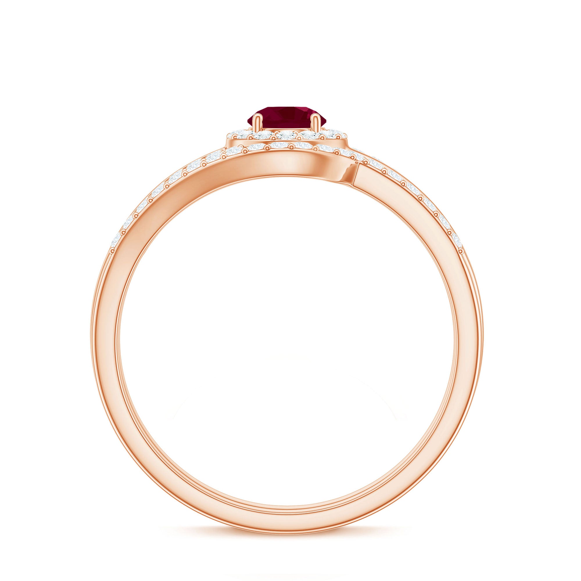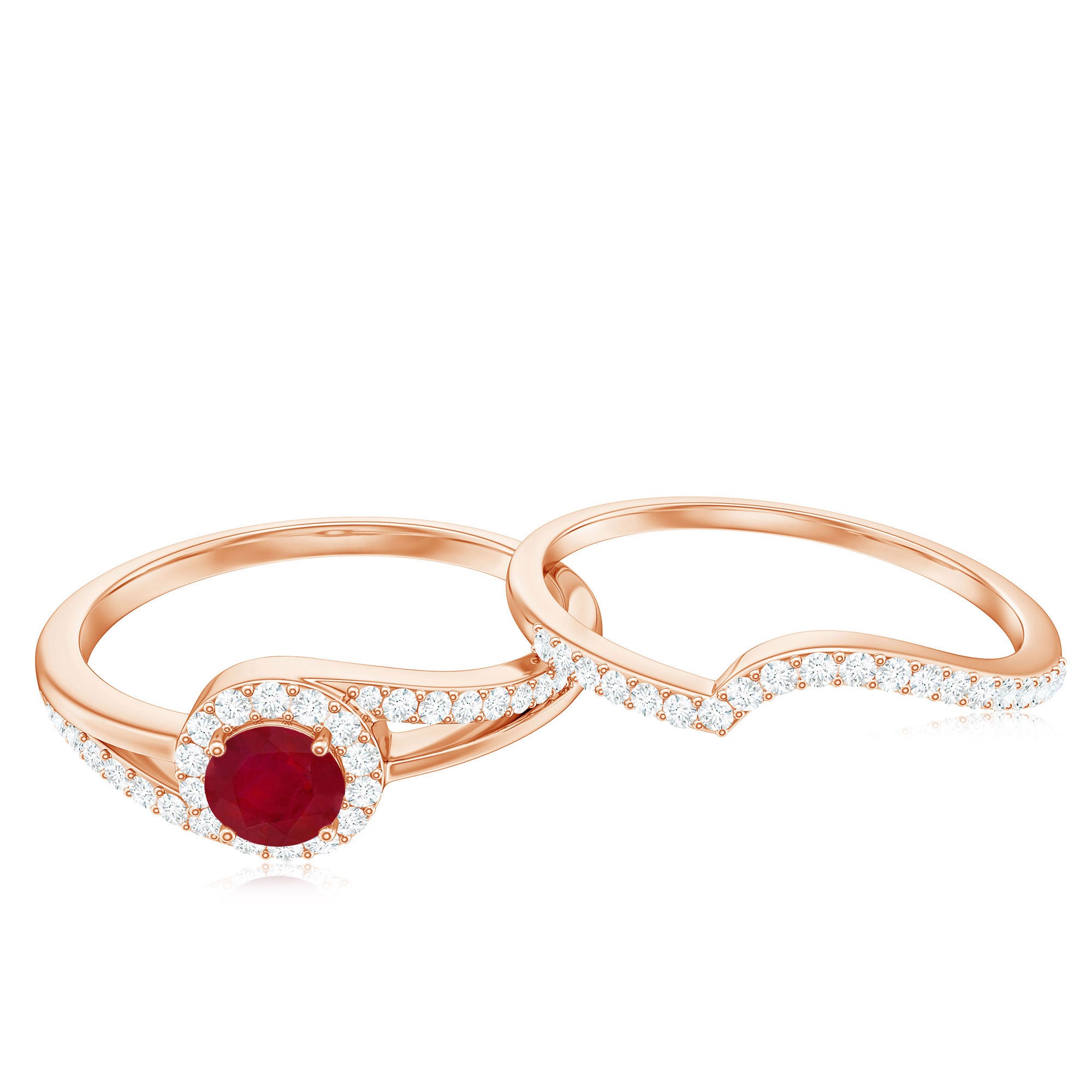 Natural Ruby and Diamond Minimal Bridal Ring Set