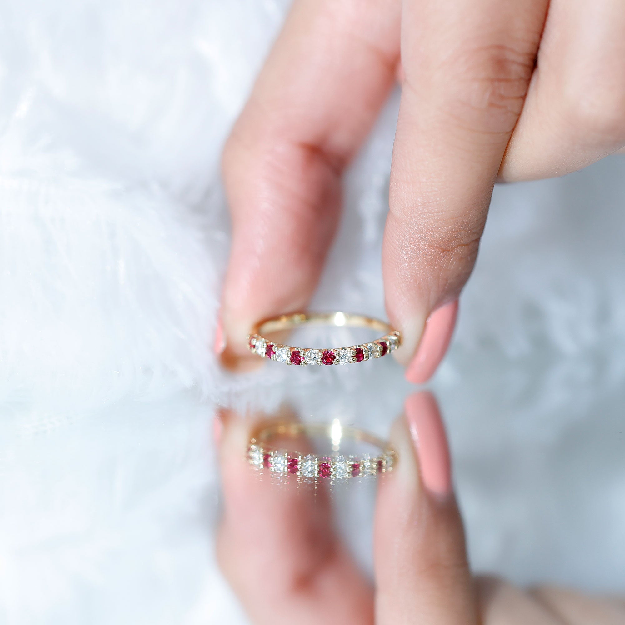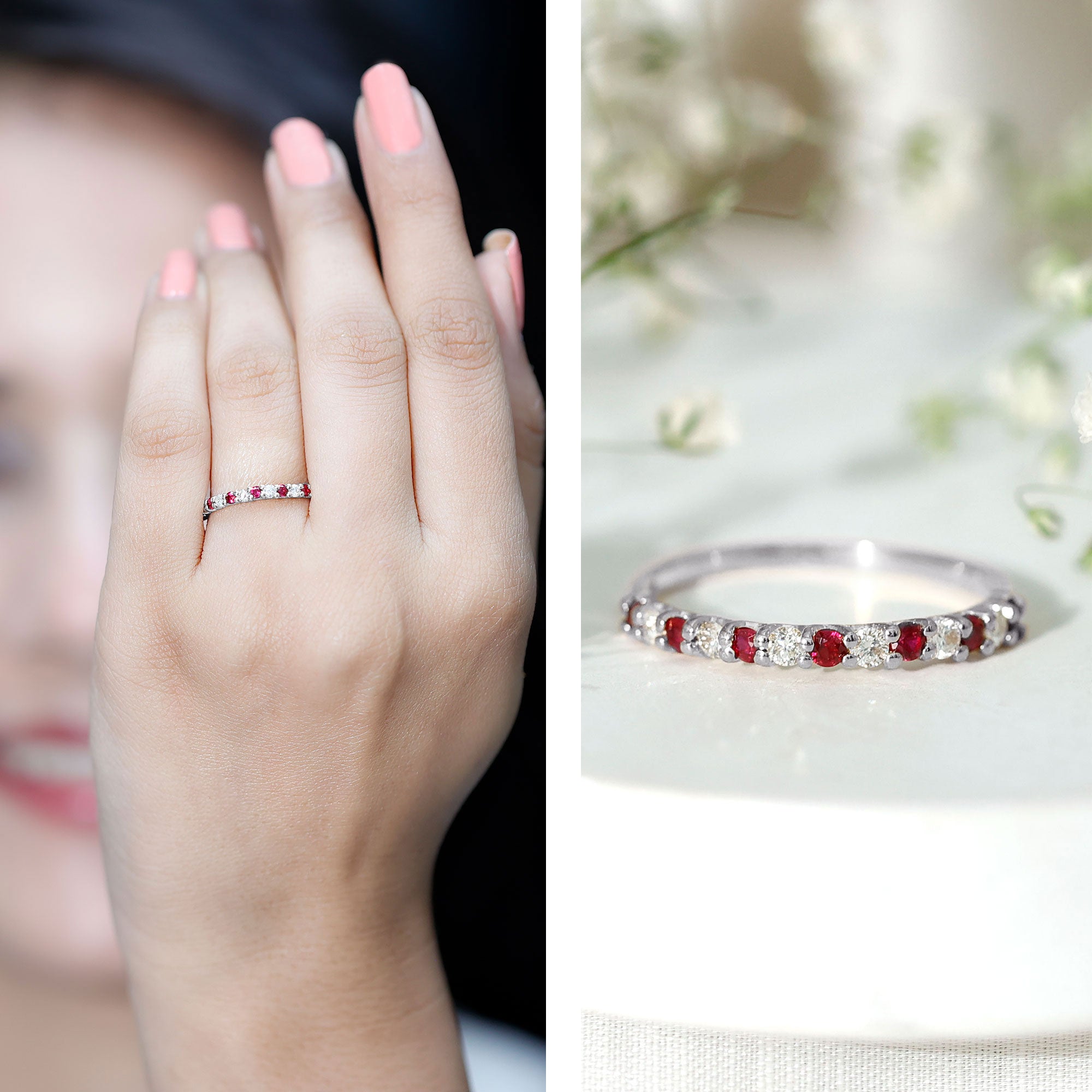 Natural Ruby Diamond Stackable Eternity Ring