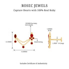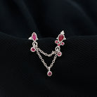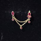 Natural Ruby Double Piercing Earring with Dangling Chain