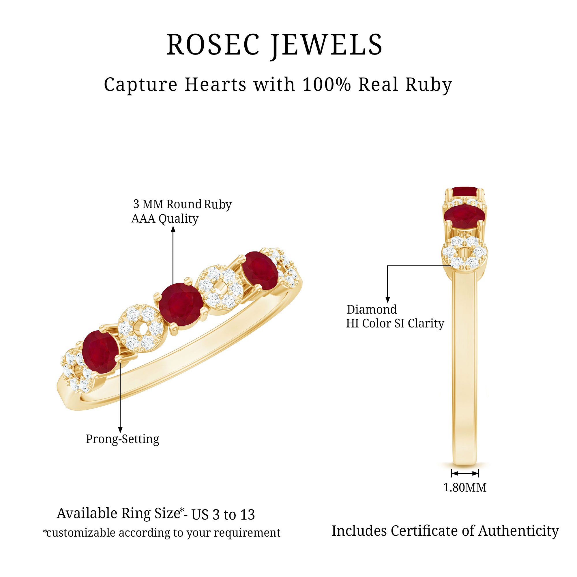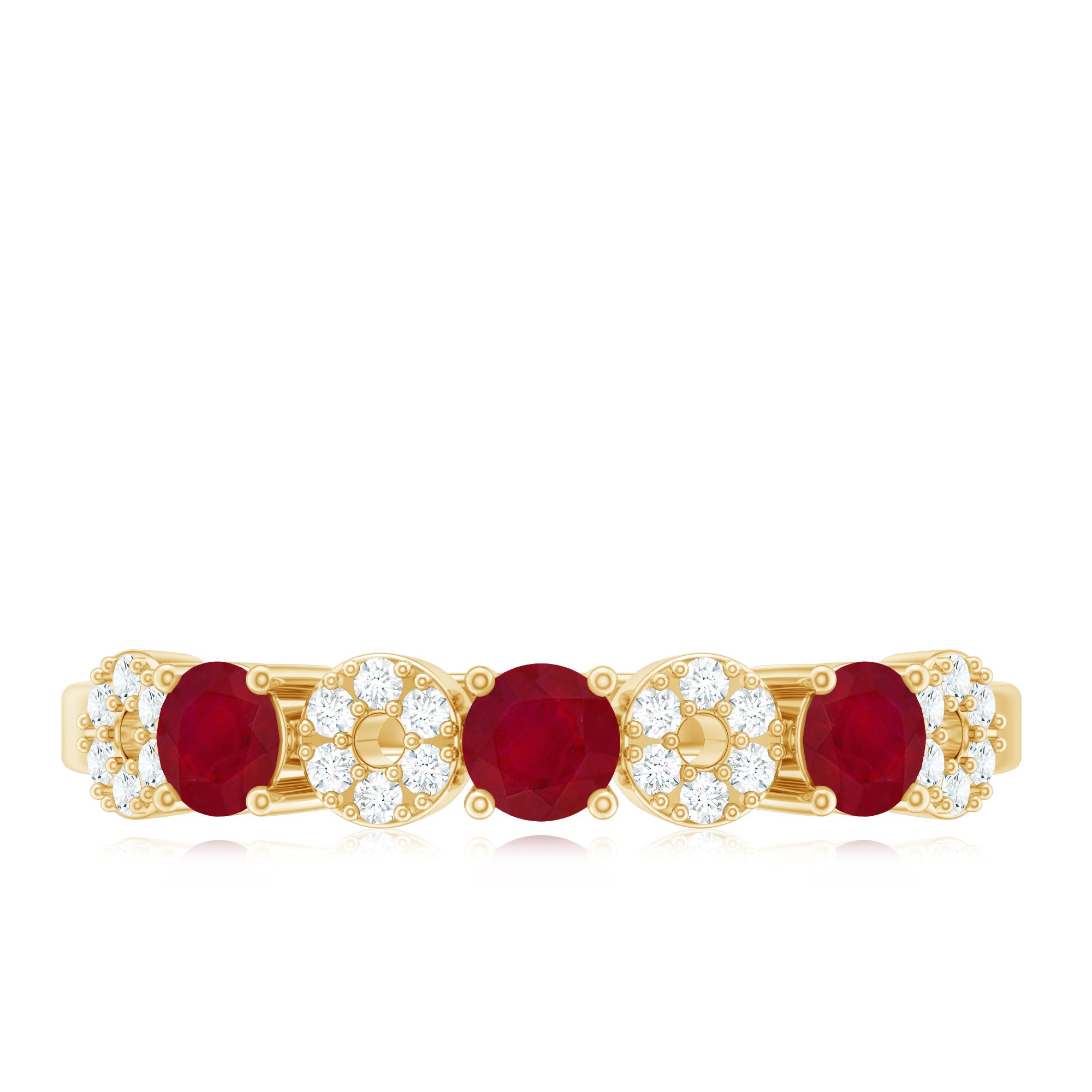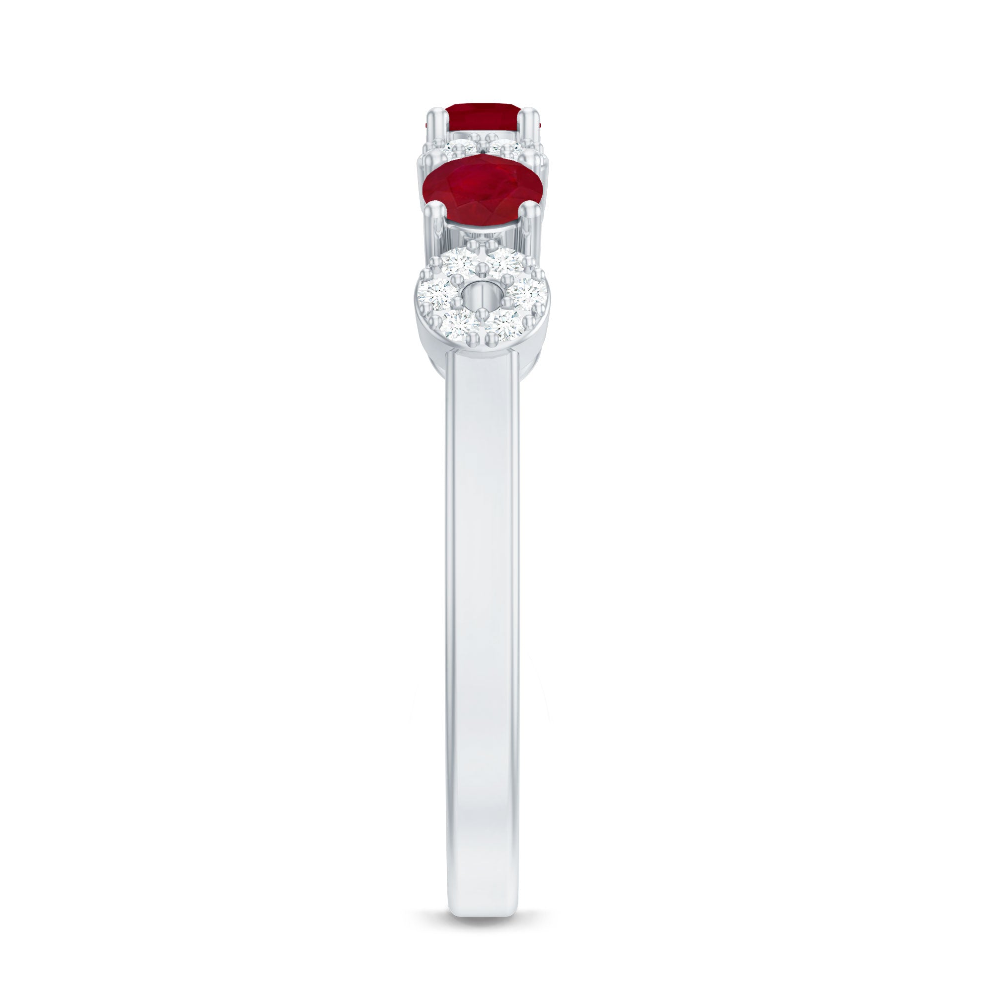 Embrace eternal love with this Half Eternity Ring adorned with Ruby and sparkling Diamond gemstones, a radiant symbol of passion and commitment.