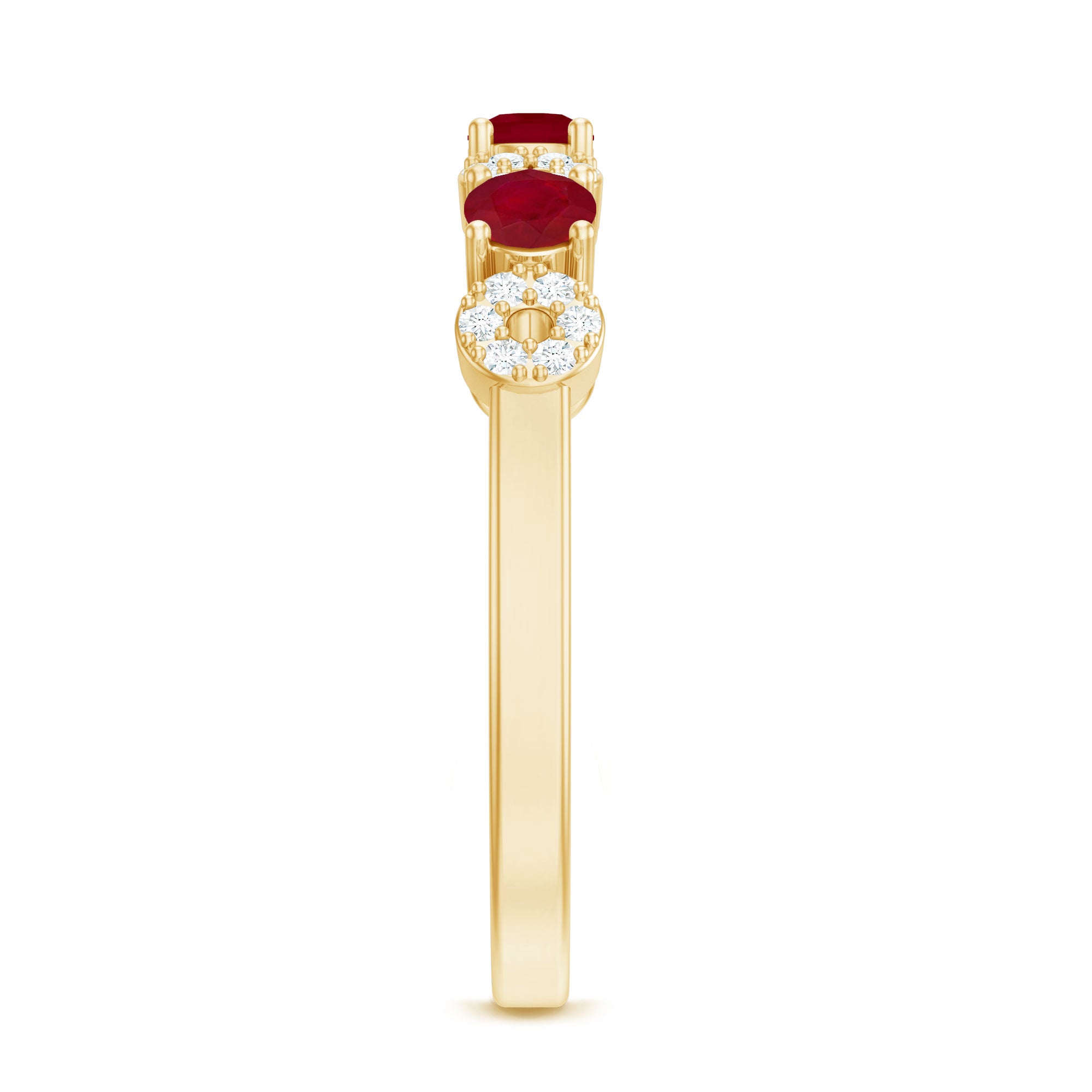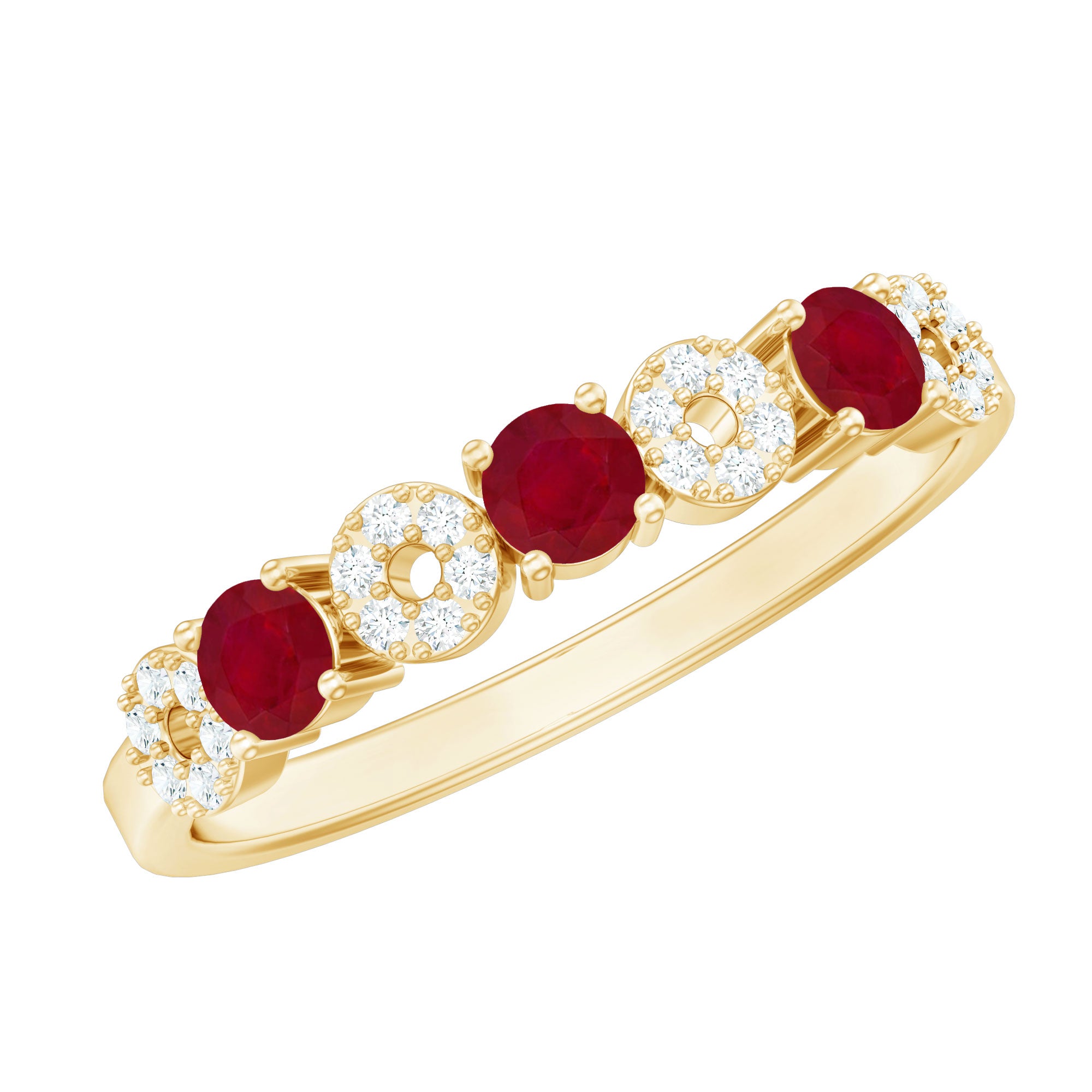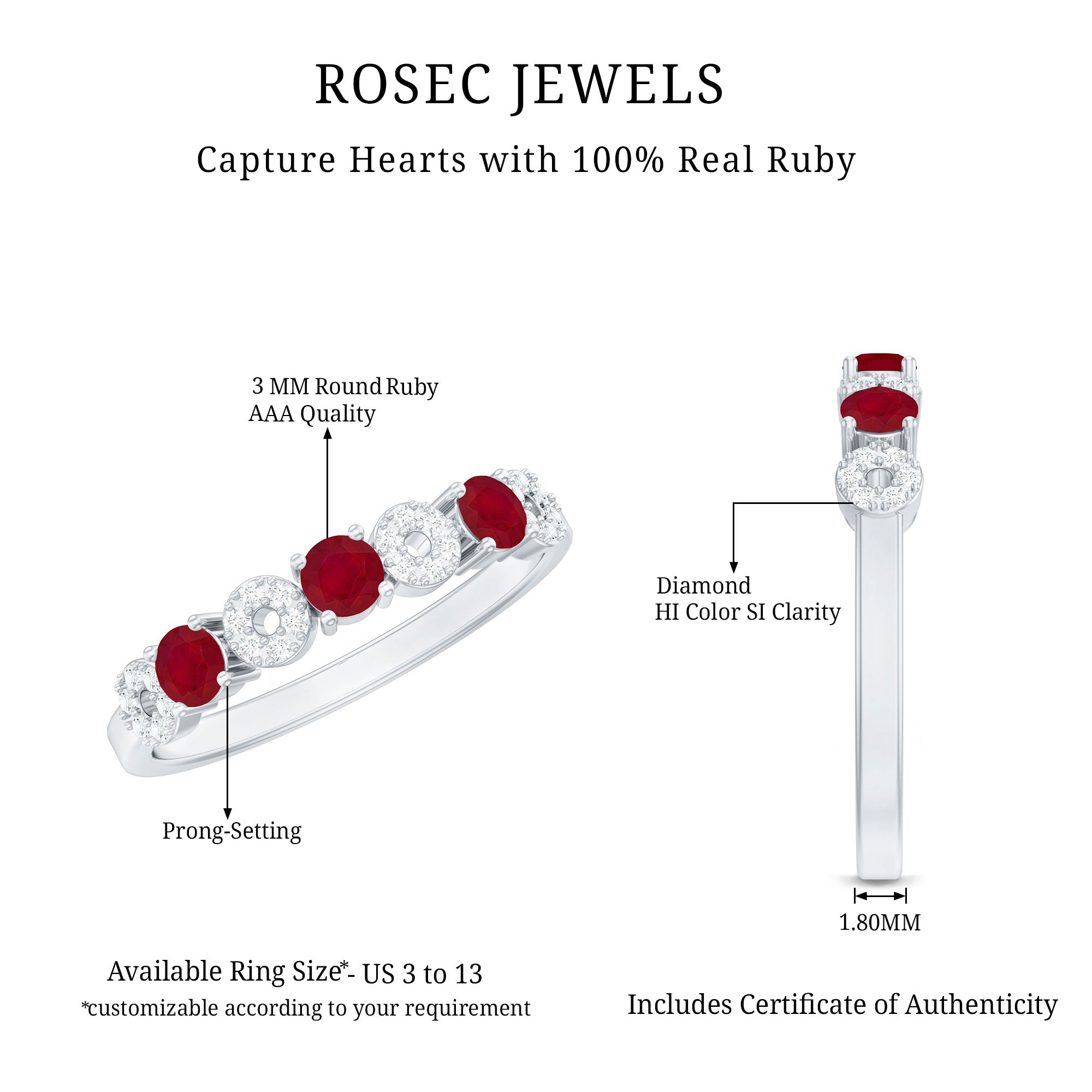 Embrace eternal love with this Half Eternity Ring adorned with Ruby and sparkling Diamond gemstones, a radiant symbol of passion and commitment.