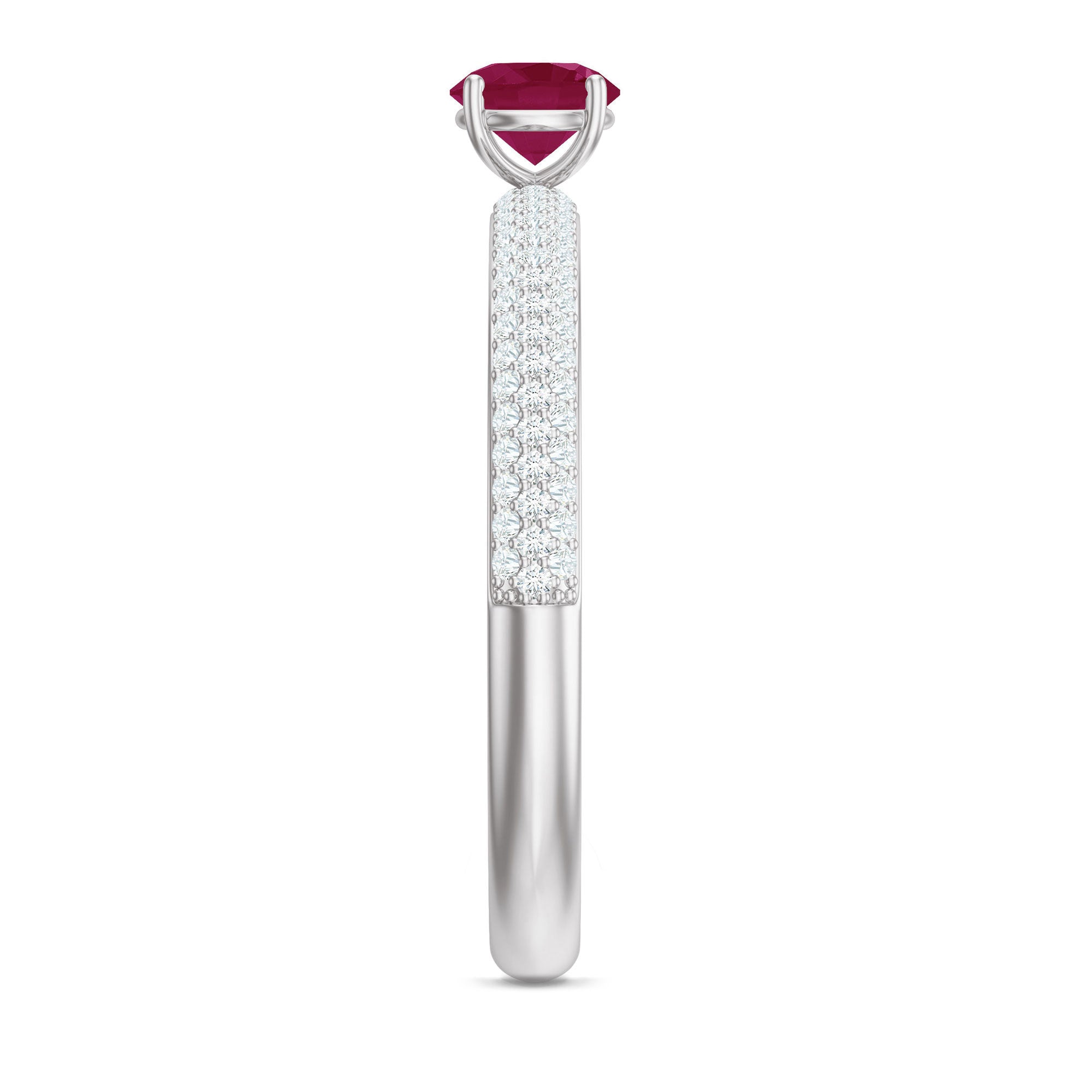 Natural Ruby Solitaire Ring with Diamond Side Stones