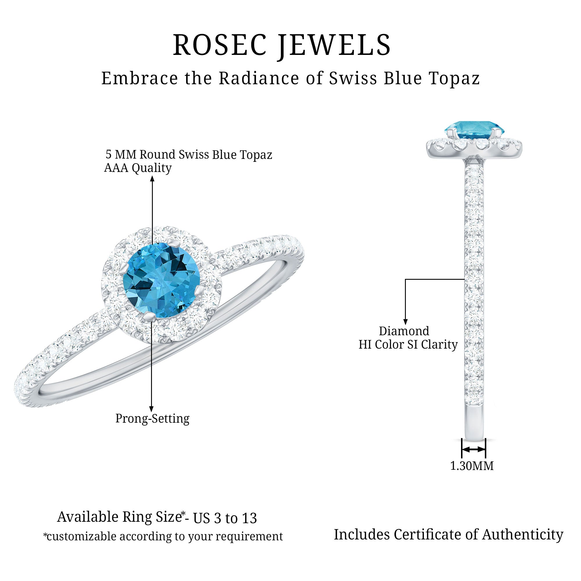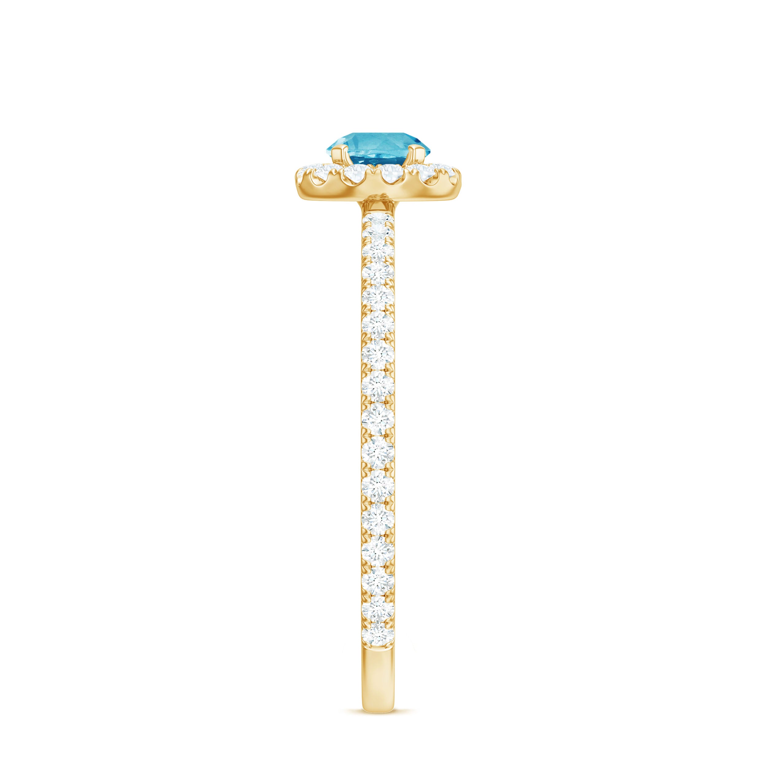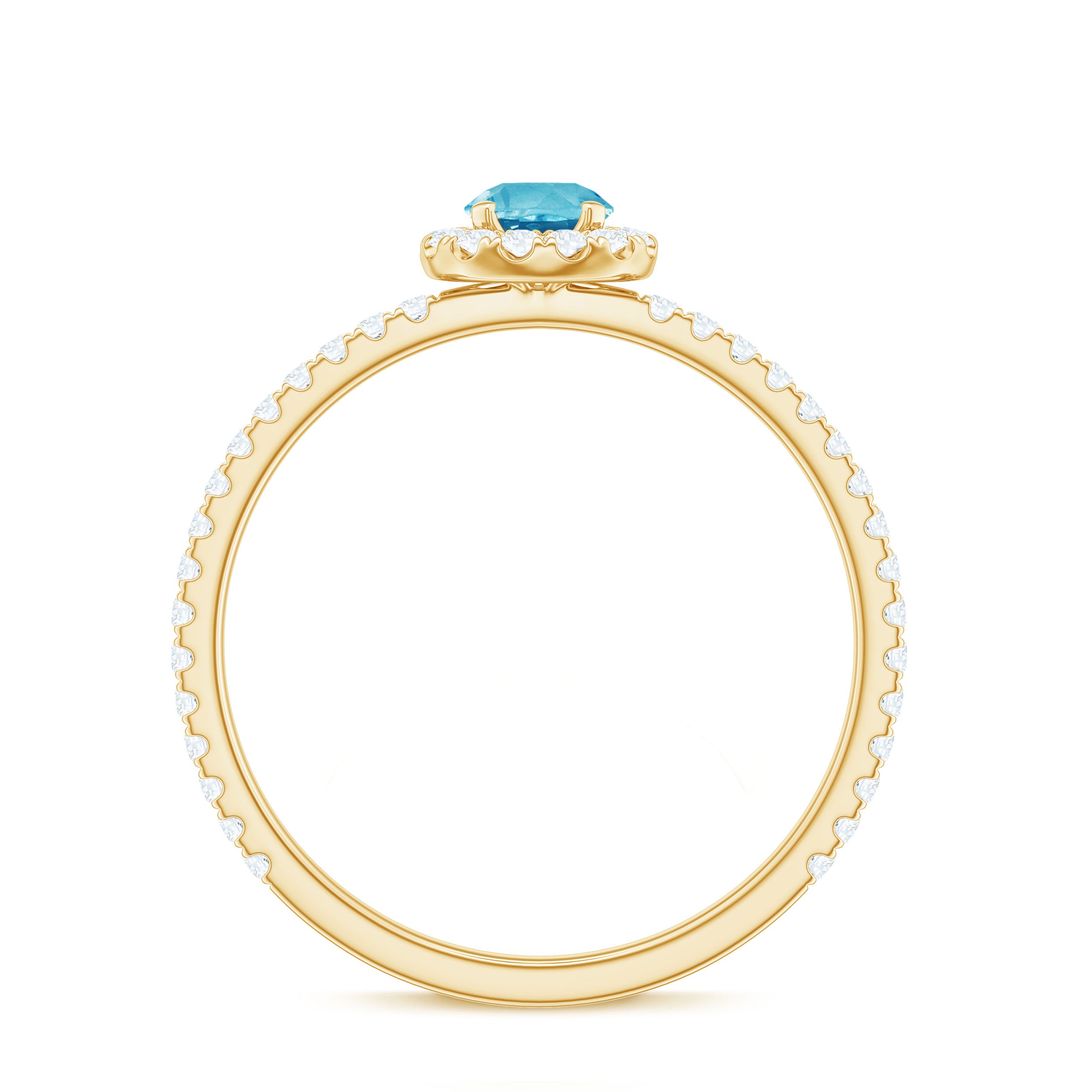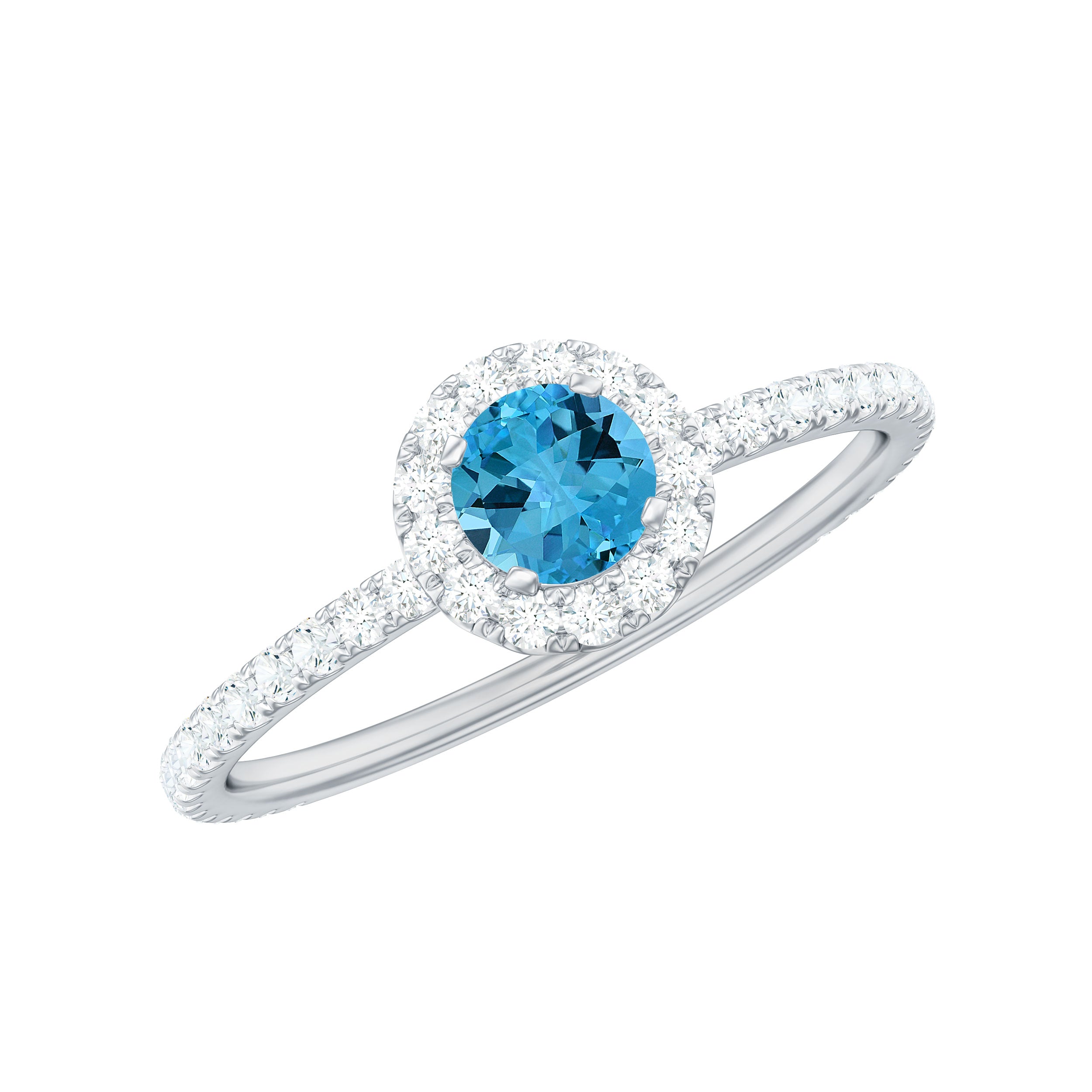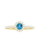 Round Shaped Blue Topaz and Diamond Minimal Engagement Ring