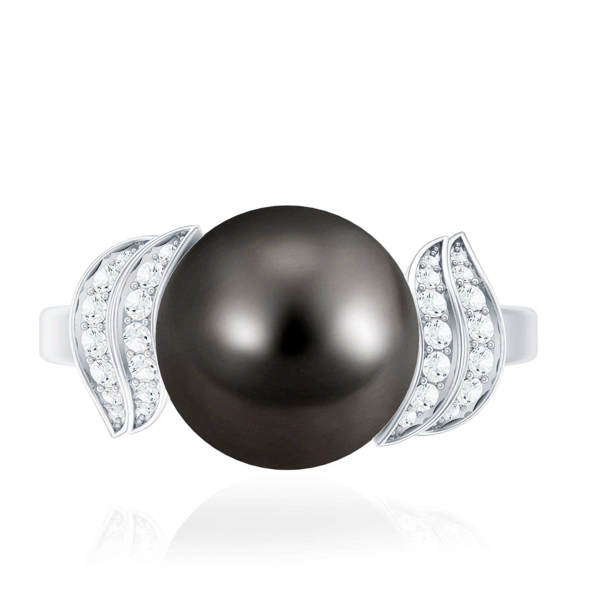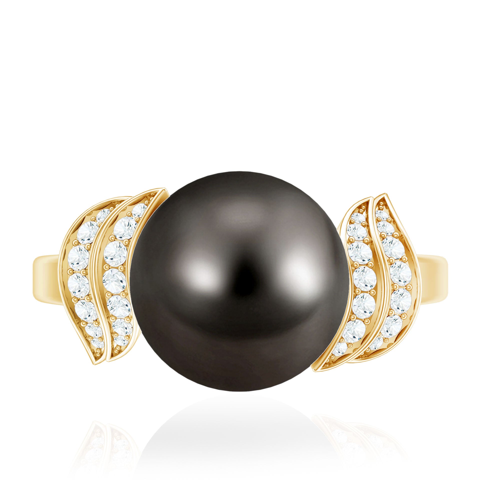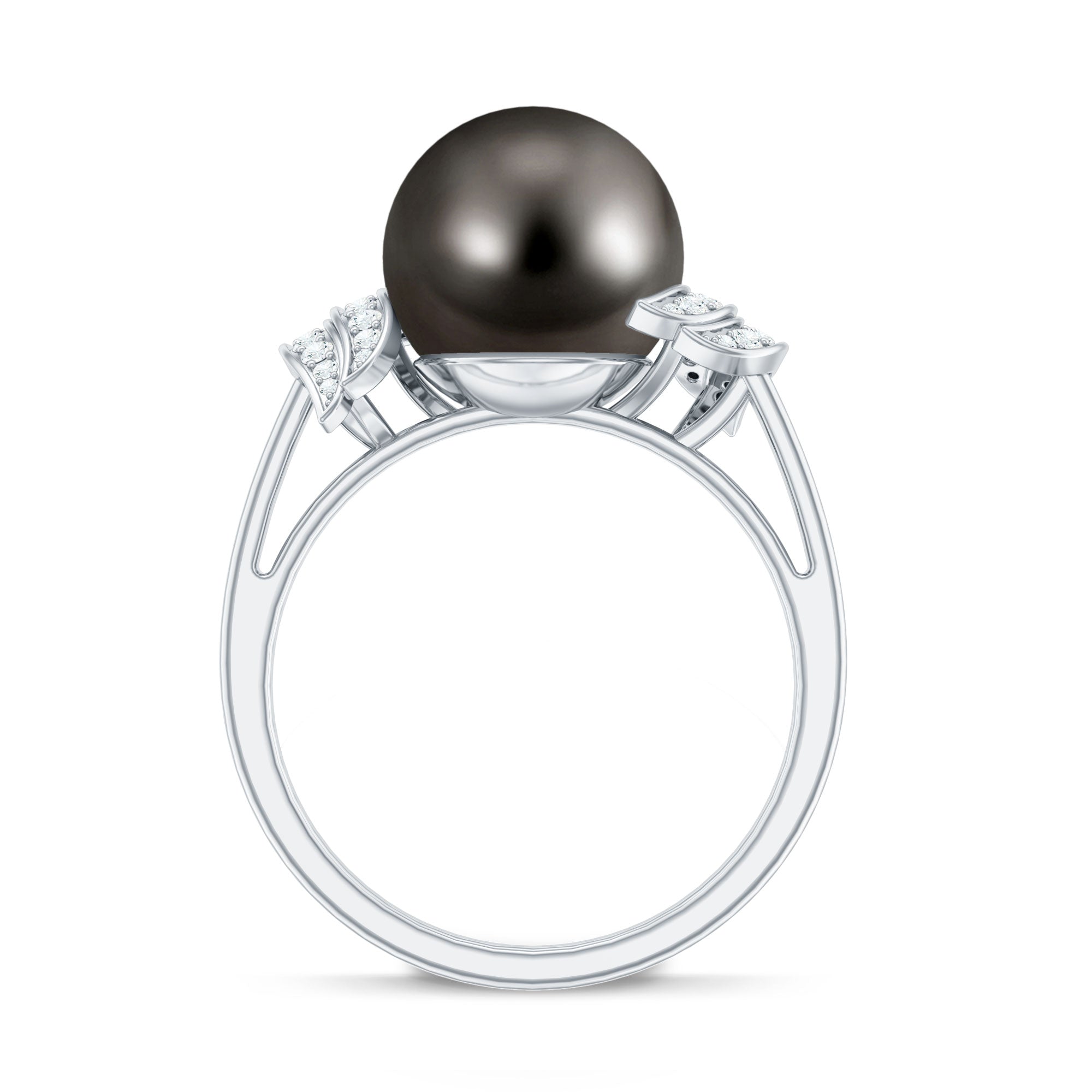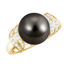 Natural Tahitian Pearl and Diamond Solitaire Engagement Ring