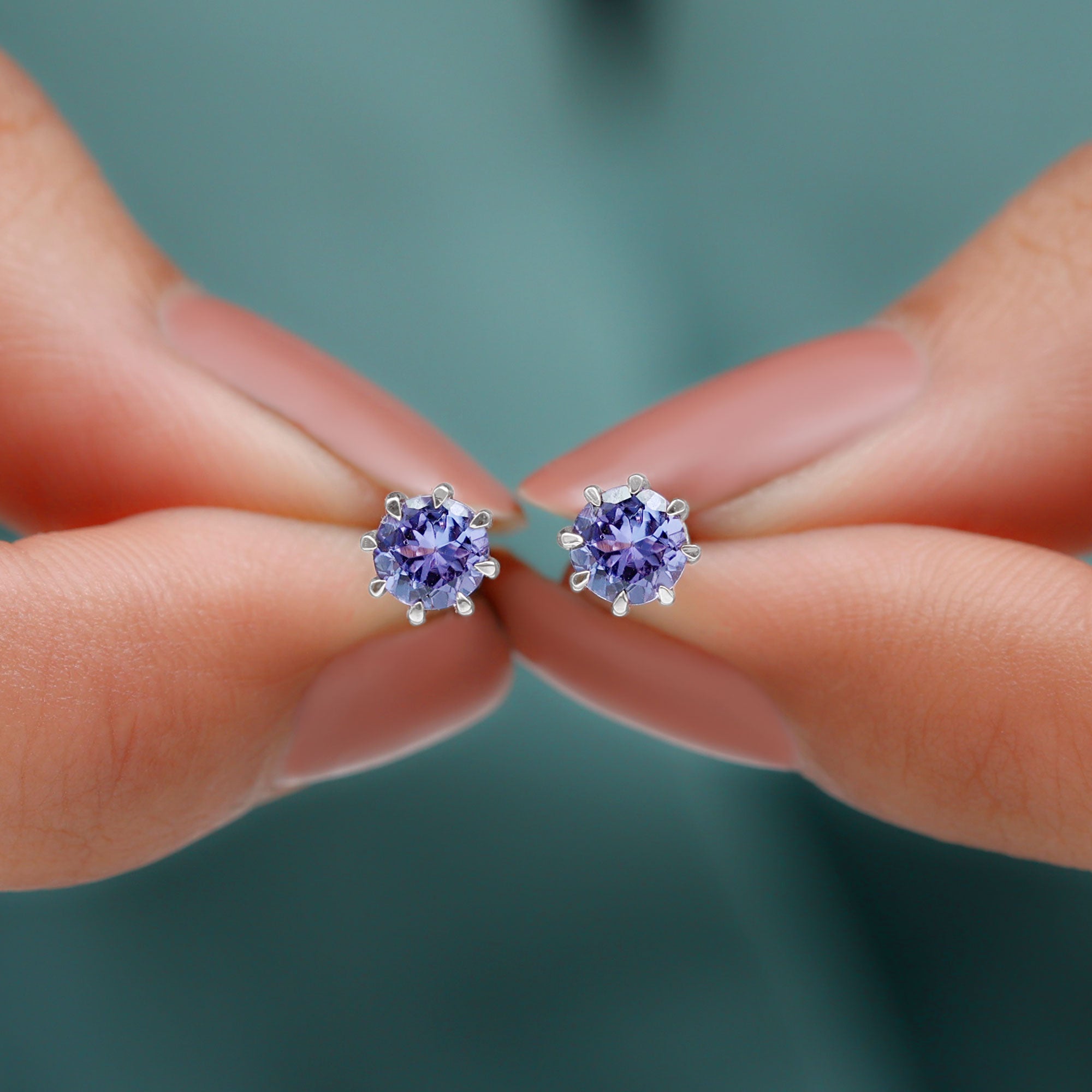 Natural Tanzanite Solitaire Stud Earrings in 8 Claw Prong Setting