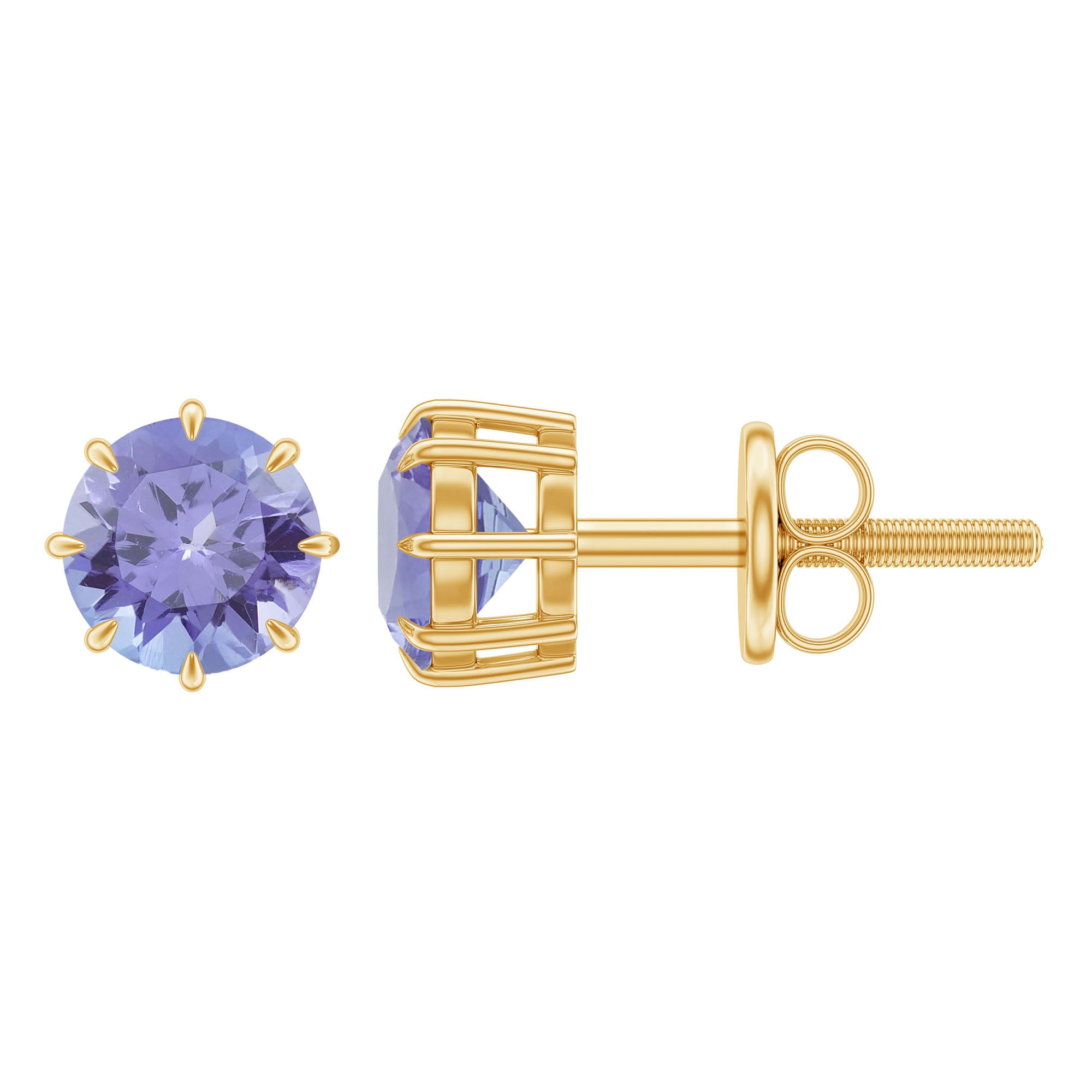 Whether it is a New Year Party or Everyday dressing, these Stud Earrings fit with every look. These Earrings are embellished with round shape Tanzanite set as Solitaire in 8 Claw Prong Setting. These Screw Back earrings are a fabulous choice for your loved one.