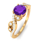 Nature Inspired Amethyst and Diamond Solitaire Engagement Ring