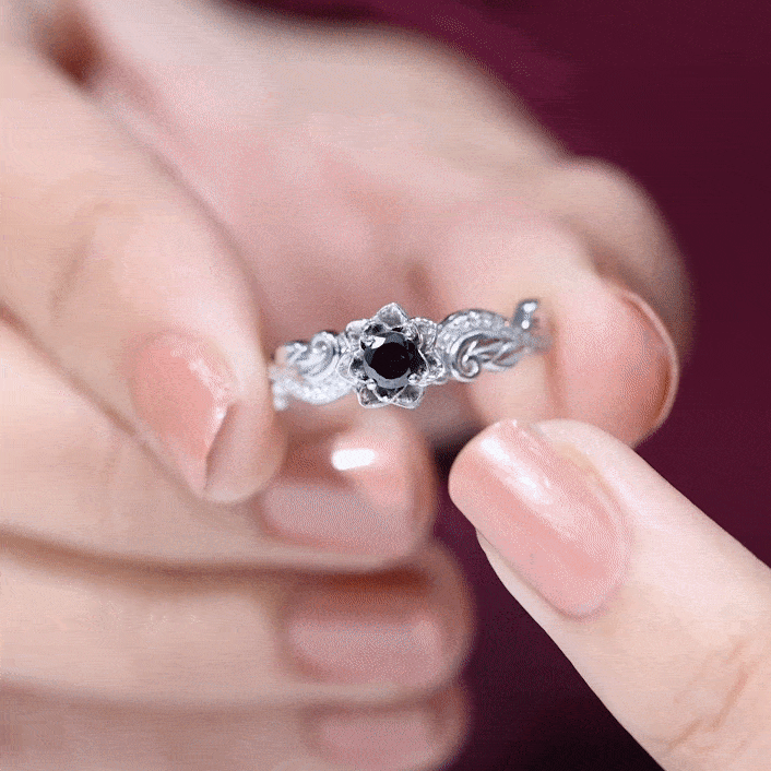 Nature Inspired Black Onyx and Diamond Floral Engagement Ring