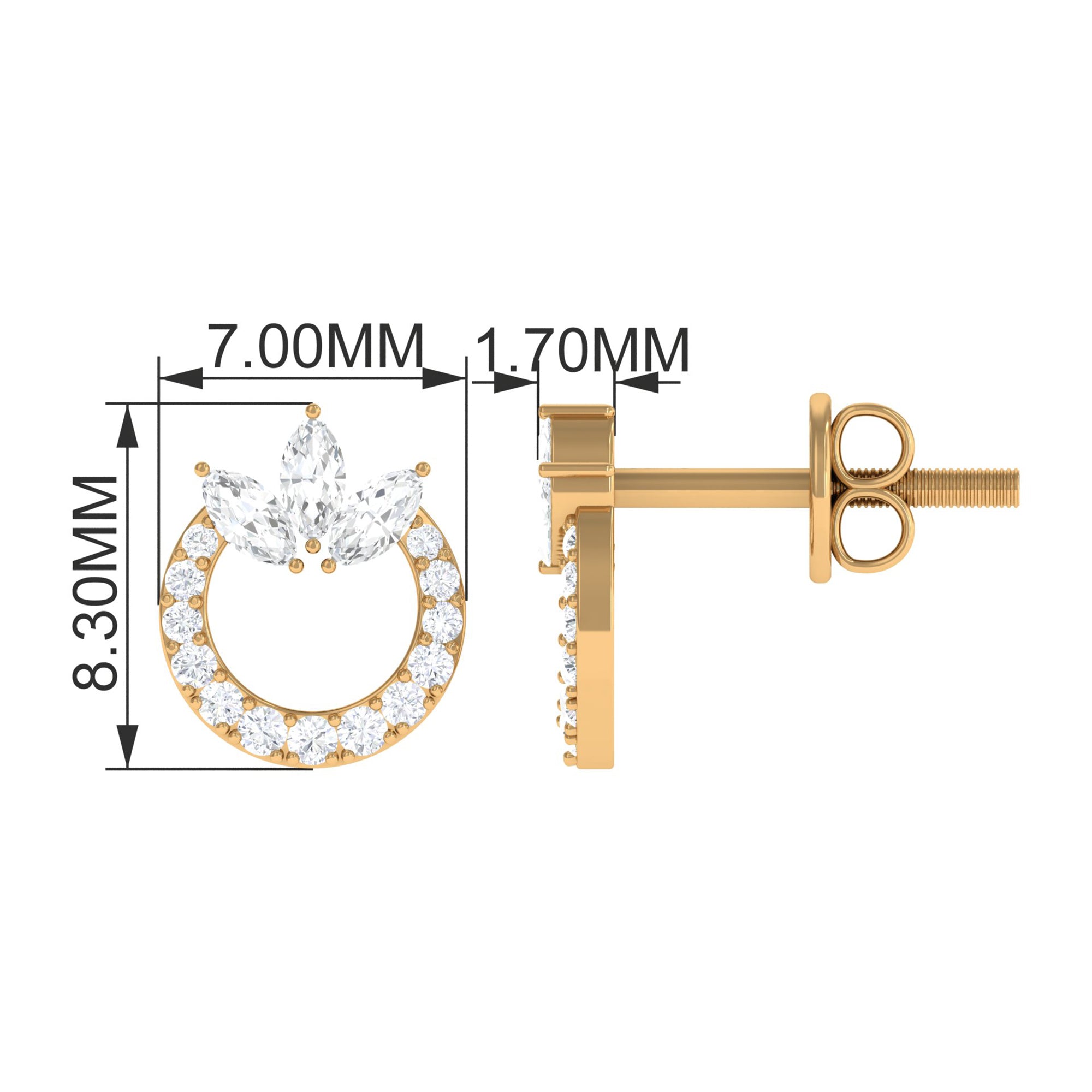 An unbroken circle of elegance, these Diamond Circle Earrings offer a stunning balance of simplicity and royal charm. Dainty Round Shape Diamond stones trace the entire loop, sparkling gently with every movement, while three Marquise Shaped Diamond stones rest at the top like a delicate crown, adding a graceful, elevated touch that makes these Diamond Earrings truly unforgettable. The combination of soft shimmer and regal detail creates a look that feels both modern and timeless, perfect for anyone who loves jewelry that speaks in subtle, beautiful ways. Secured with Screw Back Closure, these Diamond Ear Studs stay comfortably in place from morning to night, giving you confidence whether you are dressing up or keeping things casual. Presented in a lovely jewelry box, these Diamond Studs arrive ready to gift, making them an ideal choice for birthdays, anniversaries, holidays or simply to remind someone special of how cherished they are.