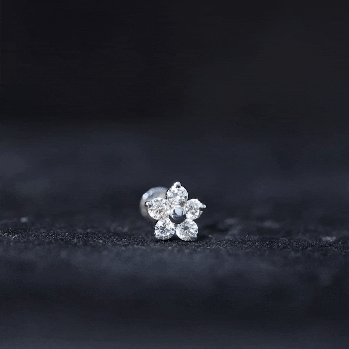 - Our diamond floral earring can be styled on your Helix, Cartilage, Tragus, Conch, or Upper Lobe Piercing offering you the freedom to express your style effortlessly.