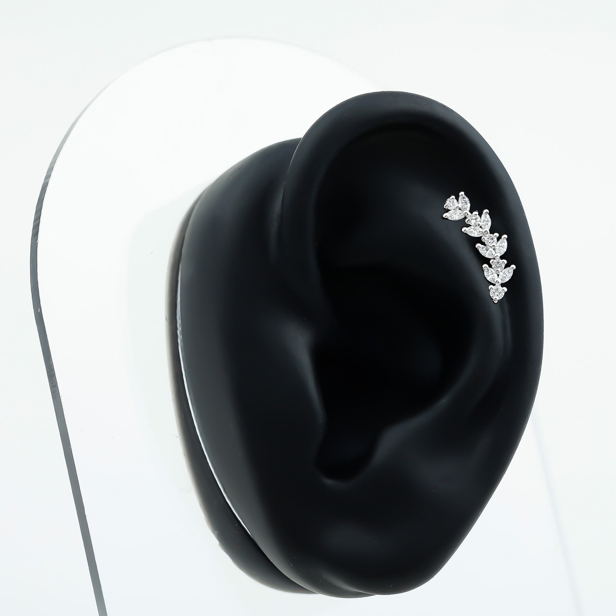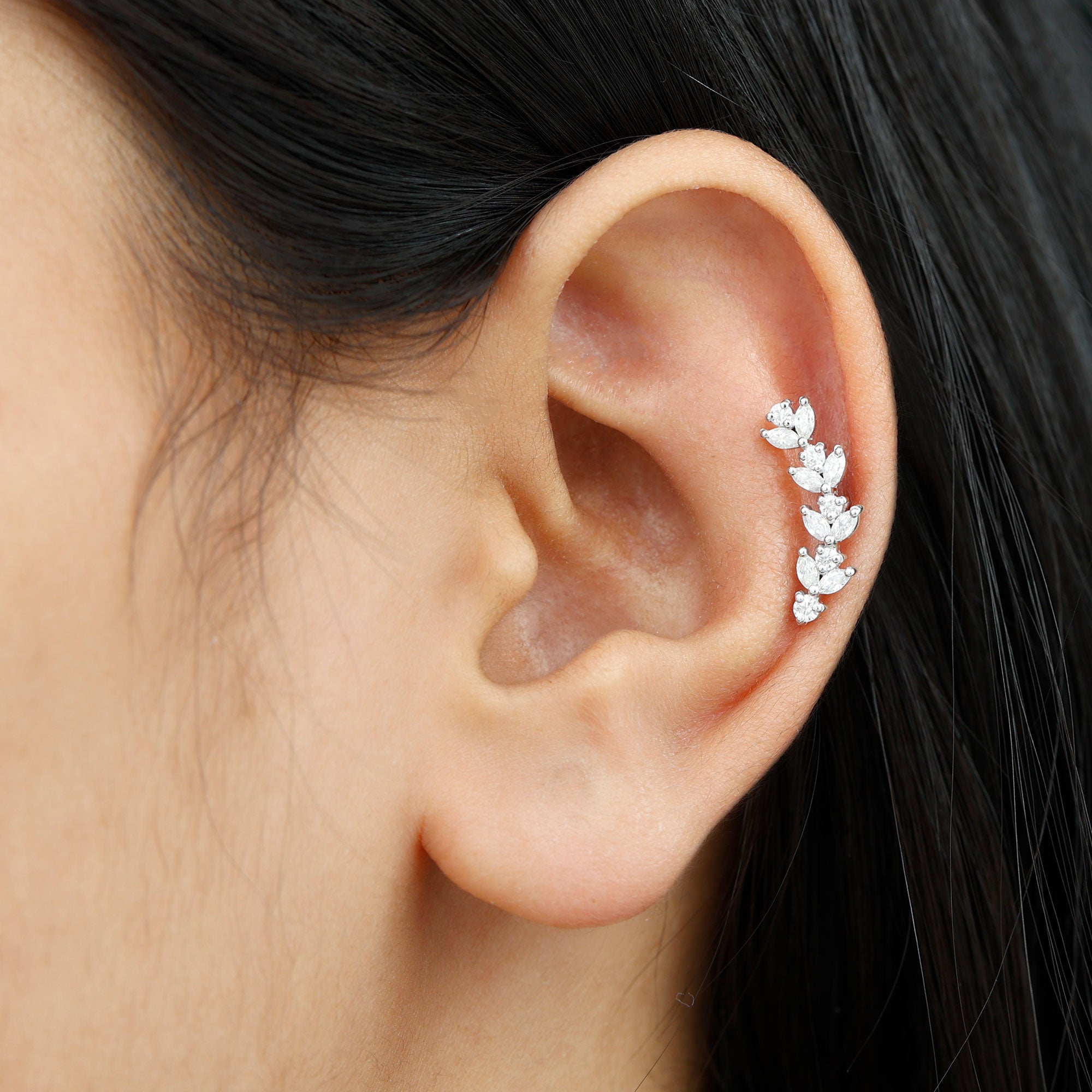 Nature Inspired Diamond Leaf Crawler Helix Earring