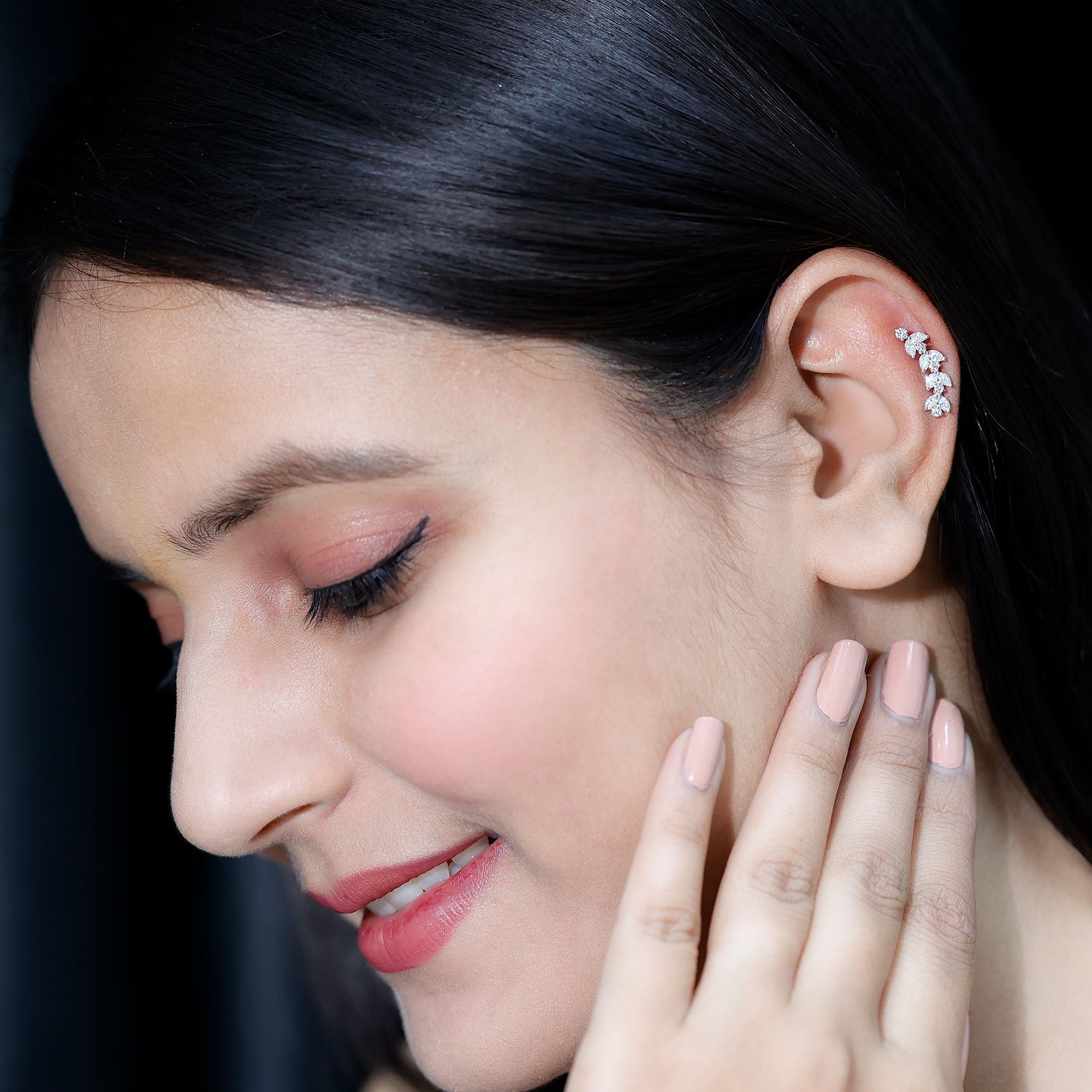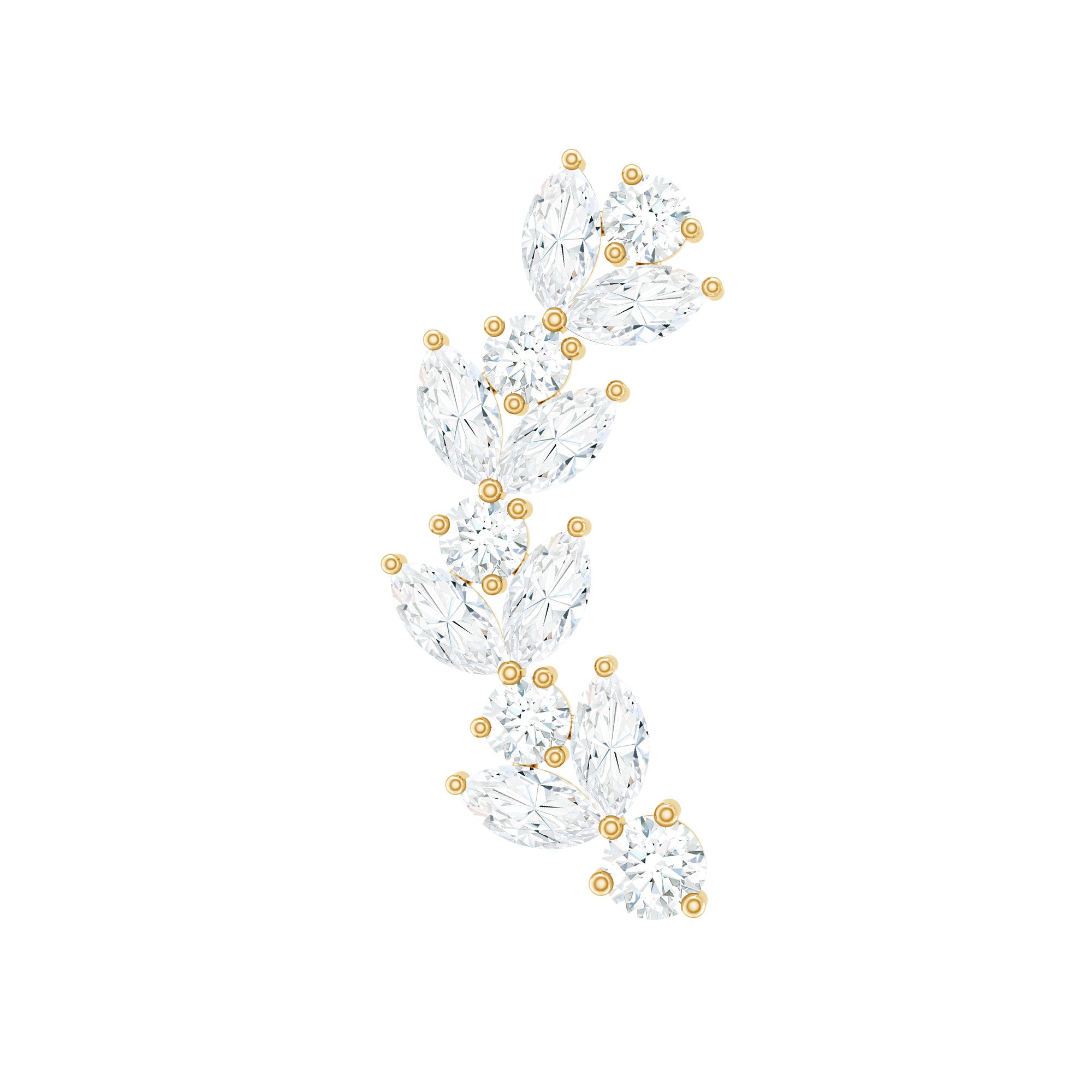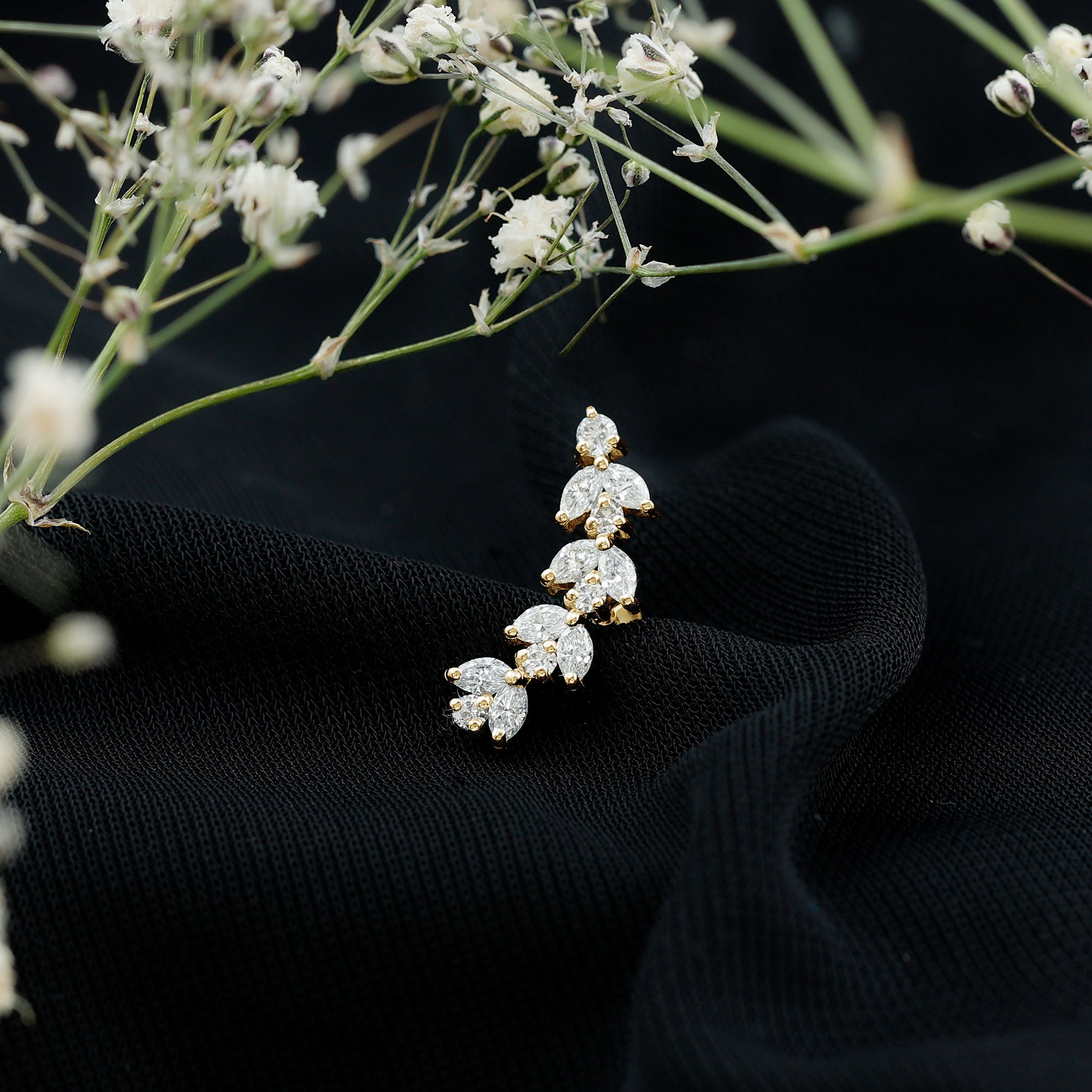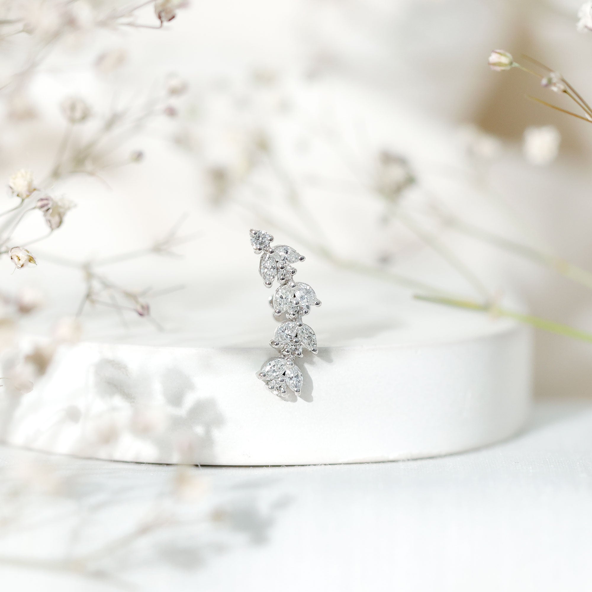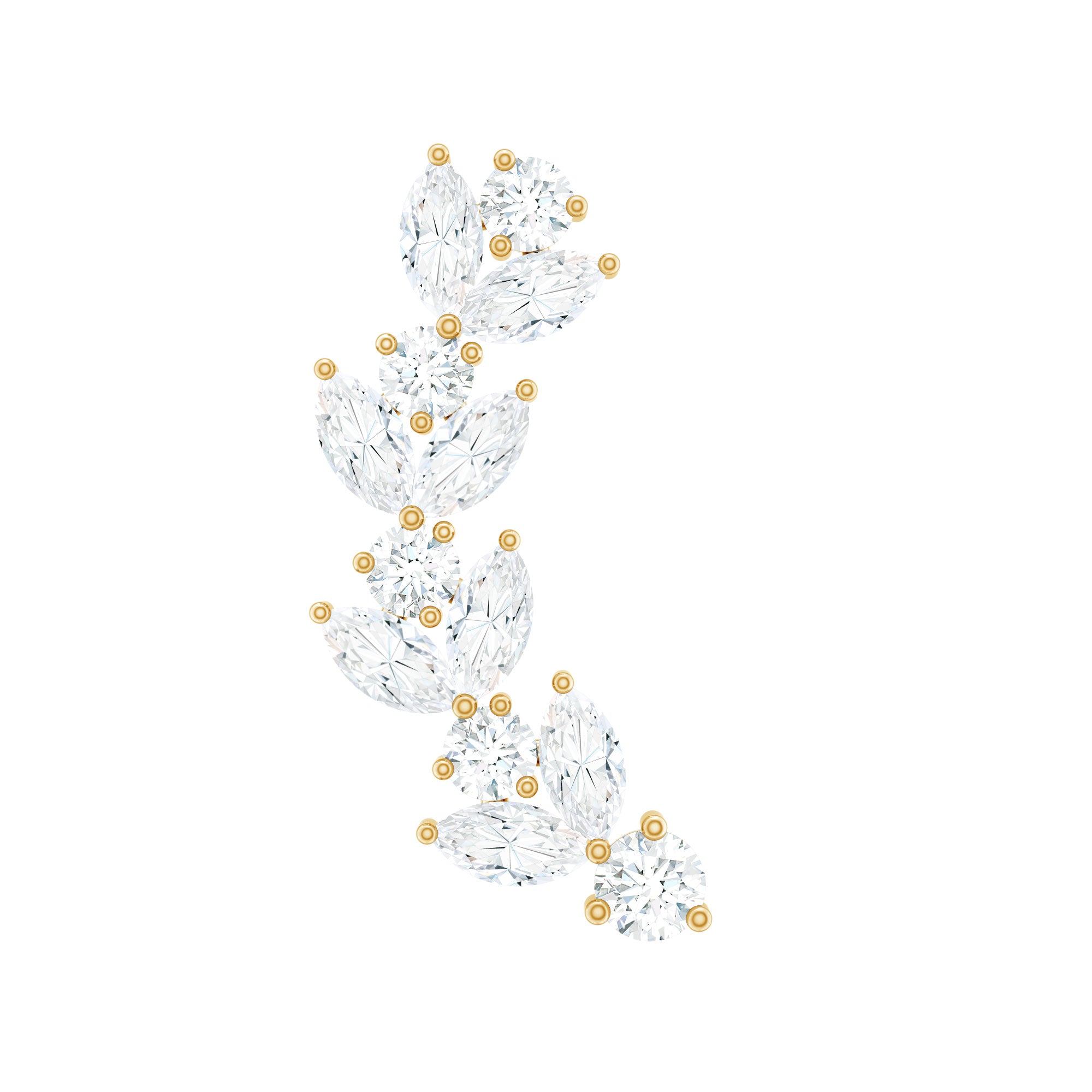 This cluster of leaves emits a divine glow. This leaf crawler earring features marquise and round diamonds secured in prong setting. Secures comfortably with a flat back closure. This diamond leaf earring effortlessly adds some nature-inspired flair to your ensemble, without straying too far from that lavish style you adore. There are endless ways to style this piercing earring, pair this marquise diamond earring with studs, hoops, or any bold, statement pieces of jewelry. You can wear it on your multiple piercings like Helix, Cartilage, or Upper Lobe Piercing. Its sleek and modern look makes it versatile enough to pair with casual outfits, evening wear, or a more sophisticated and layered ear stack. Perfect for trendsetters and jewelry lovers, this Diamond Helix Earring adds a bold yet elegant accent to your style. Crafted with care, the Curved Earring is designed to combine sparkle, comfort, and durability. Gift this earring to your special one and wait for her priceless reaction!