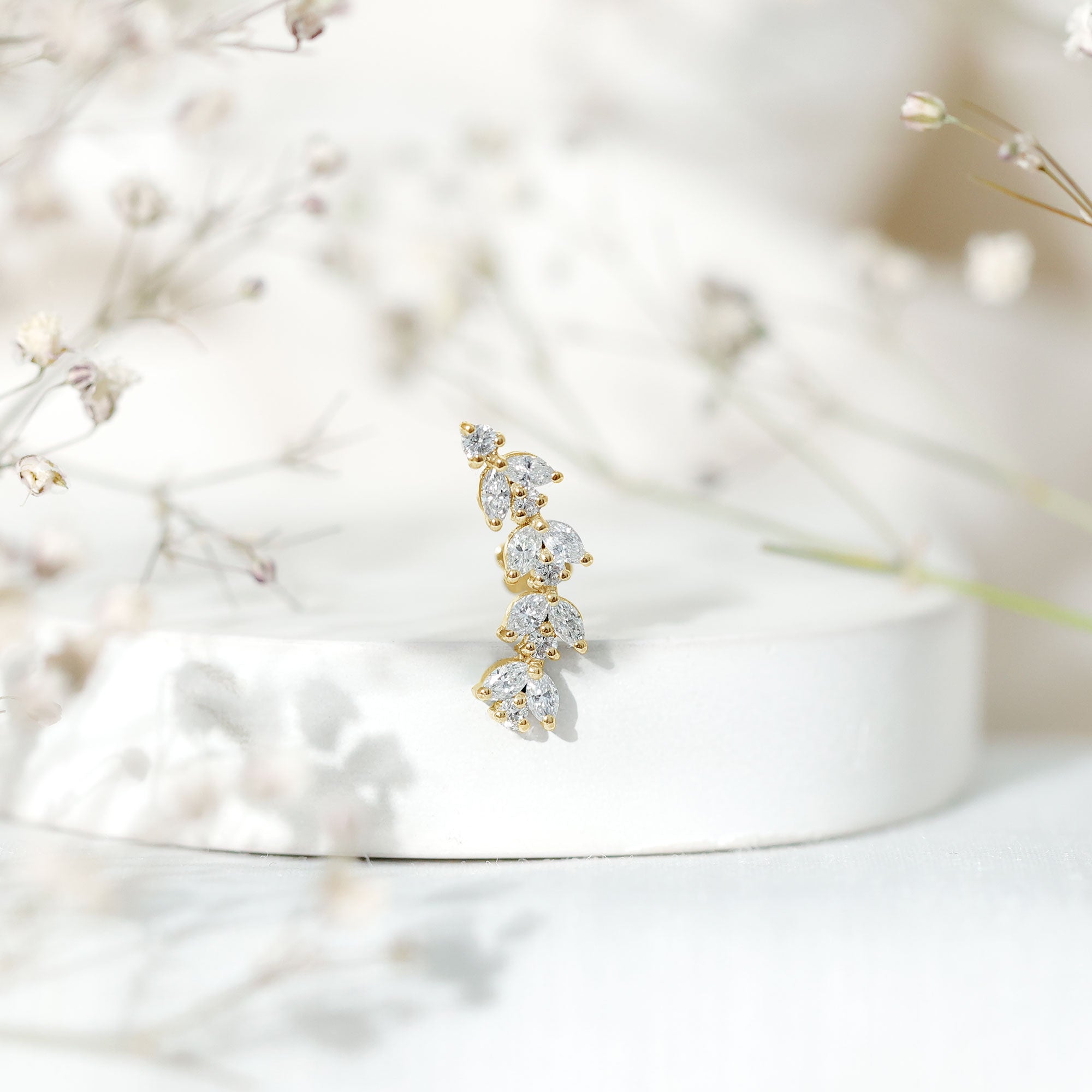 - There are endless ways to style this piercing earring, pair this marquise diamond earring with studs, hoops, or any bold, statement pieces of jewelry.
