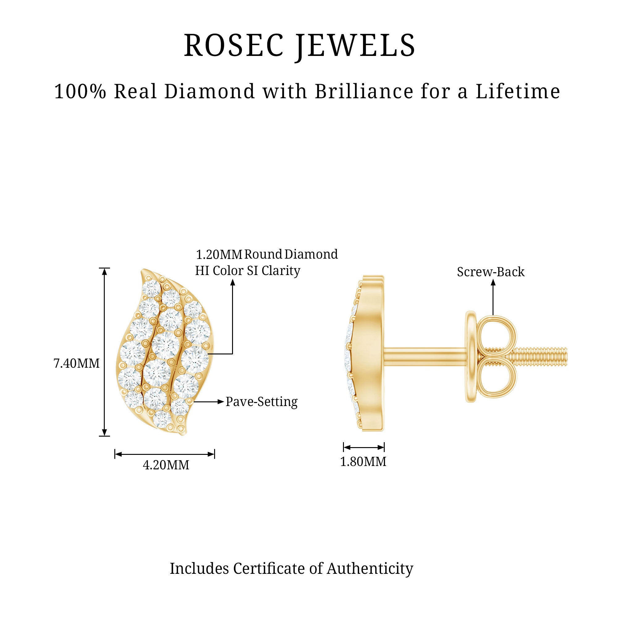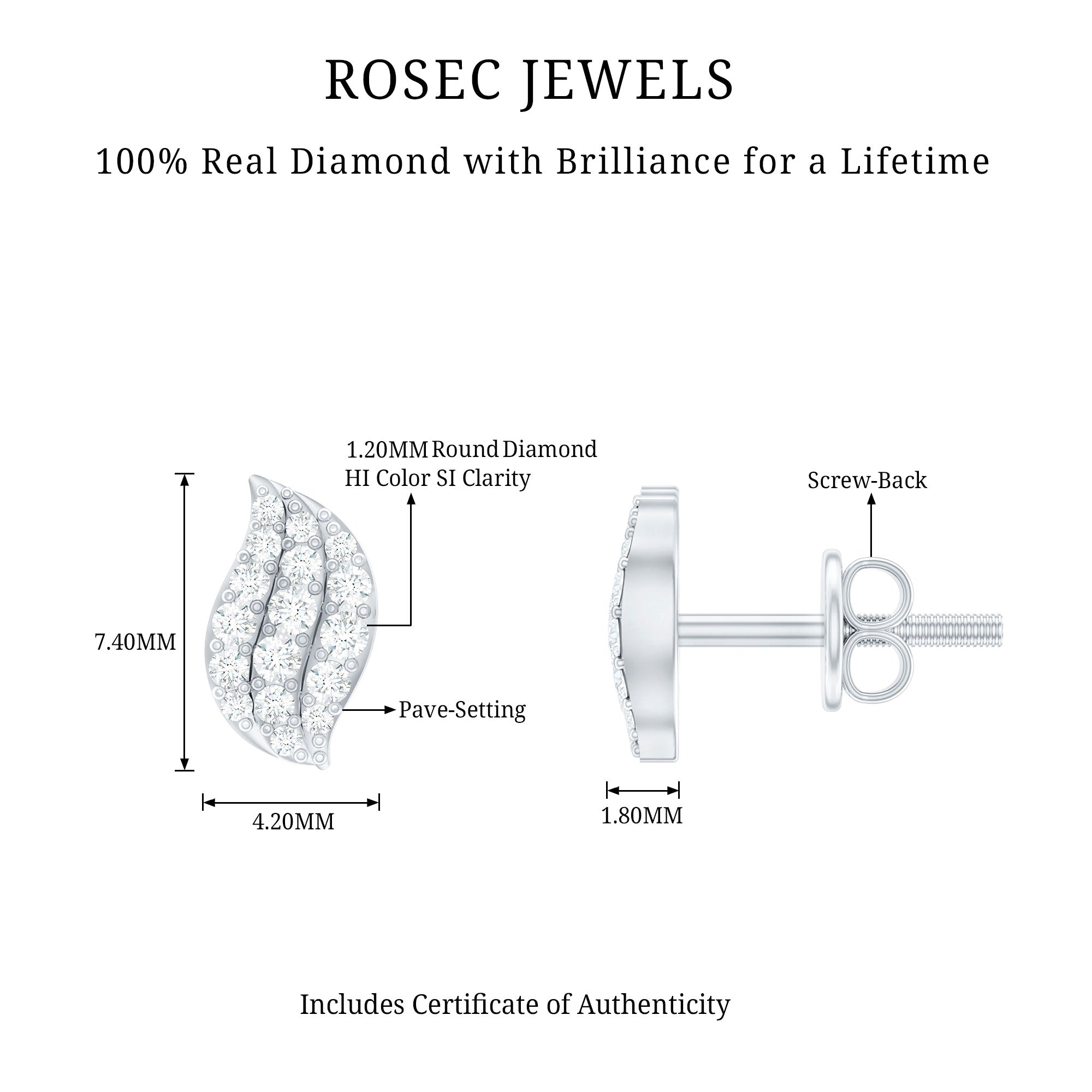 Inspired by the gentle beauty of nature, these Leaf Earrings capture the delicate elegance of a leaf sparkling in sunlight. These Fine Earrings are adorned with sparkling Diamond stones that trace the graceful veins of the leaf, creating a subtle shimmer that feels both natural and enchanting. Their intricate design brings a touch of nature to your style, making them perfect for women who love jewelry with a thoughtful, nature-inspired twist. The secure Screw Back Closure ensures comfort and confidence, allowing you to wear them all day or night without a worry. Whether paired with casual outfits, workwear or a chic evening dress, these Diamond Stud Earrings add a sparkling touch that elevates any look effortlessly. Arriving in a beautifully crafted jewelry box, these Diamond Ear Studs are ready to gift, making them an ideal choice for birthdays, anniversaries, holidays or simply as a heartfelt surprise for someone special. Their timeless design ensures they will be treasured for years, adding a meaningful touch to any jewelry collection. Elegant, delicate and full of subtle sparkle, these Diamond Earrings are a graceful reminder of beauty, growth and the small moments that make life shine.
