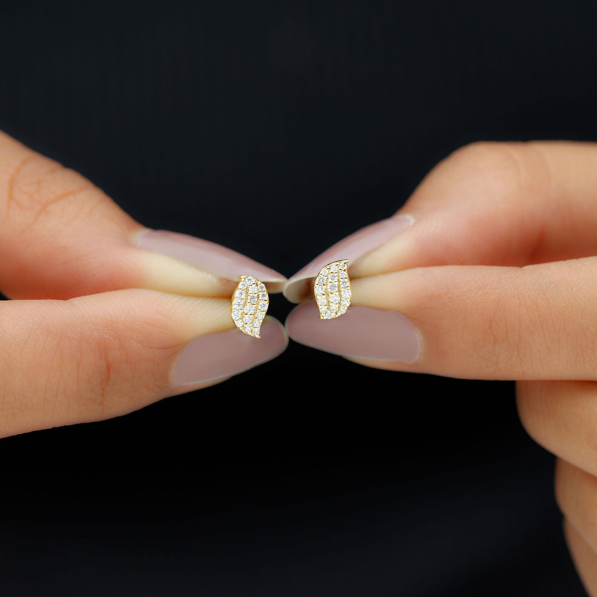 Nature Inspired Diamond Leaf Stud Earrings