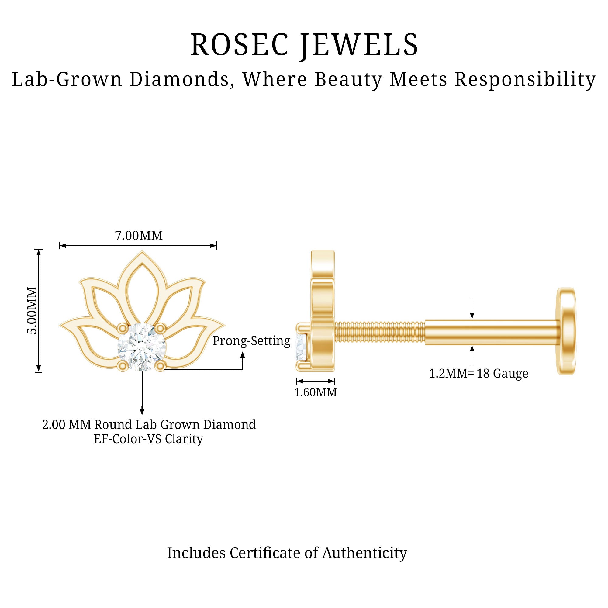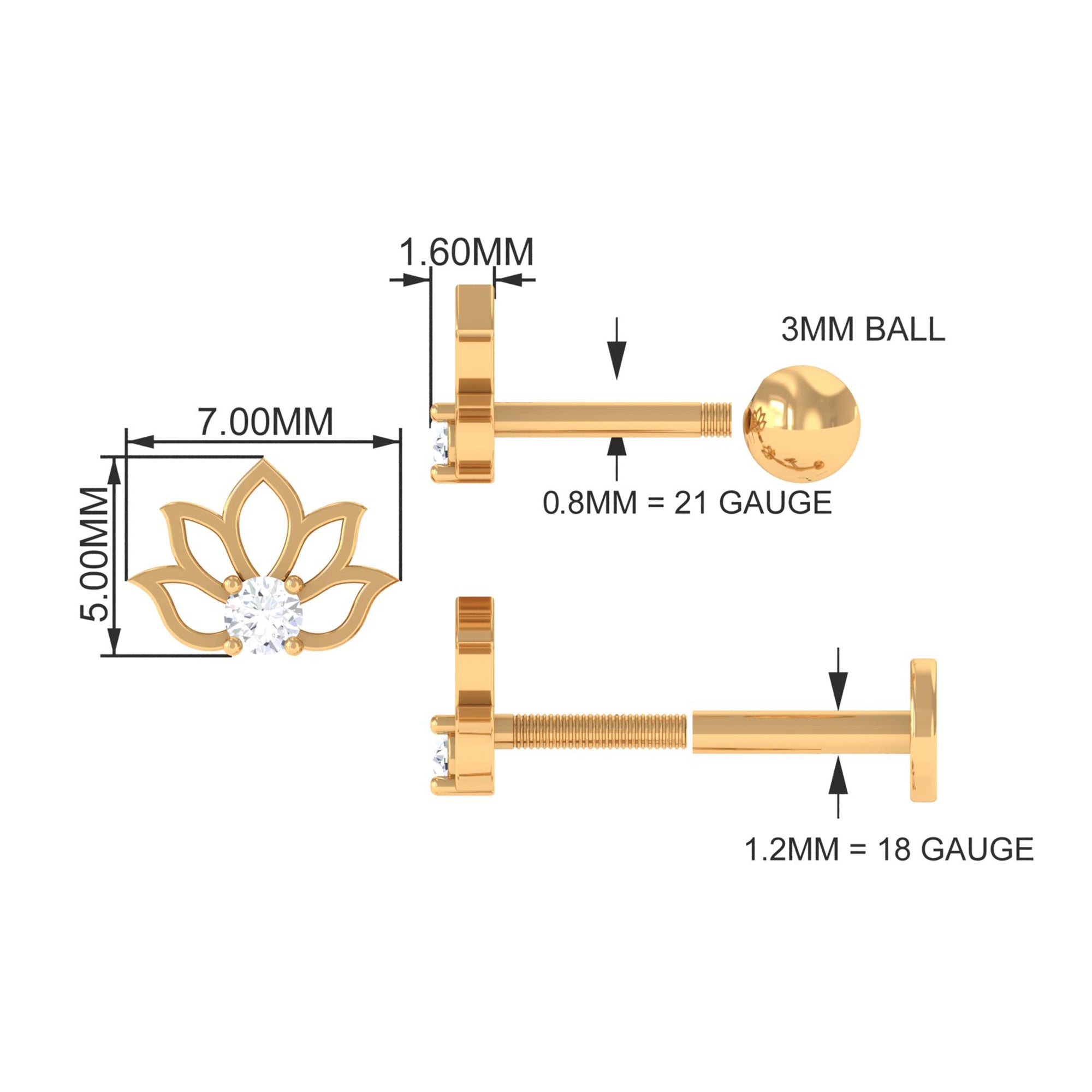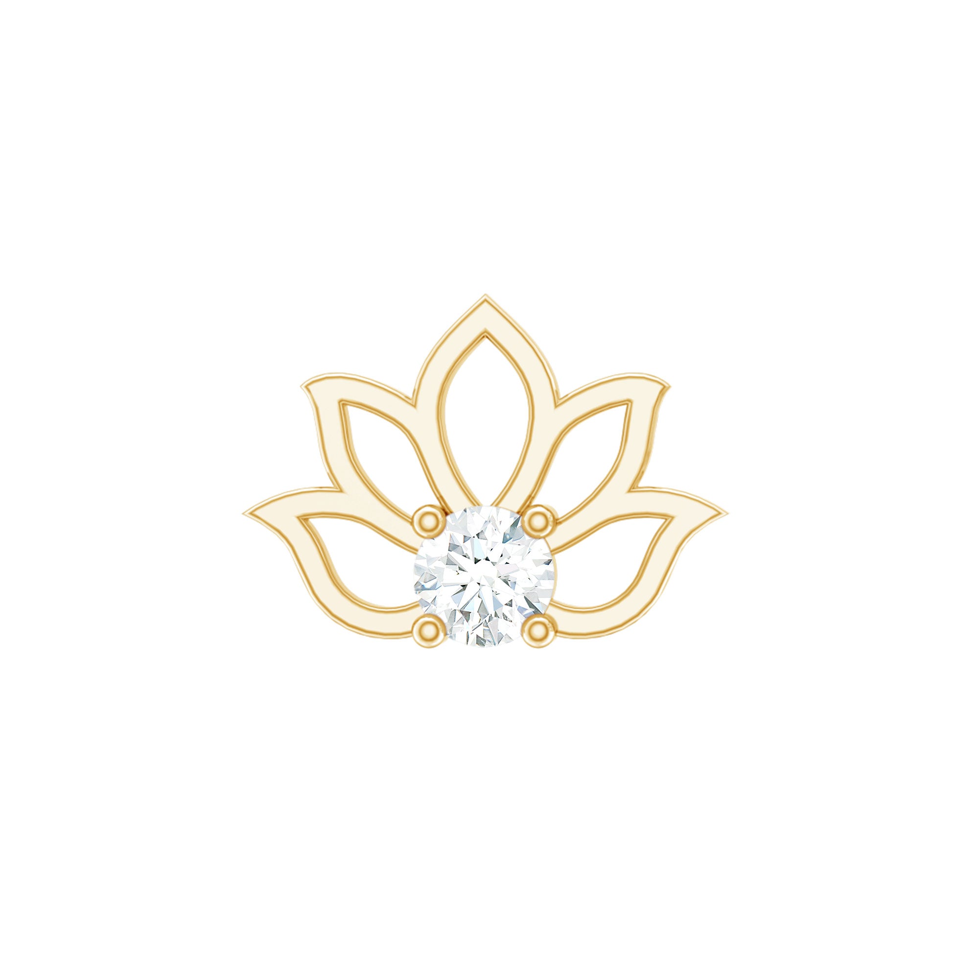 Beautiful and delicate, the Diamond Lotus Earring is embellished with a sparkling Round Diamond secured by Prong Setting in the center of the flower design. Crafted with Hallmarked Metal, the Helix Earring is an absolutely stunning piece of jewelry, as you can probably turn any dull outfit into a bright and nicer one with the vibe it carries. You can simply adorn it on your Helix, Cartilage, Upper Lobe, and Conch Piercing. Surprise your special one by presenting this Diamond Flower Earring, she will surely adore it for her whole life.
