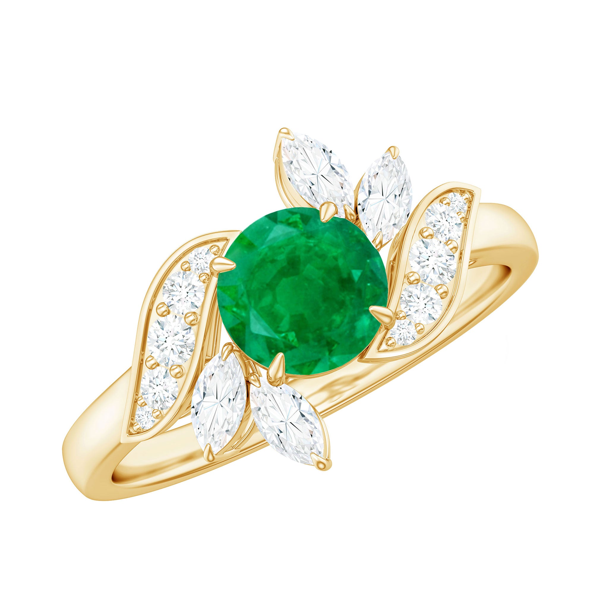Step into a world where love blossoms endlessly with this Emerald Engagement Ring, a piece that celebrates the beauty of romance and the elegance of the natural world. This Fine Ring features a vibrant 5 mm Round Shape Emerald gemstone set in Claw Setting, radiating a deep green glow that symbolizes renewal, harmony and enduring devotion. Surrounding the center stone, delicate Leaf motifs are adorned with sparkling Round and Marquise Shape Moissanite stones, creating an ethereal elegance. The intricate design evokes the gentle curves of nature, while the brilliance of the Moissanite stones adds a modern sparkle that draws every eye. Perfect for a proposal, an anniversary or any cherished moment, this Nature Inspired Engagement Ring tells a story of love that grows just like the leaves encircling its radiant center. Thoughtfully crafted, this Emerald Moissanite Ring comes beautifully presented in a signature jewelry box and is available in various ring sizes to ensure a flawless fit. Romantic, whimsical and endlessly captivating, this Emerald Ring for Women is a celebration of life and the timeless beauty found in the heart of nature.