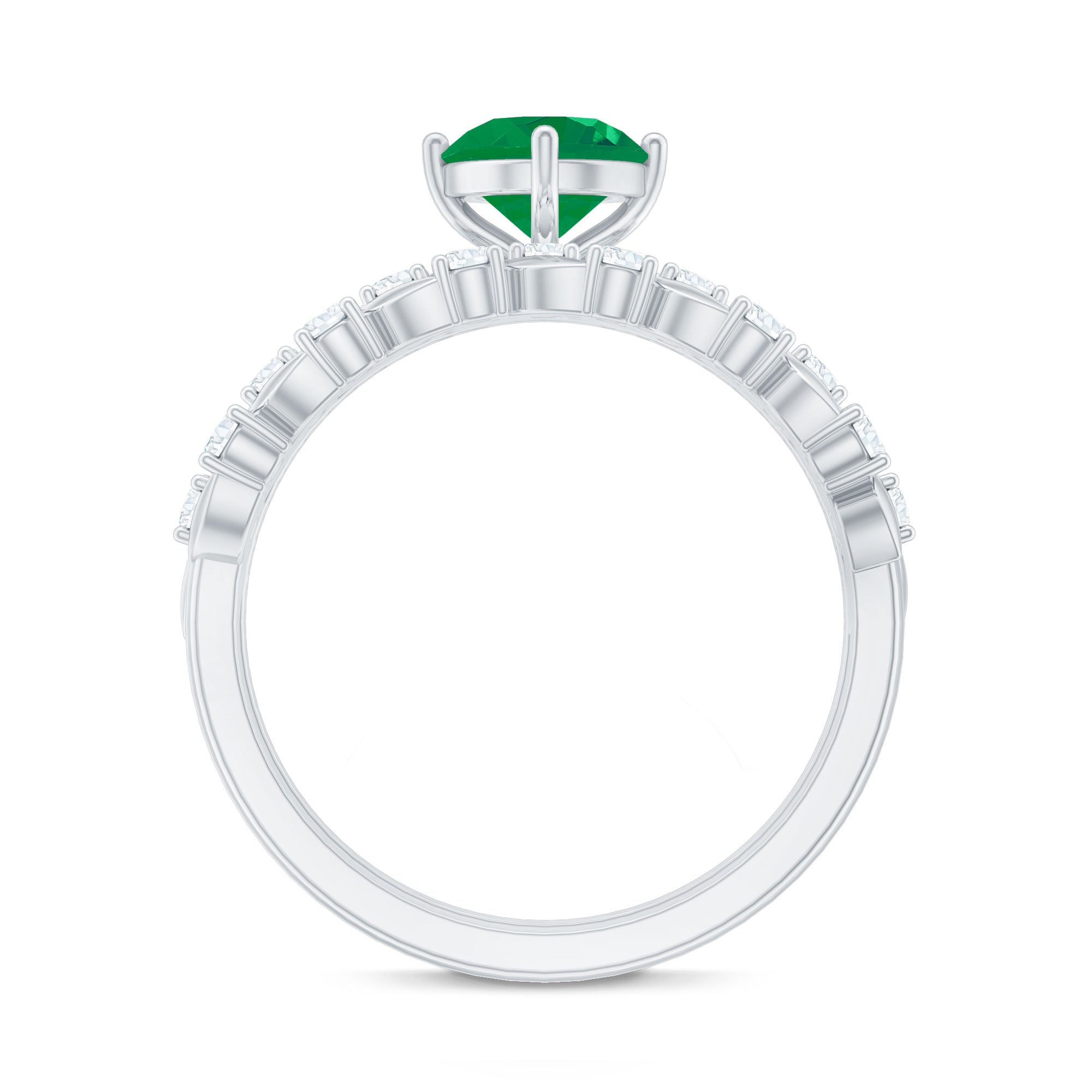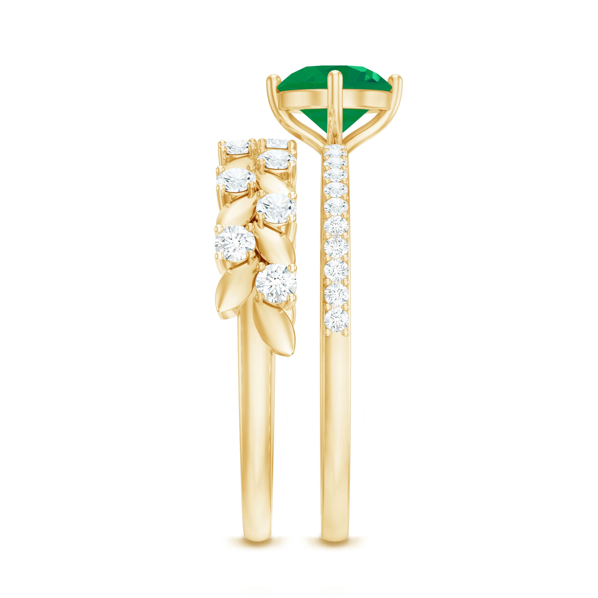 Nature Inspired Emerald Moissanite Wedding Bridal Ring Set of 2
