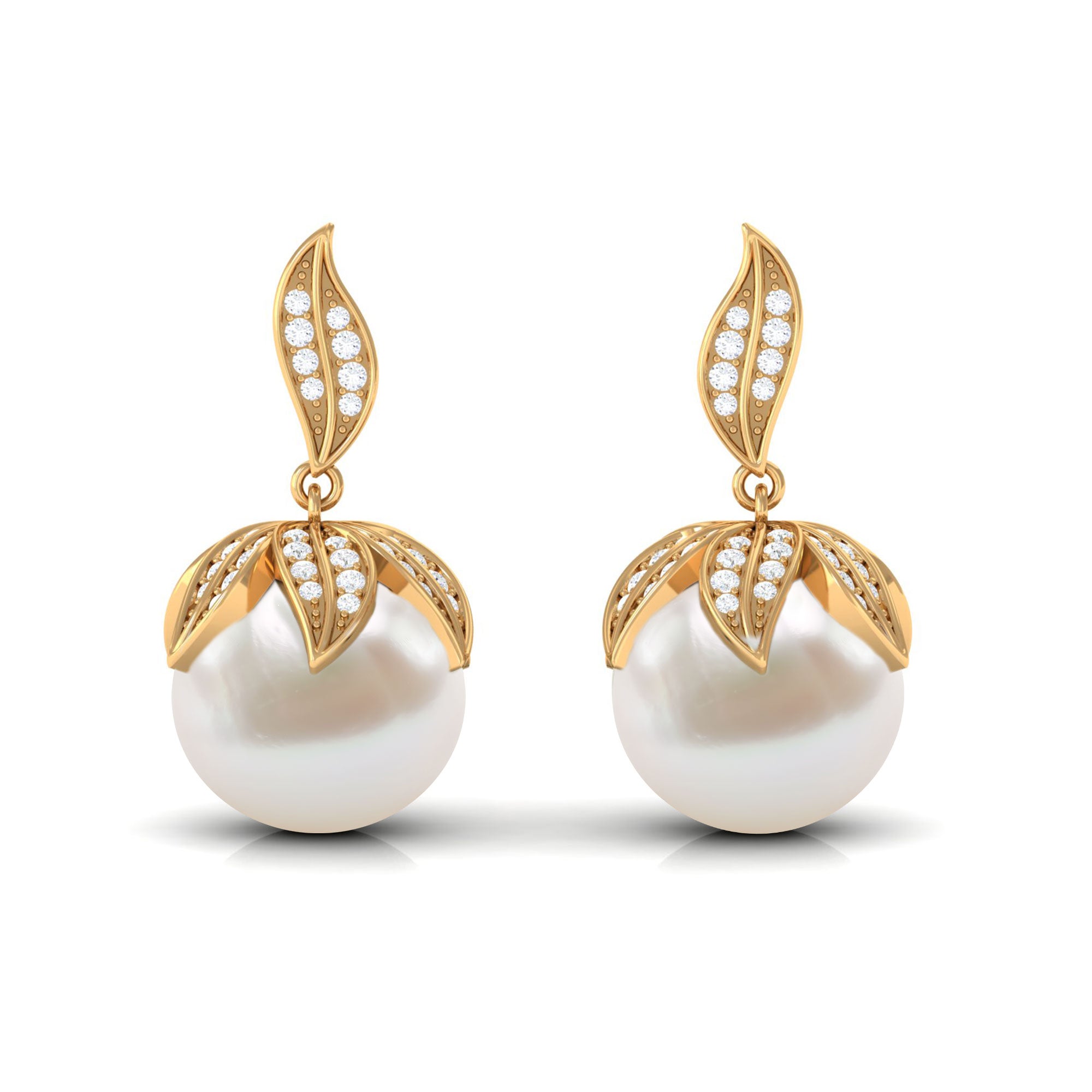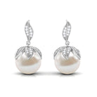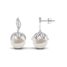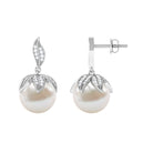 Nature Inspired Freshwater Pearl Drop Earrings with Diamond