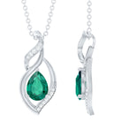 Our Lab Grown Emerald Necklace is a perfect fusion of timeless elegance and the beauty of nature, offering a sophisticated appearance with its lasting allure. Made from white gold plated silver, this Leaf Necklace showcases a style and beauty that will endure through the ages. With meticulous attention to detail, this Drop Necklace features a 5X7 MM pear brilliant cut lab created emerald set in a prong setting at the center of a leaf motif, which is partially embellished with delicate moissanite stones. Enhance your style with the stunning mix of deep green tones and brilliant sparkle, making this Designer Emerald Necklace an ideal and glamorous accessory for any significant occasion or daily luxury. It is suspended from a fine yet sturdy chain, a timeless piece that will be treasured for years to come. Enjoy the enchanting elegance of this beautiful accessory that captivates with its charming presence. Elevate your outfit with this classic piece that boasts AAAA quality lab made emerald and D-VS1 quality moissanite, radiating brilliance.