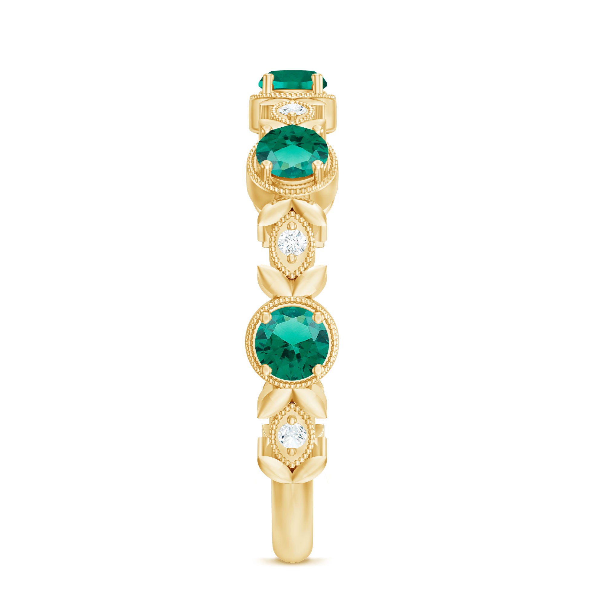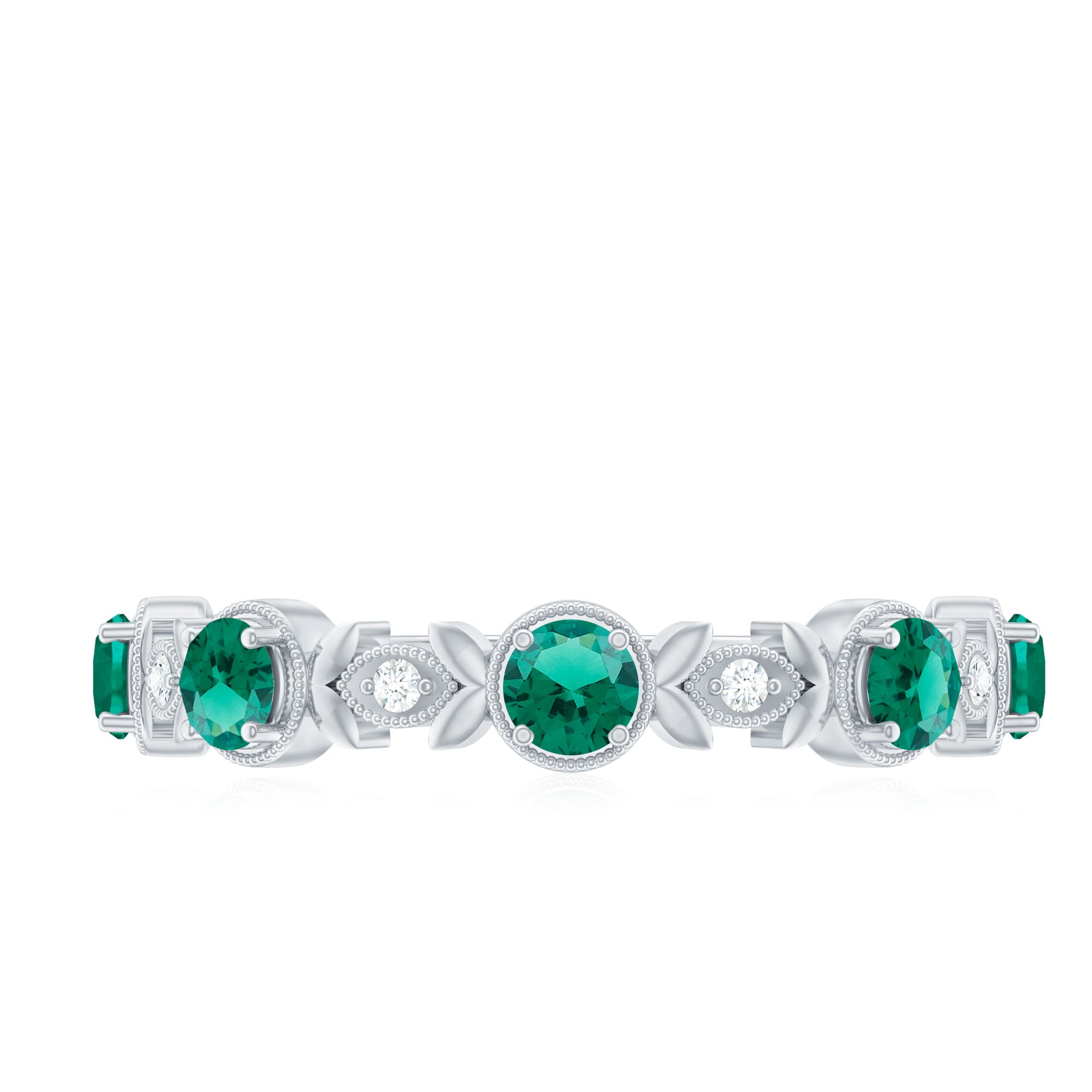 Nature Inspired Lab Grown Emerald Diamond Half Eternity Anniversary Ring