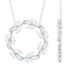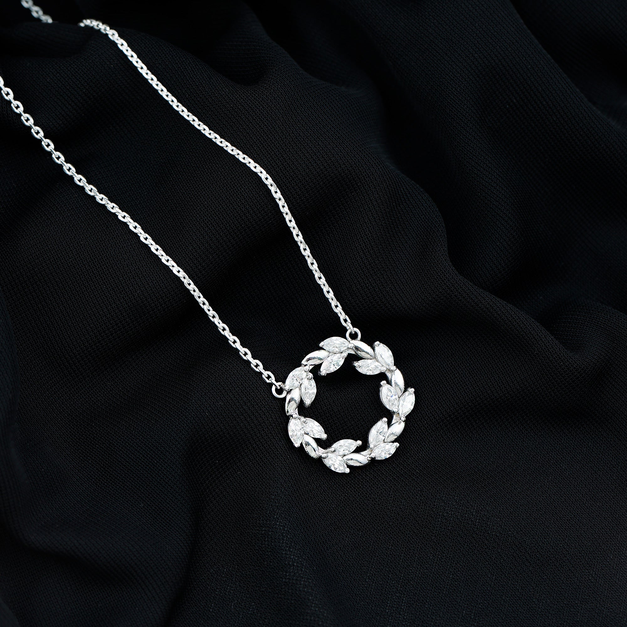 This Moissanite Pendant Necklace is a statement piece that can adorn the neckline. The karma pendant is handcrafted with 14K White Gold Plated Silver and adorned with the Marquise Shape Moissanite on an open circle frame and is accentuated with a hidden bail. This Circle Pendant reflects the classic shine of D-VS1 Quality Moissanite and is securely placed in Prong Setting. This eternity pendant is designed with the inspiration of nature, which makes it perfect to present to someone who adores nature. The Chain and Pendant will be delivered to you in a premium quality velvet pouch with the certificate of authenticity.