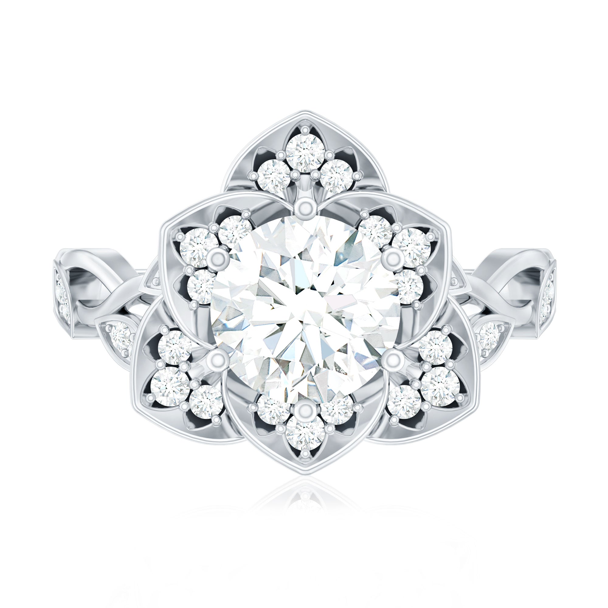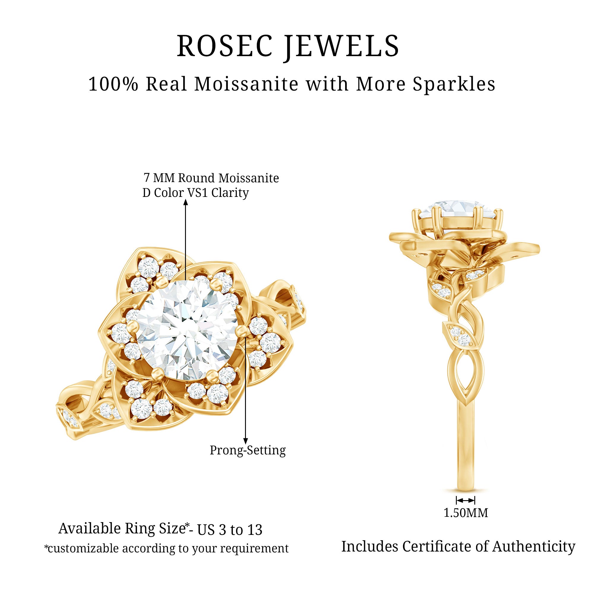 Nature Inspired Moissanite Flower Engagement Ring with Certificate