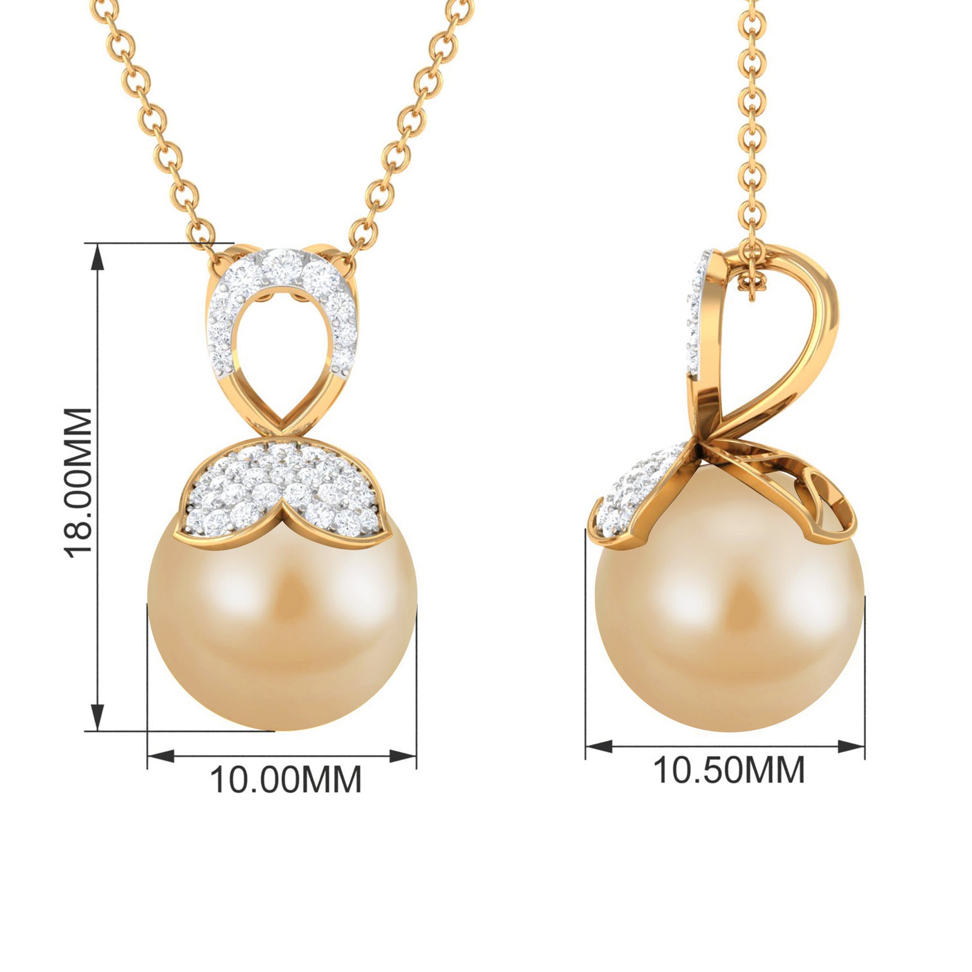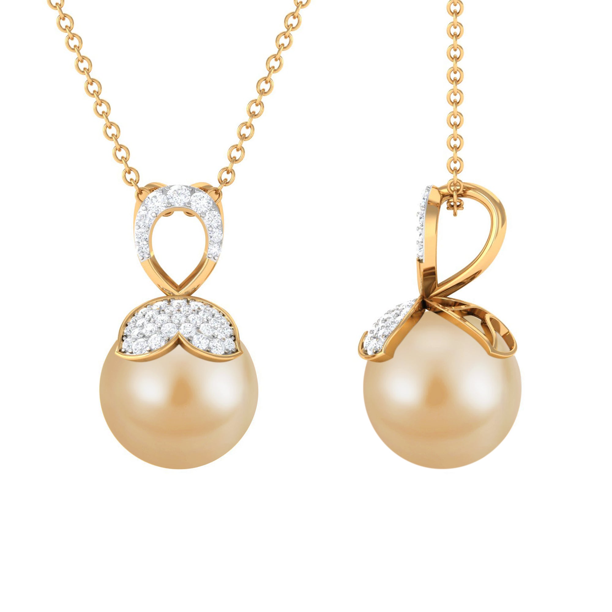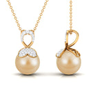 Adorn yourself with novelty and style, much like this captivating Drop Necklace. Embellished with a Round Shape Golden South Sea Pearl and glistening Round Diamonds, intricately arranged on a leaf design with accent bail, this nature inspired Pearl Pendant Necklace seamlessly enhances casual and unique ensembles.