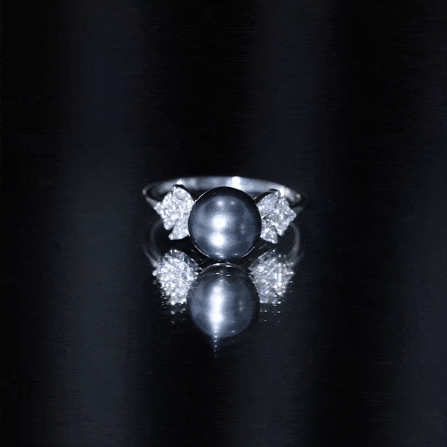 Nature Inspired Tahitian Pearl Engagement Ring with Diamond Accent