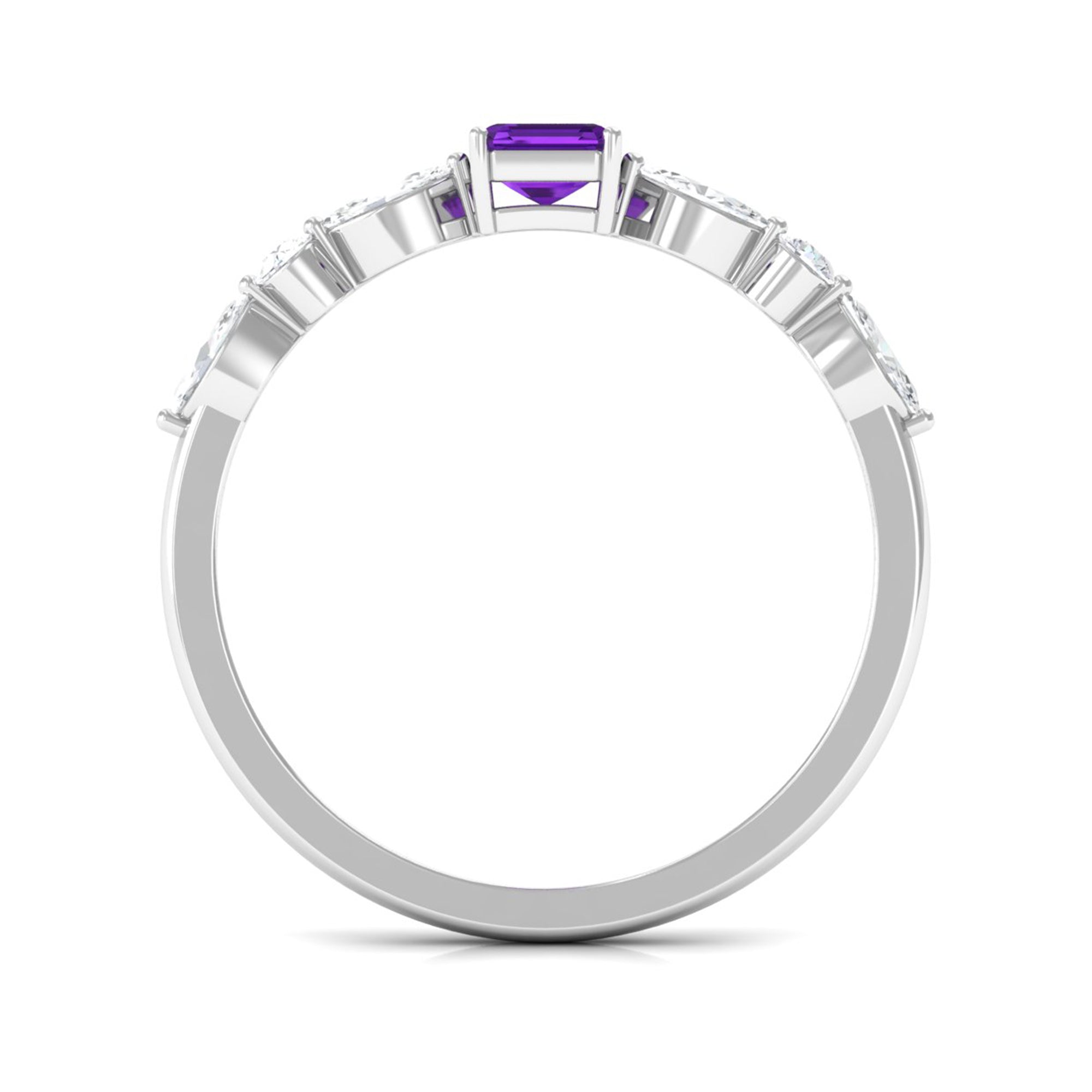 Octagon Amethyst Solitaire Ring with Diamond Side Stones