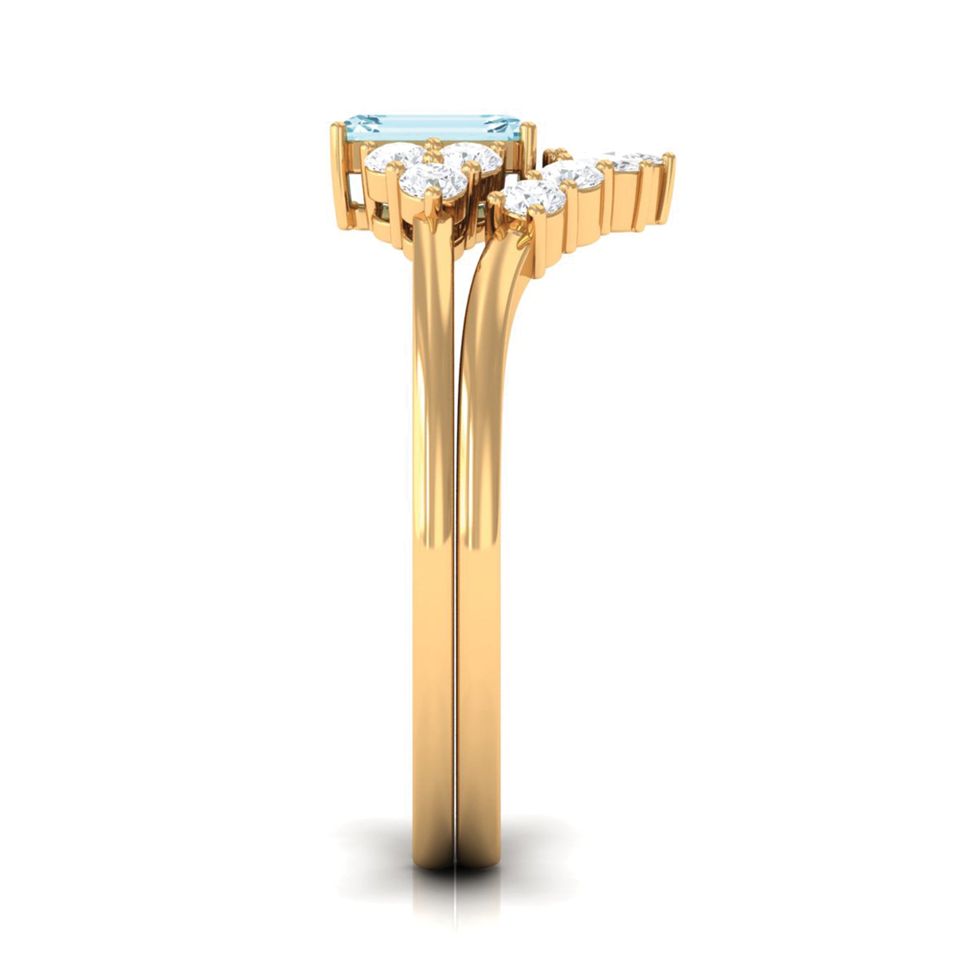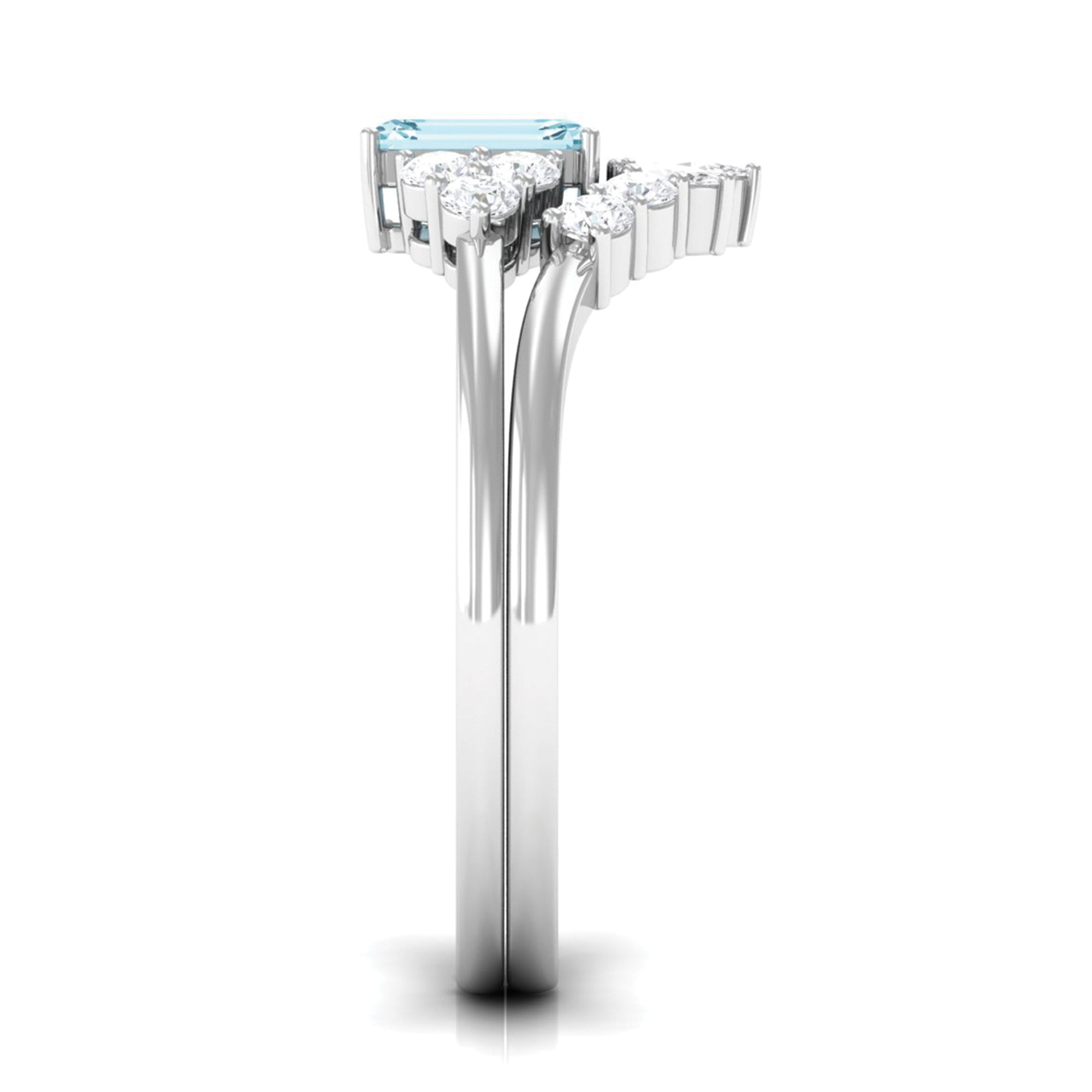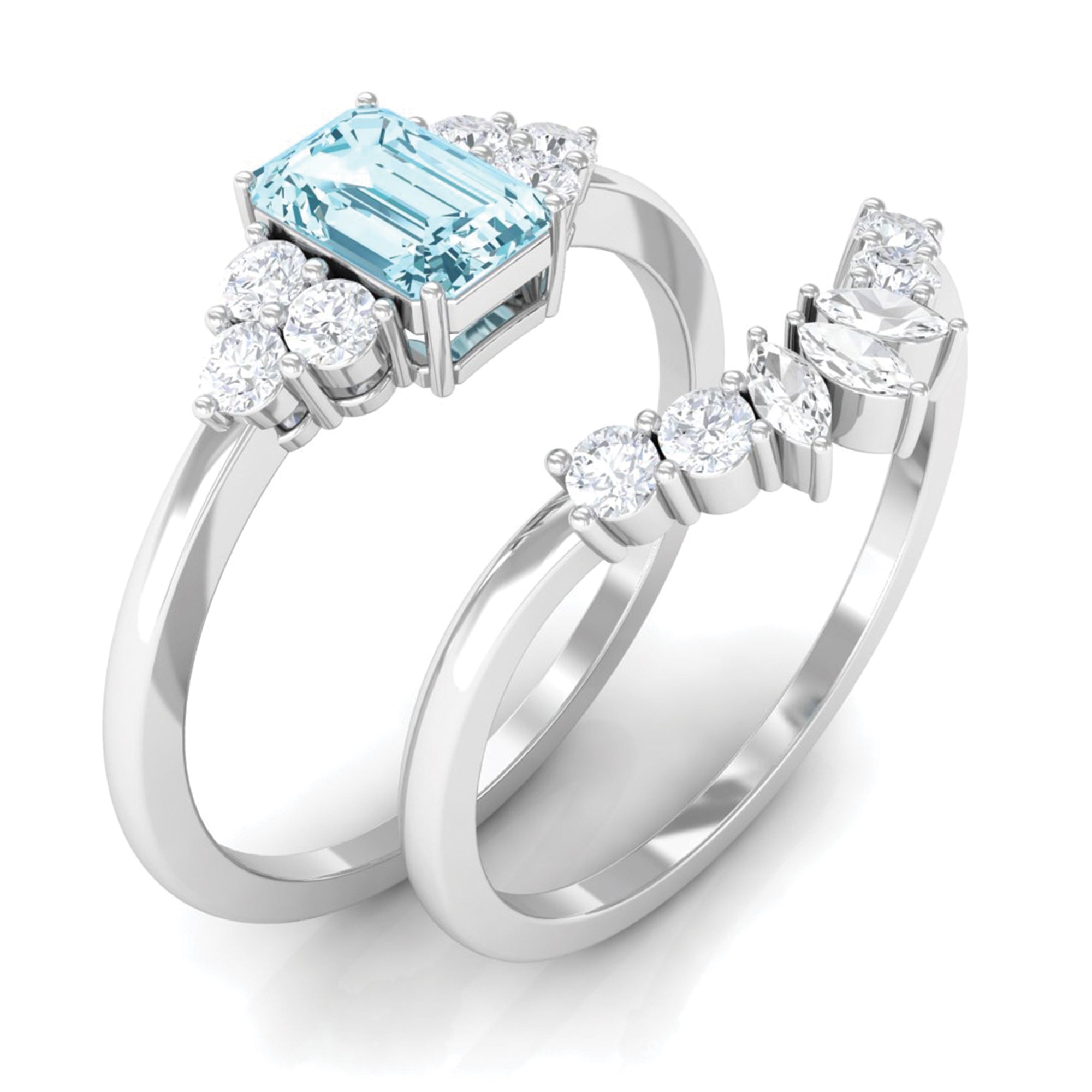 Octagon Aquamarine Solitaire Stackable Ring Set with Diamond