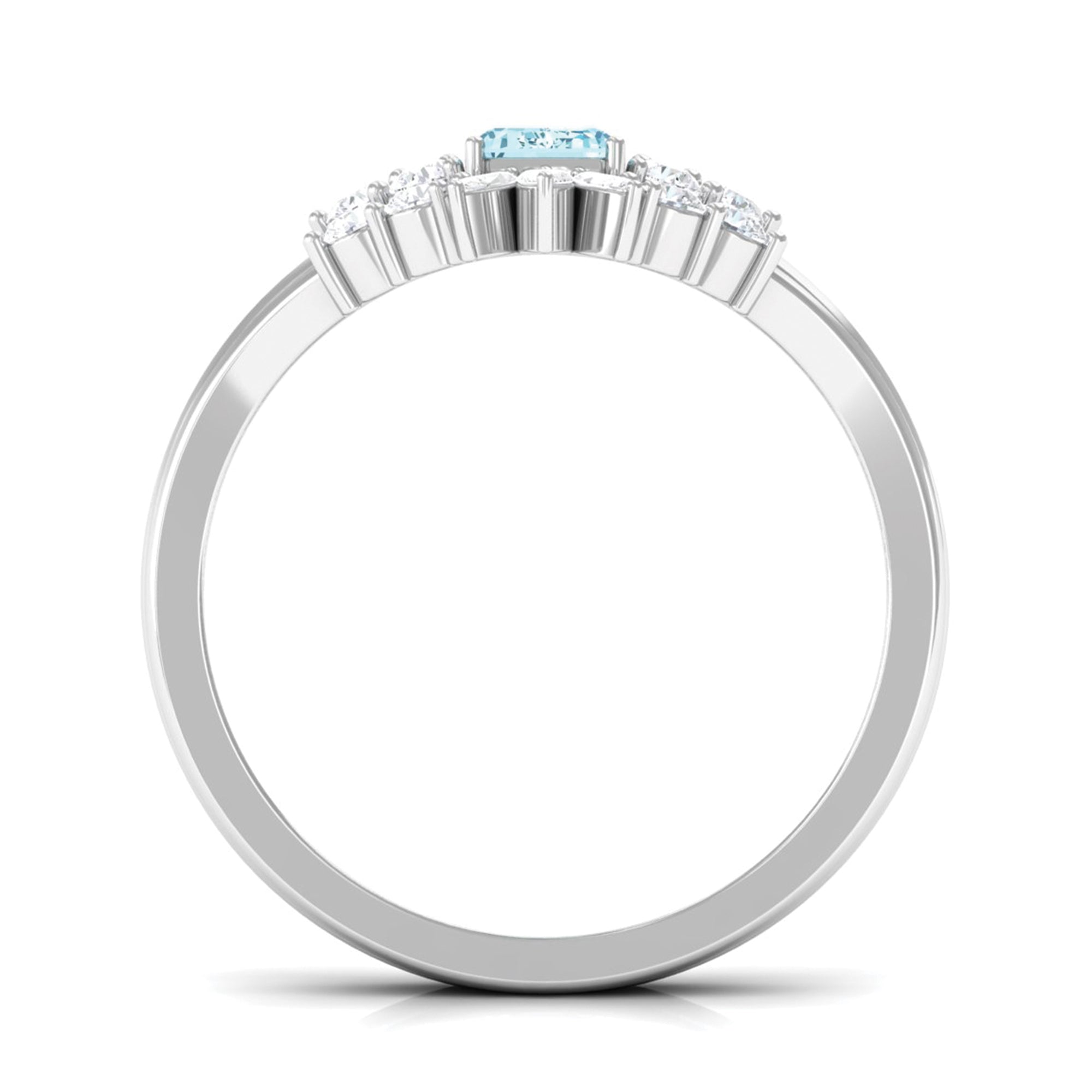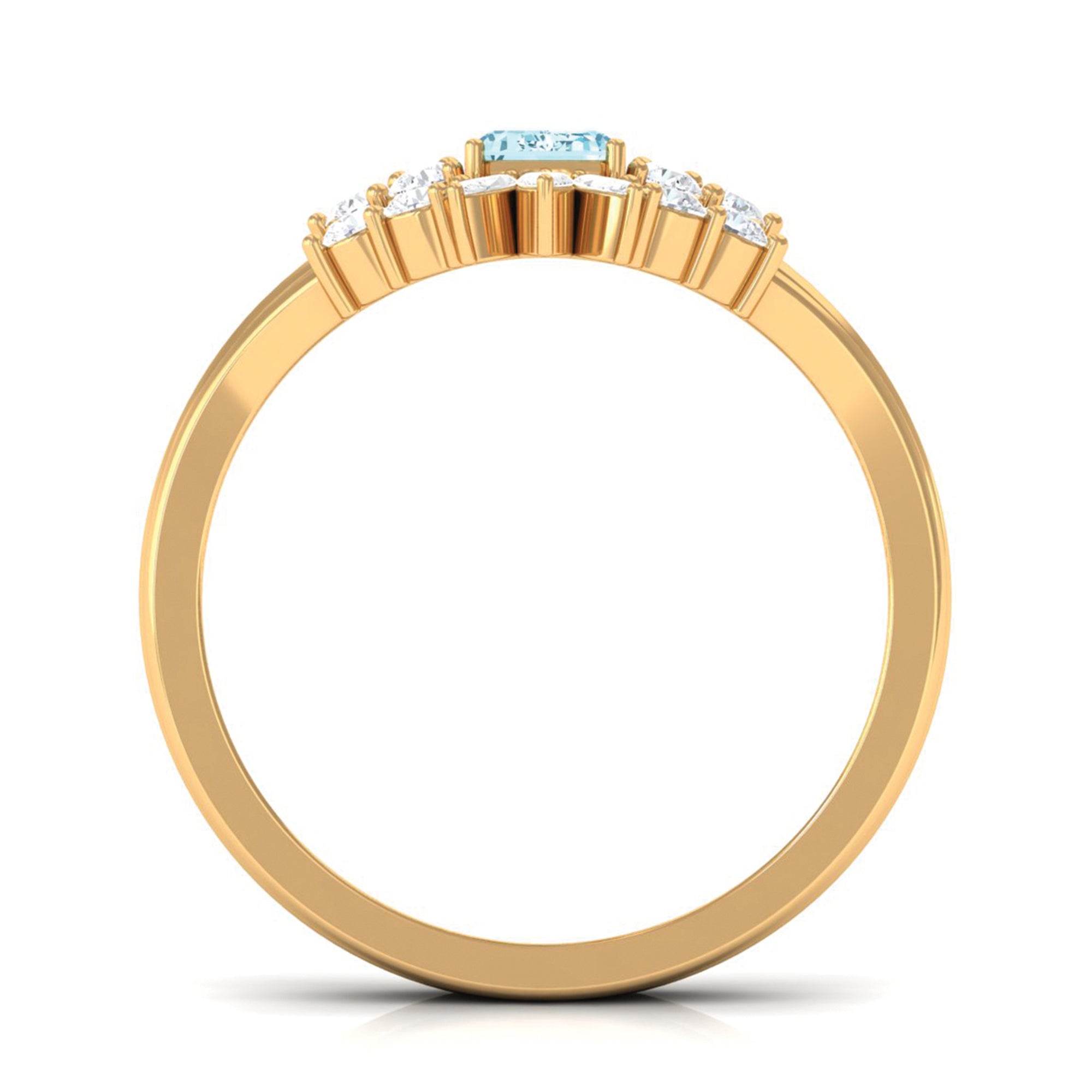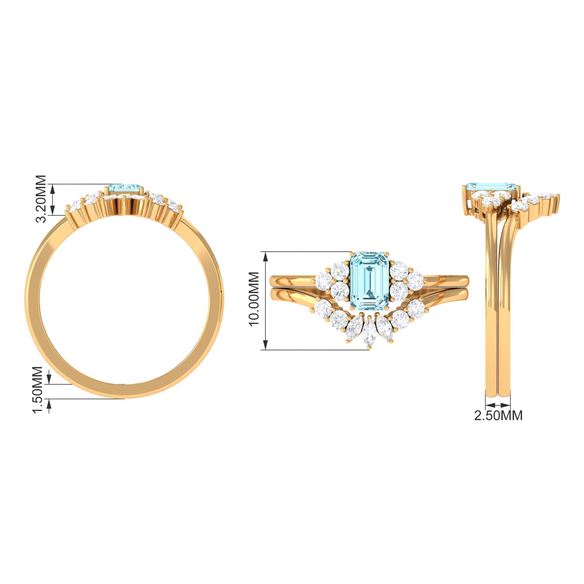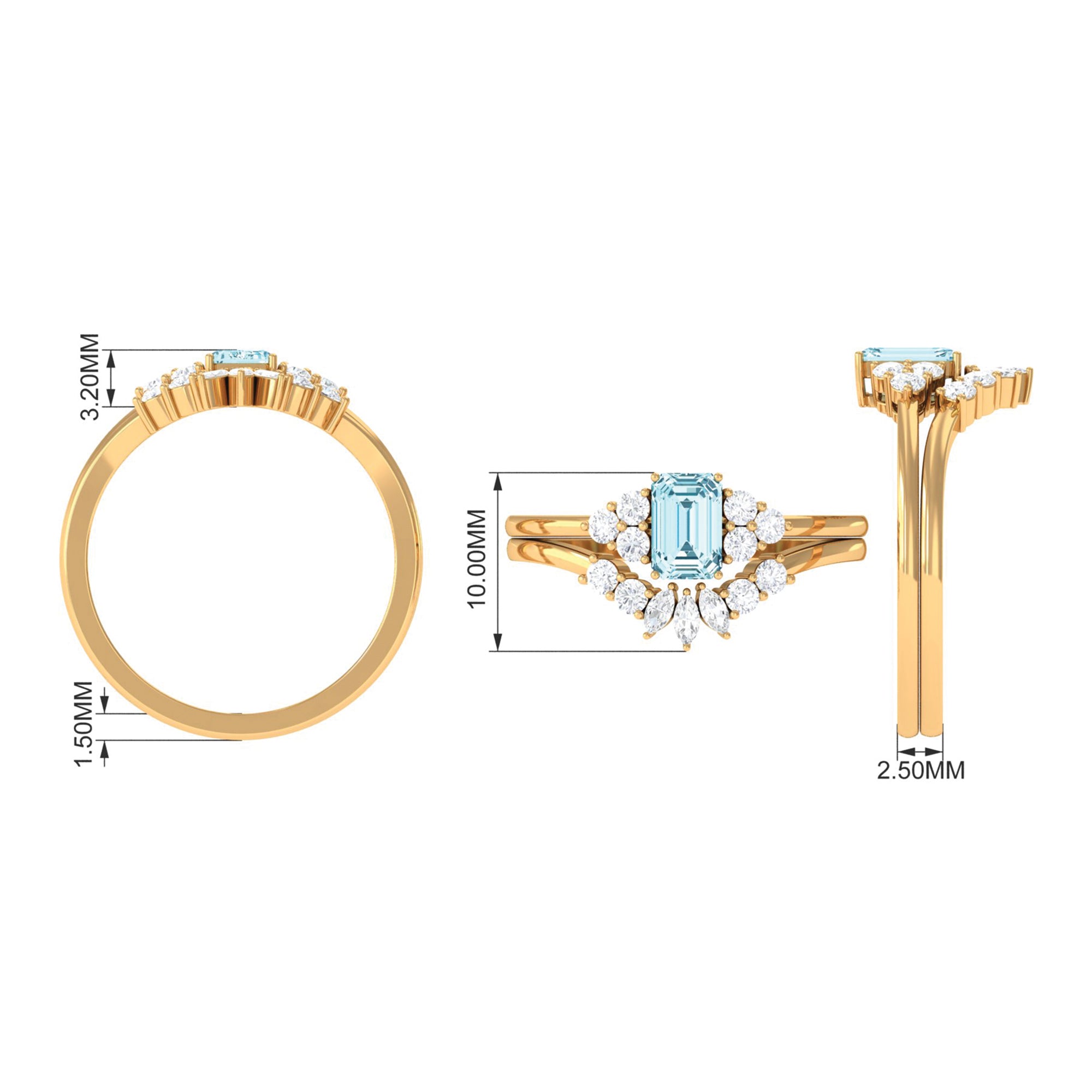 Octagon Aquamarine Solitaire Stackable Ring Set with Diamond