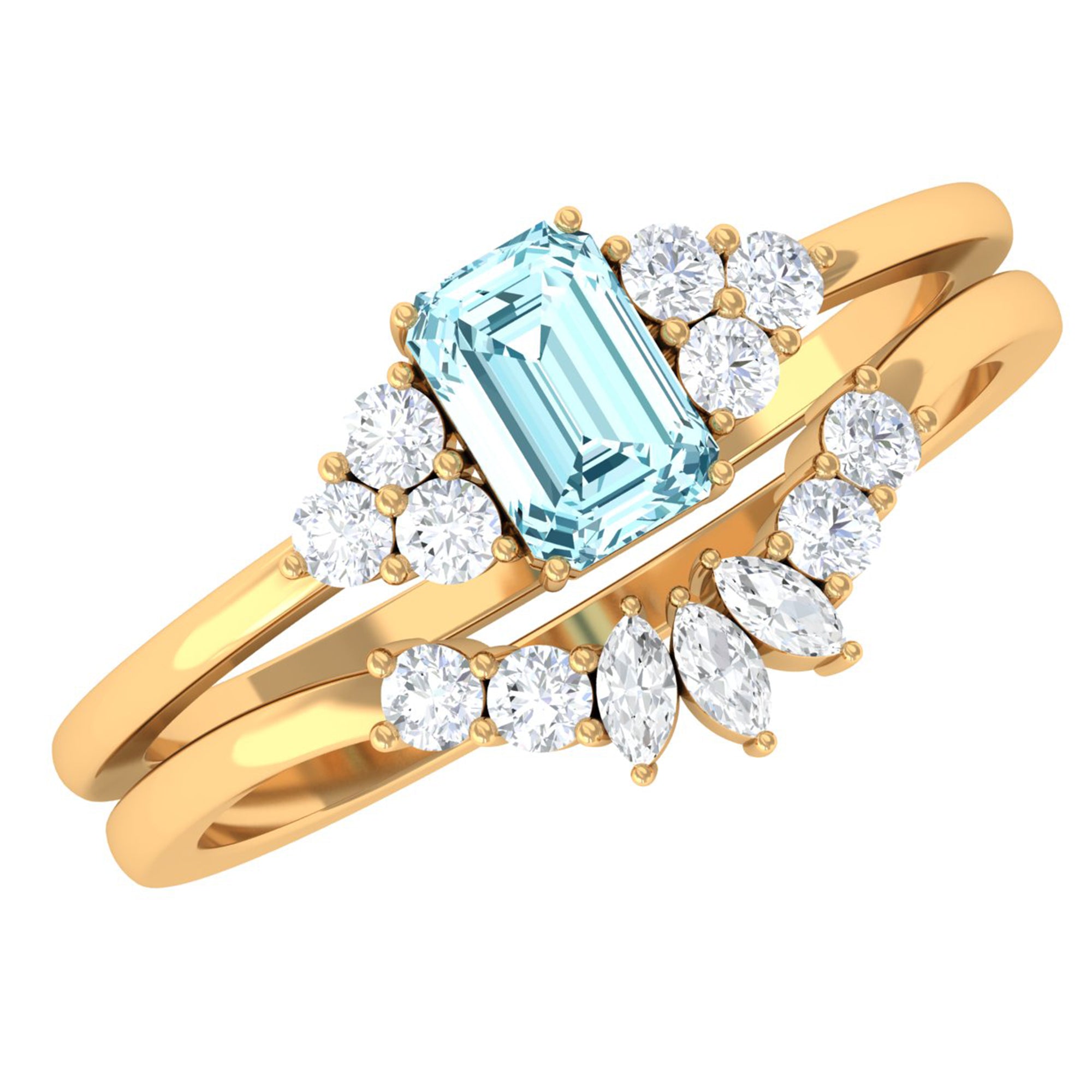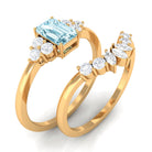 Give a captivating appeal to her look with this sparkling Solitaire Ring Set. This Lovely Stackable Ring Set has adorned with Octagon Cut Aquamarine set as a solitaire with Round Diamond as a trio in a prong setting. This Aquamarine Ring Set is crafted with Gold Metal to make for a luxe choice for special occasions.